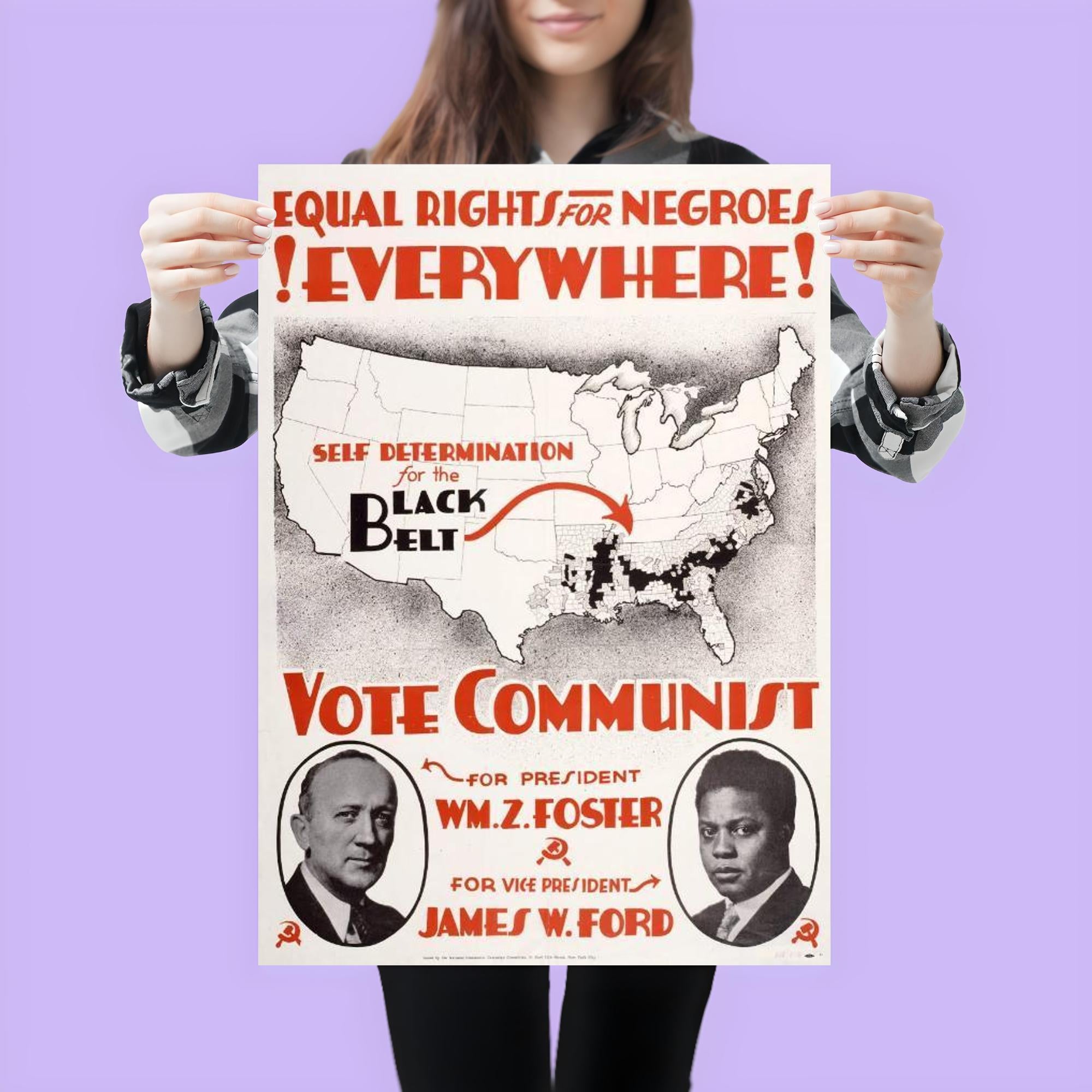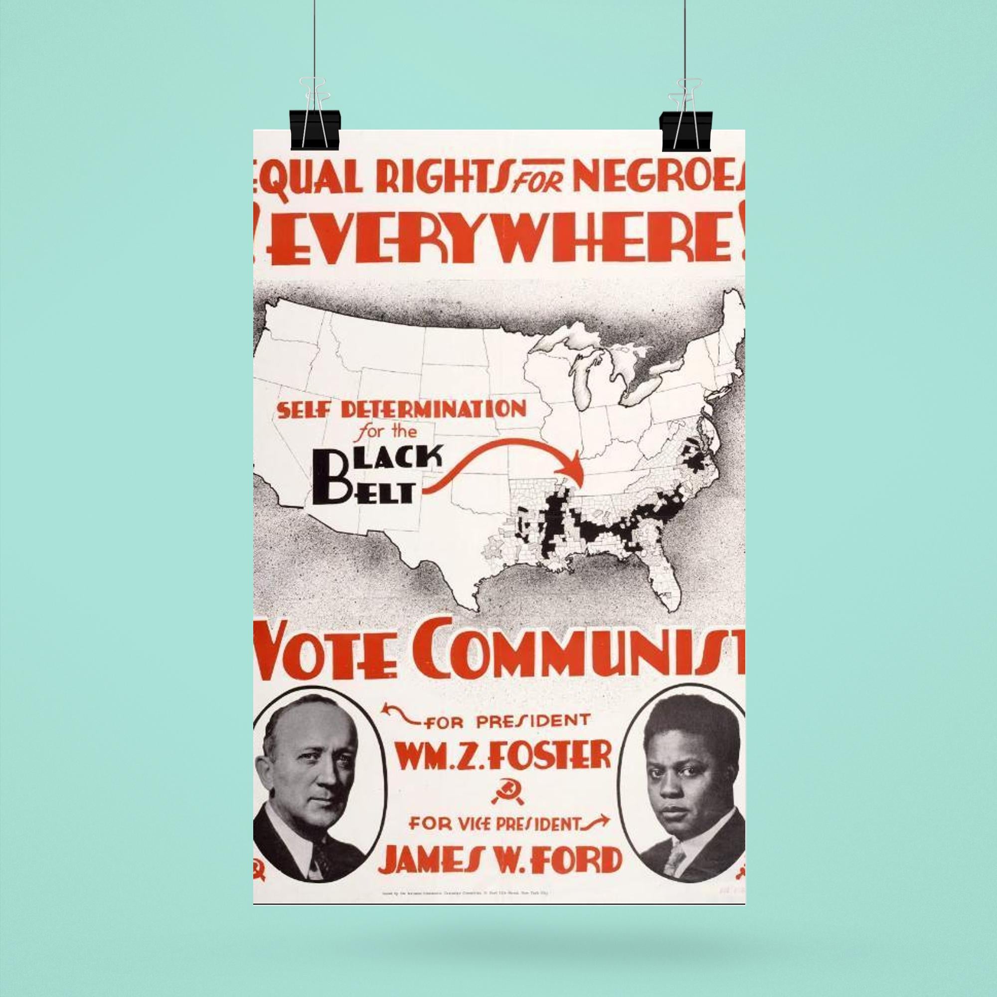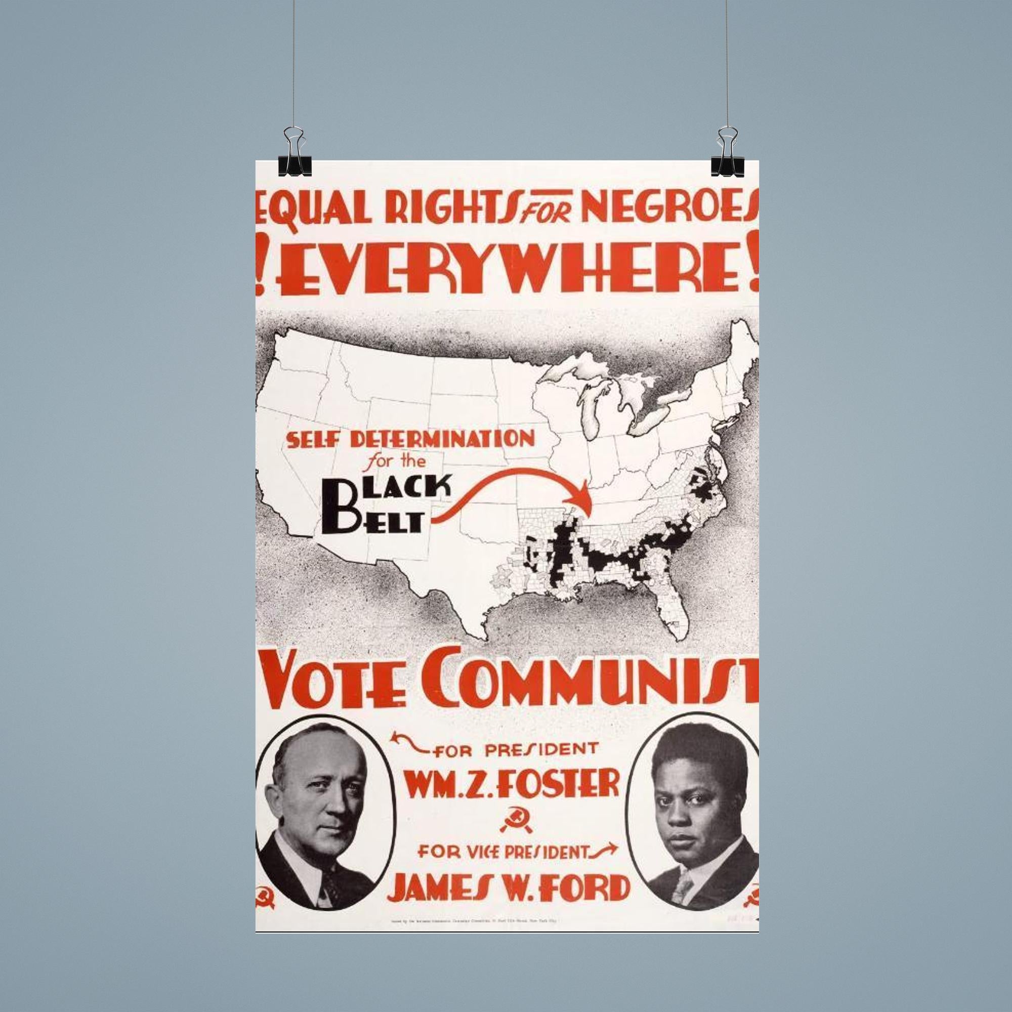 Make a powerful statement with this striking 1932 poster advocating Equal Rights for Negroes Everywhere! USA. Featuring a detailed map highlighting Southern counties where African American populations were a majority, it captures a pivotal moment in the struggle for racial justice. This historic piece serves as both a call to action and a reminder of the enduring fight for equality.