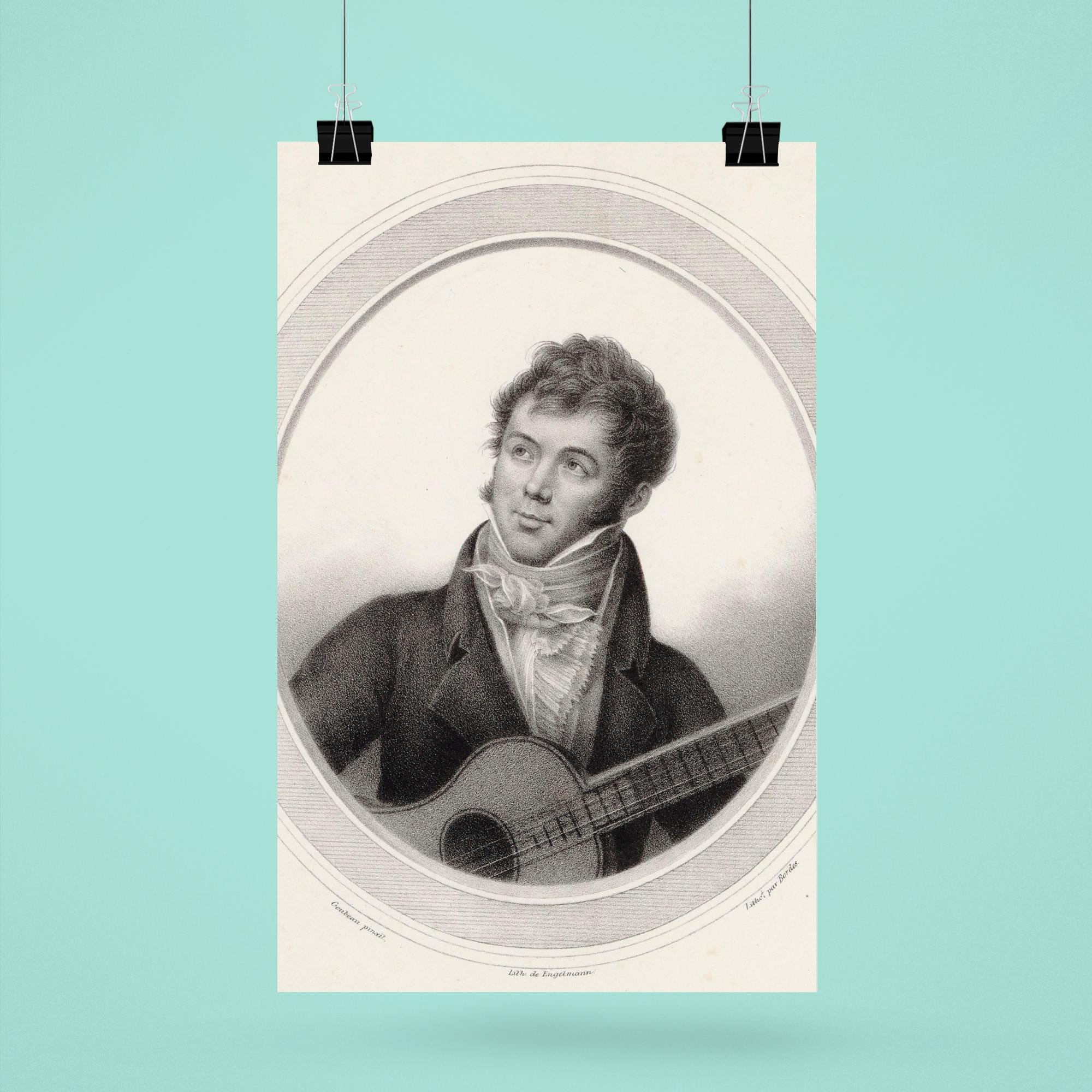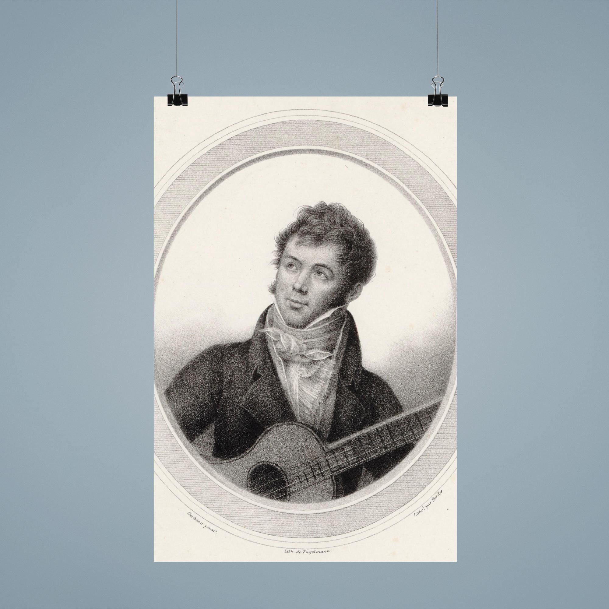 Celebrate the timeless legacy of Fernando Sor, the legendary classical guitarist and composer, with this stunning poster. Perfect for music lovers and classical aficionados alike, it brings a touch of elegance and inspiration to any room. Let Sor’s enduring influence on the world of guitar artistry be a constant source of motivation and admiration in your space.