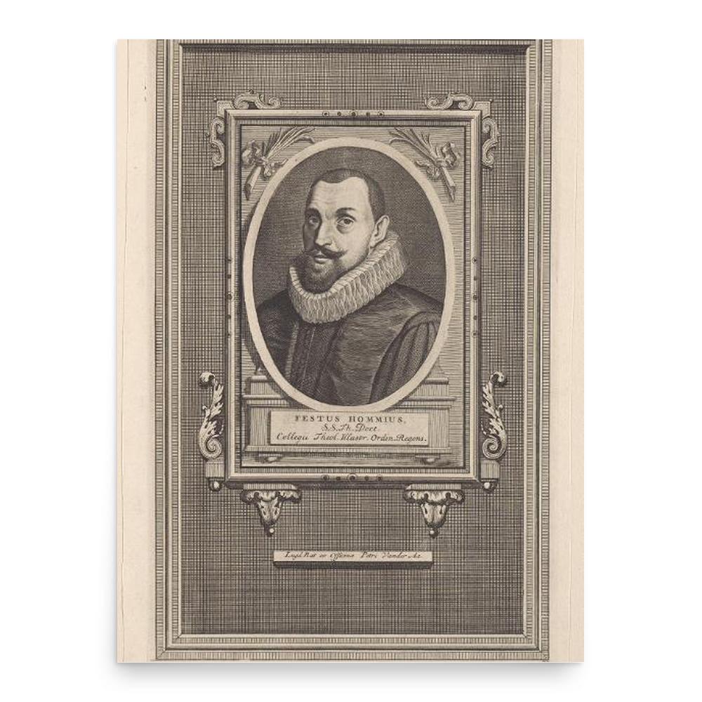 Festus Hommius poster print. Crafted from museum-quality, crease-resistant matte paper, this poster is built to last - just like the lasting impact Festus Hommius had on history.