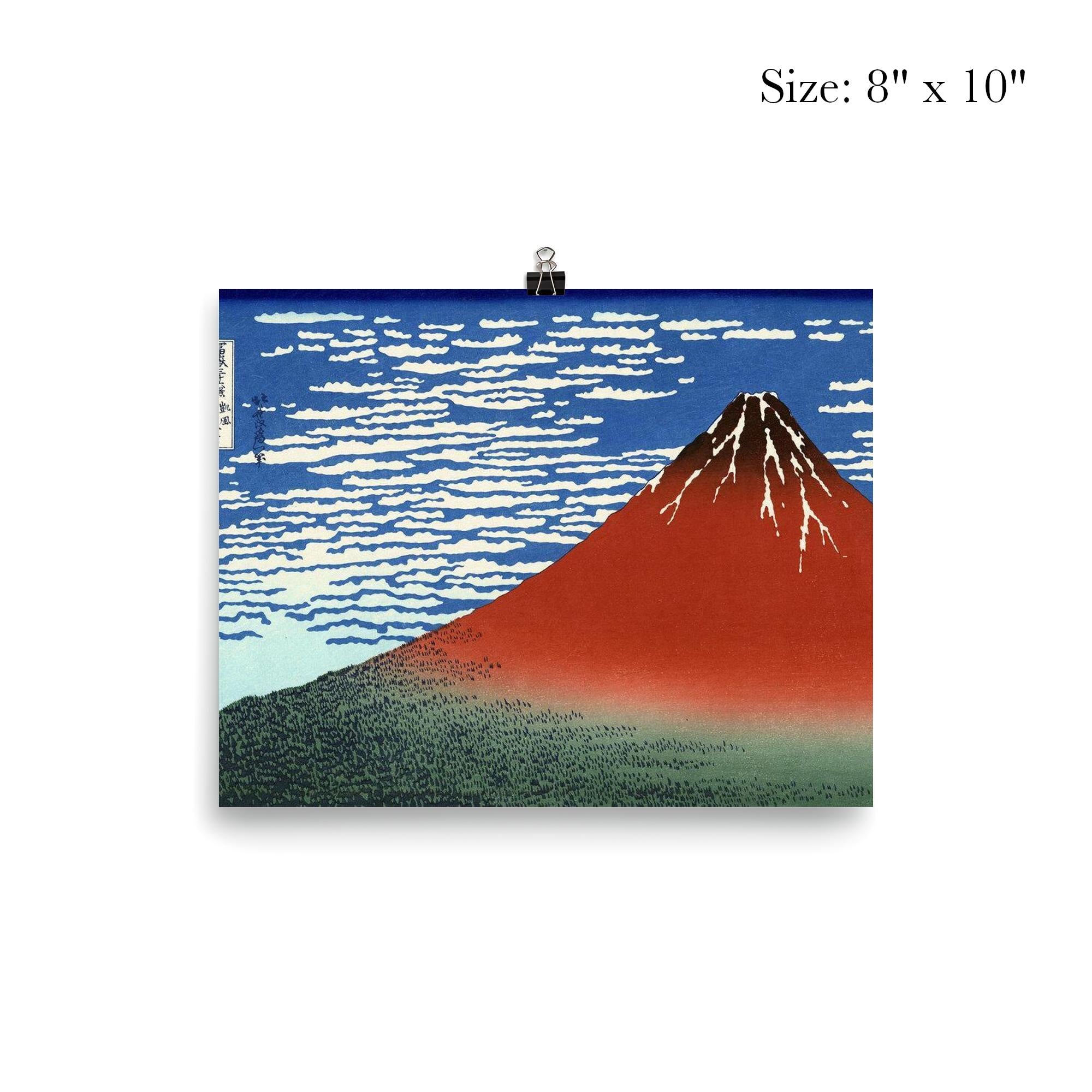 Transform your space with the timeless elegance of Hokusai’s "Fine Wind Clear Morning," famously known as Red Fuji. This iconic masterpiece captures the majestic beauty of Mount Fuji bathed in the warm glow of early sunlight, evoking a serene and powerful presence. Perfect for art lovers and collectors alike, this poster brings a piece of classic Japanese ukiyo-e tradition into your home, inspiring calm and admiration every day.