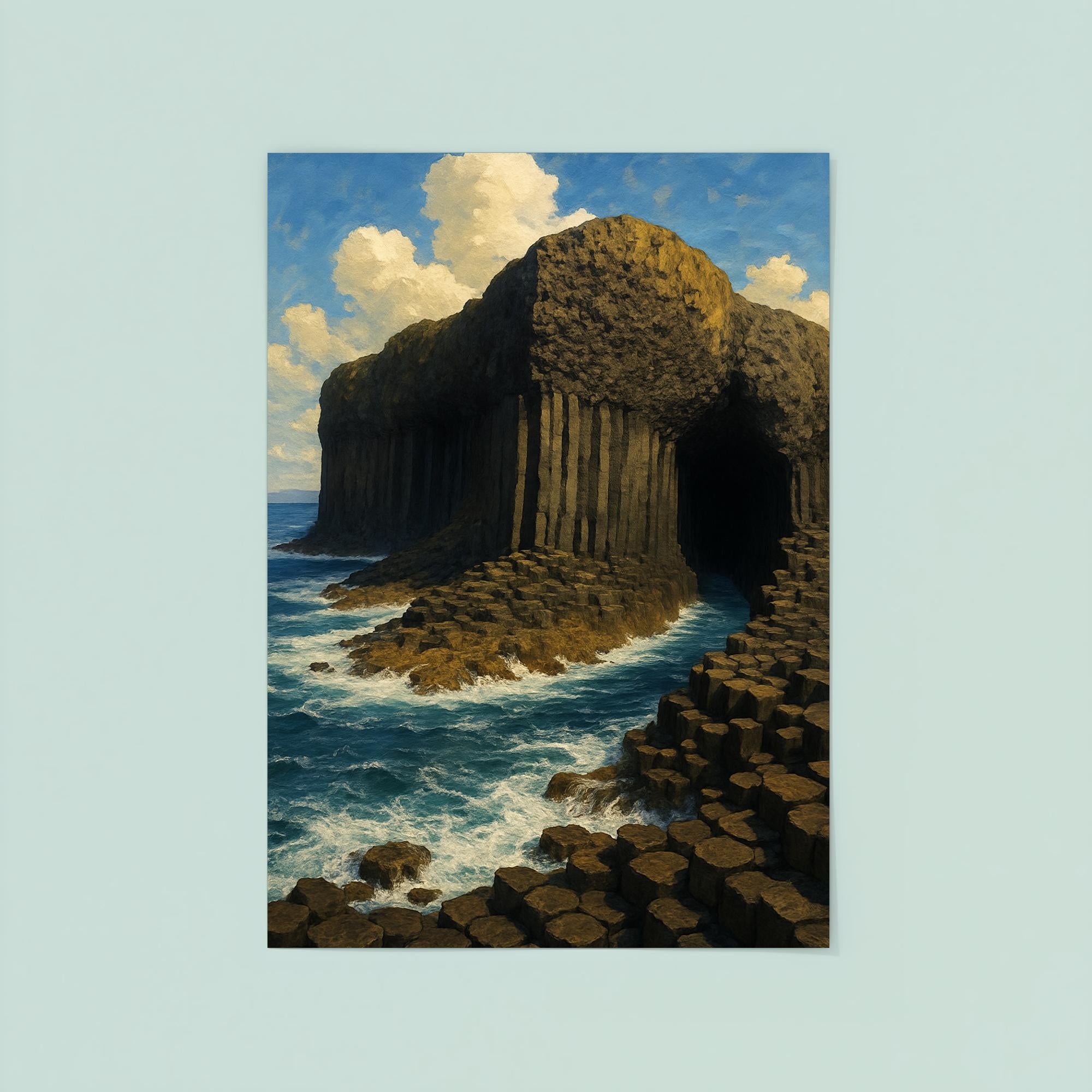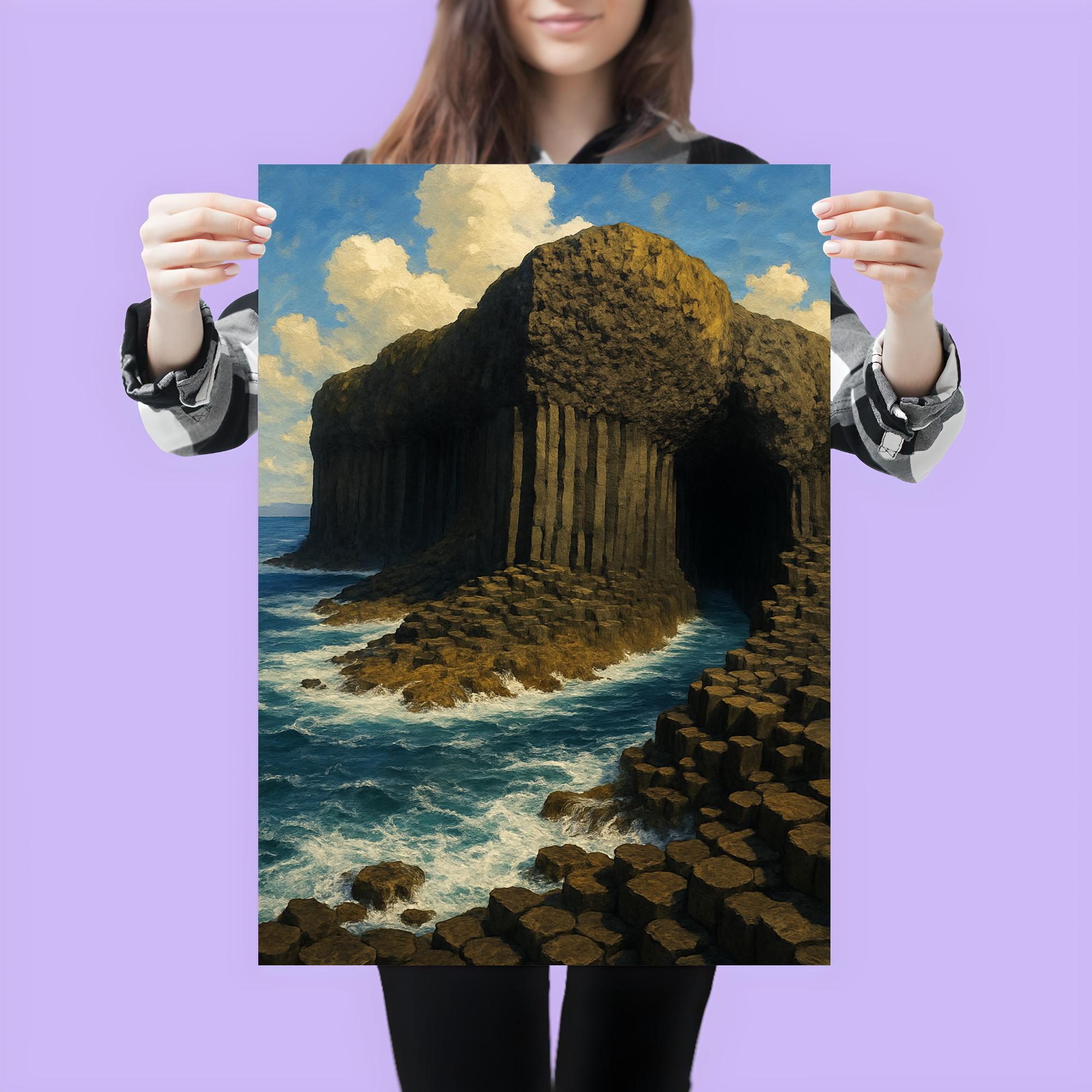 Transform your space with a striking poster of Fingal's Cave, Scotland—where nature’s architectural marvel meets timeless mystery. This captivating artwork captures the majestic hexagonal basalt columns rising from the sea, inviting the spirit of adventure and serene coastal beauty into your home. Perfect for those who cherish the wild allure of Scotland’s landscapes, this poster brings a piece of the extraordinary to any room.