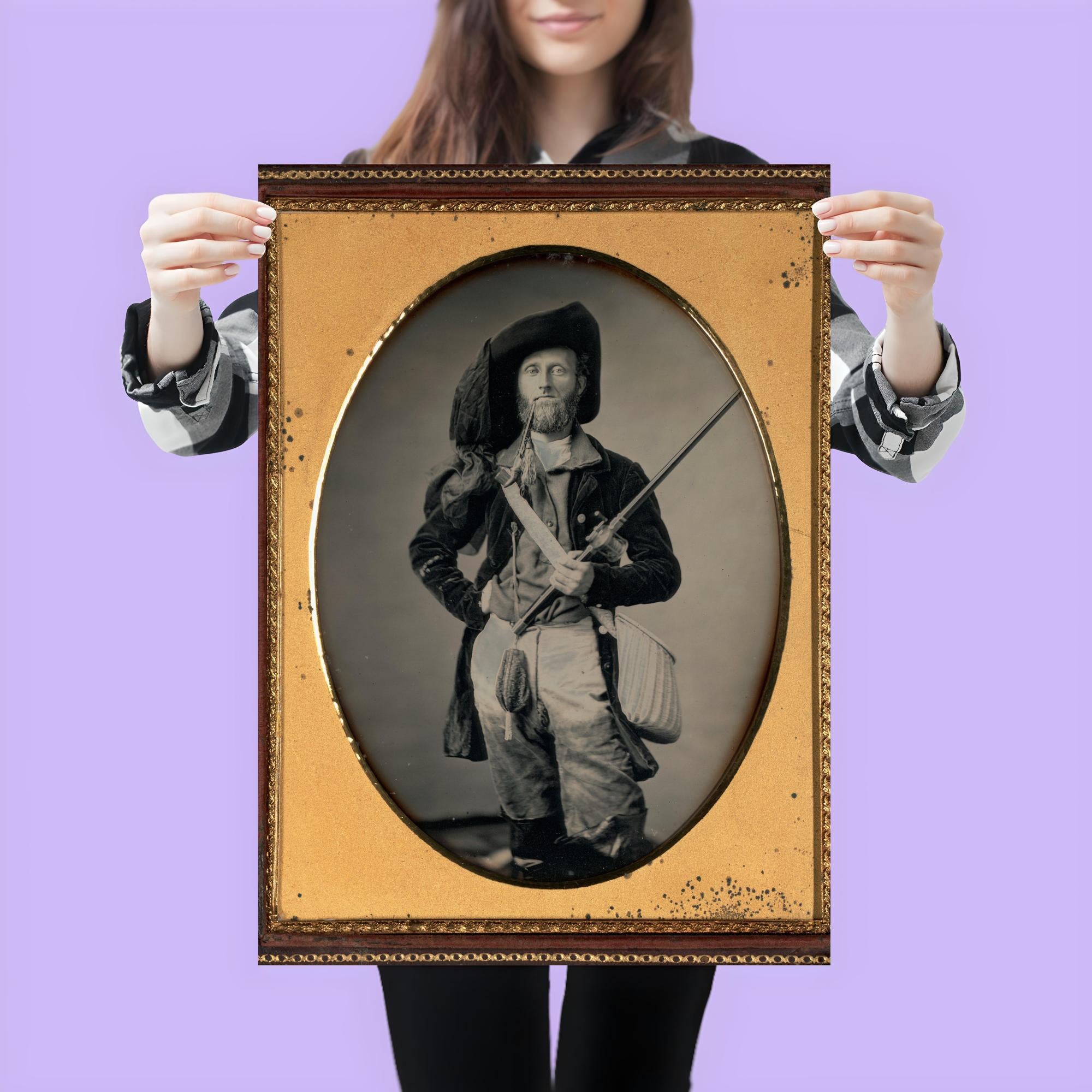 Vintage Fisherman Portrait Poster Print by William C. North c.1850 – Classic Fishing Pole Wall Art for Rustic Home Decor