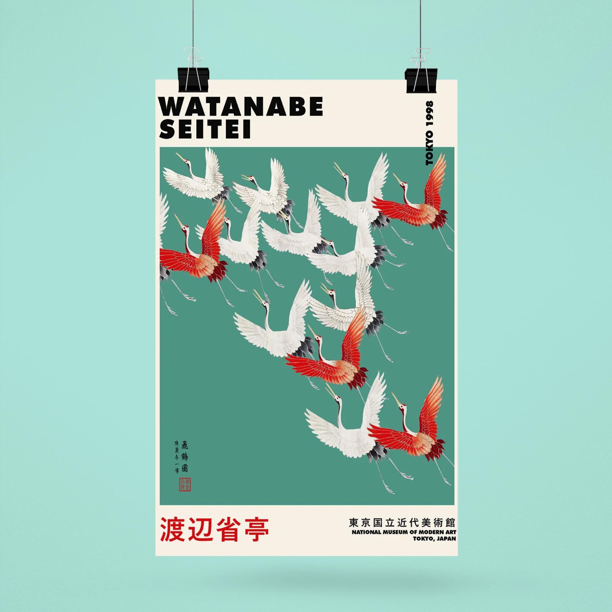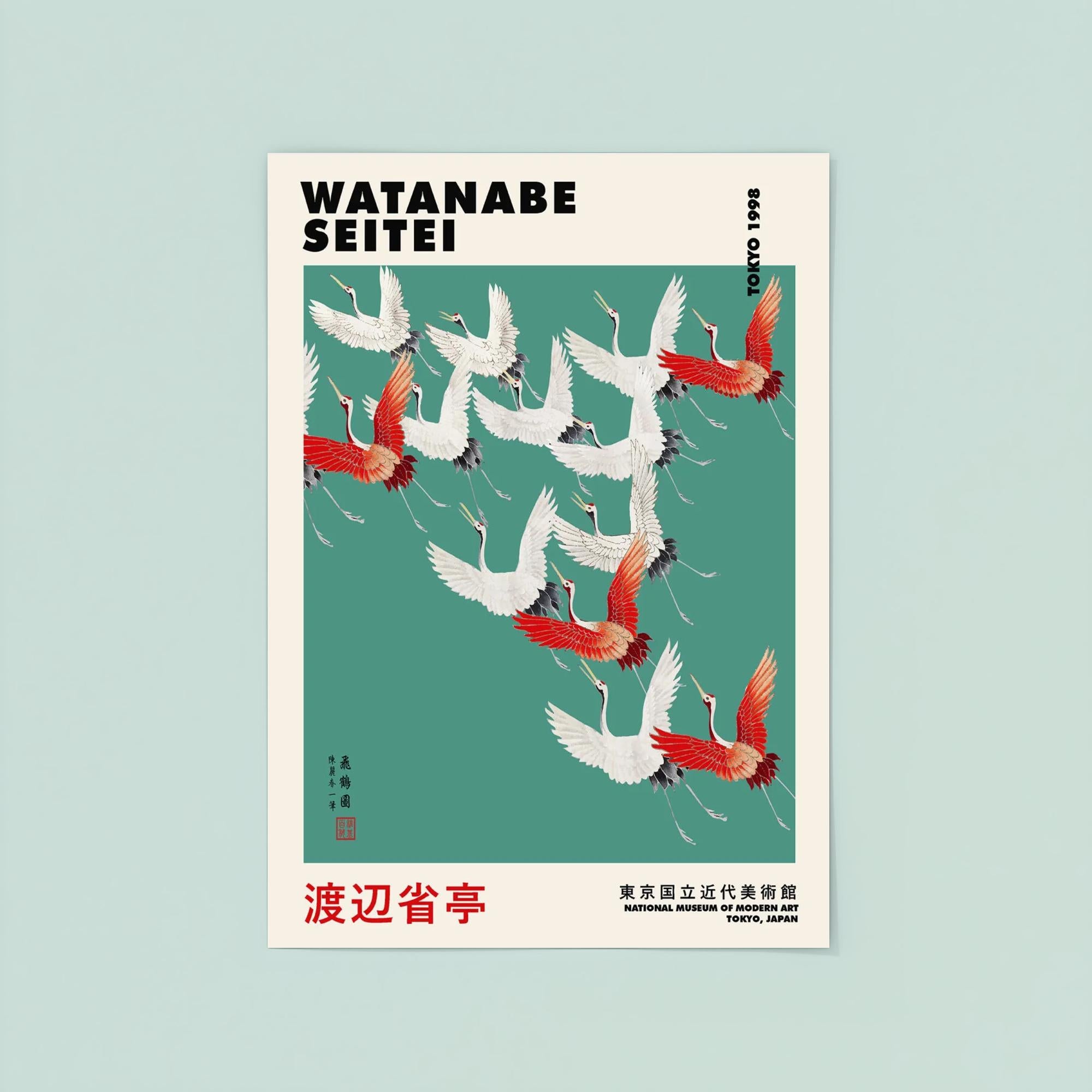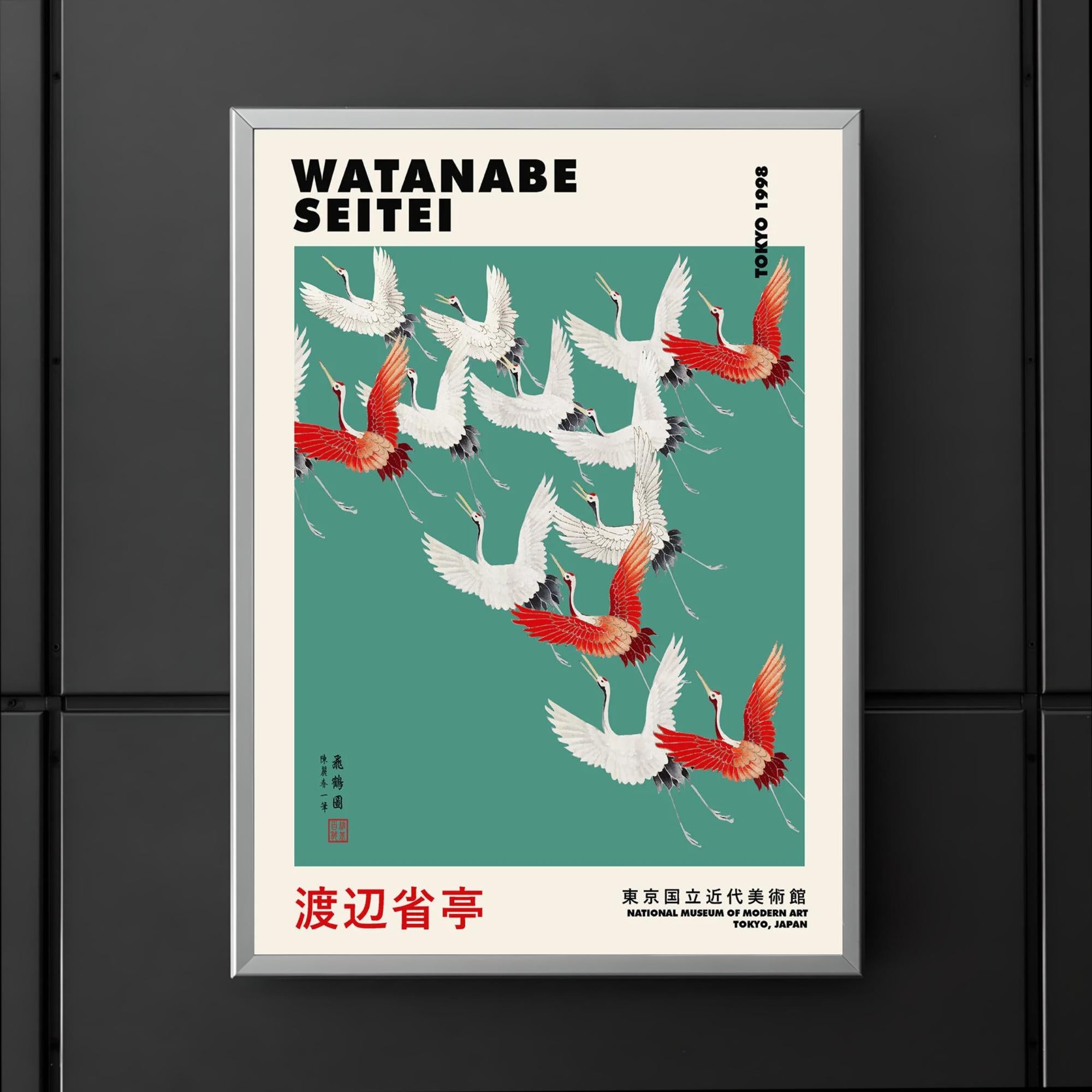 Elevate your space with the timeless elegance of Watanabe Seitei’s "Flying Cranes" poster. This exquisite artwork captures the graceful movement and serene beauty of cranes in flight, embodying a sense of peace and harmony. Perfect for lovers of traditional Japanese art and nature-inspired decor, this poster brings a touch of refined sophistication to any room.