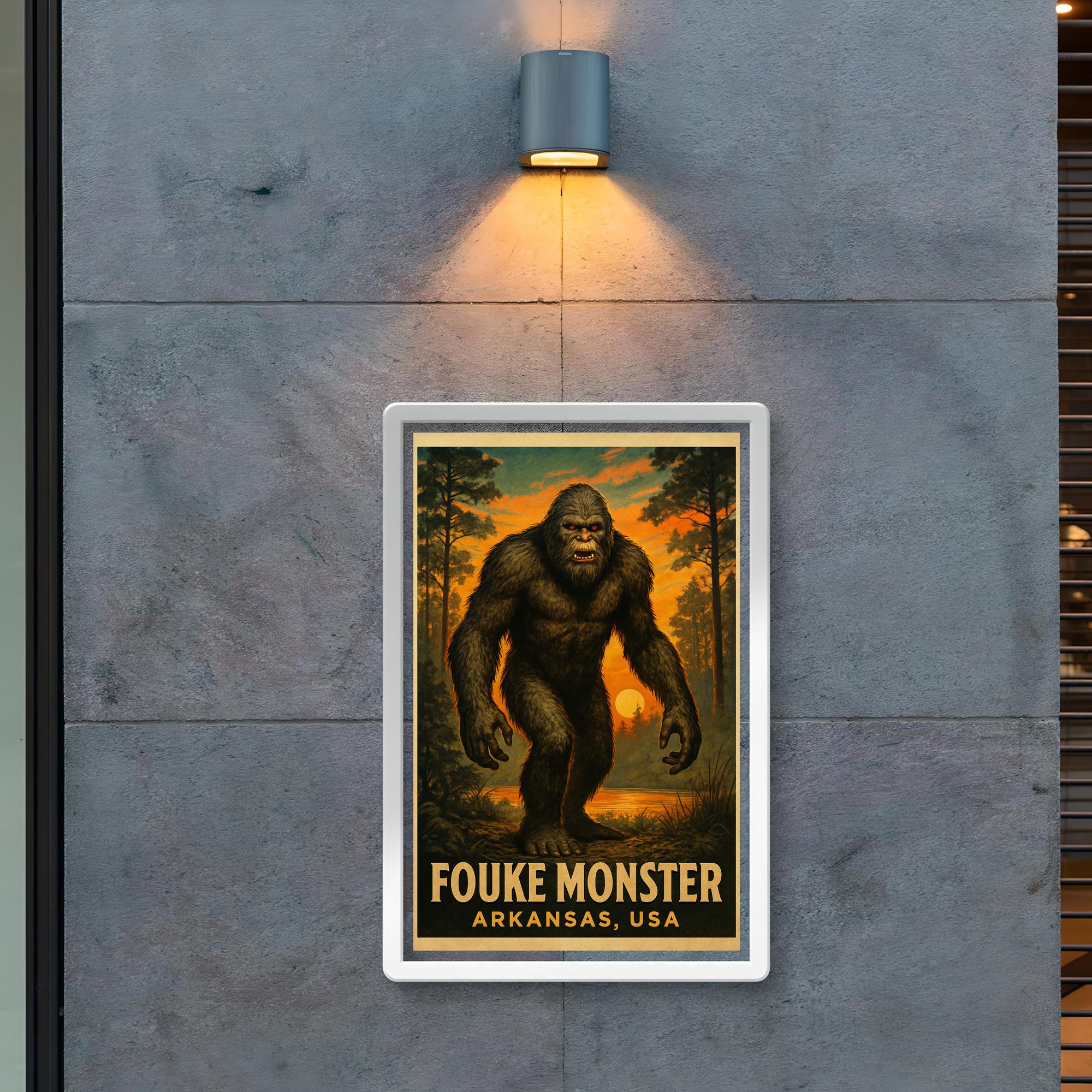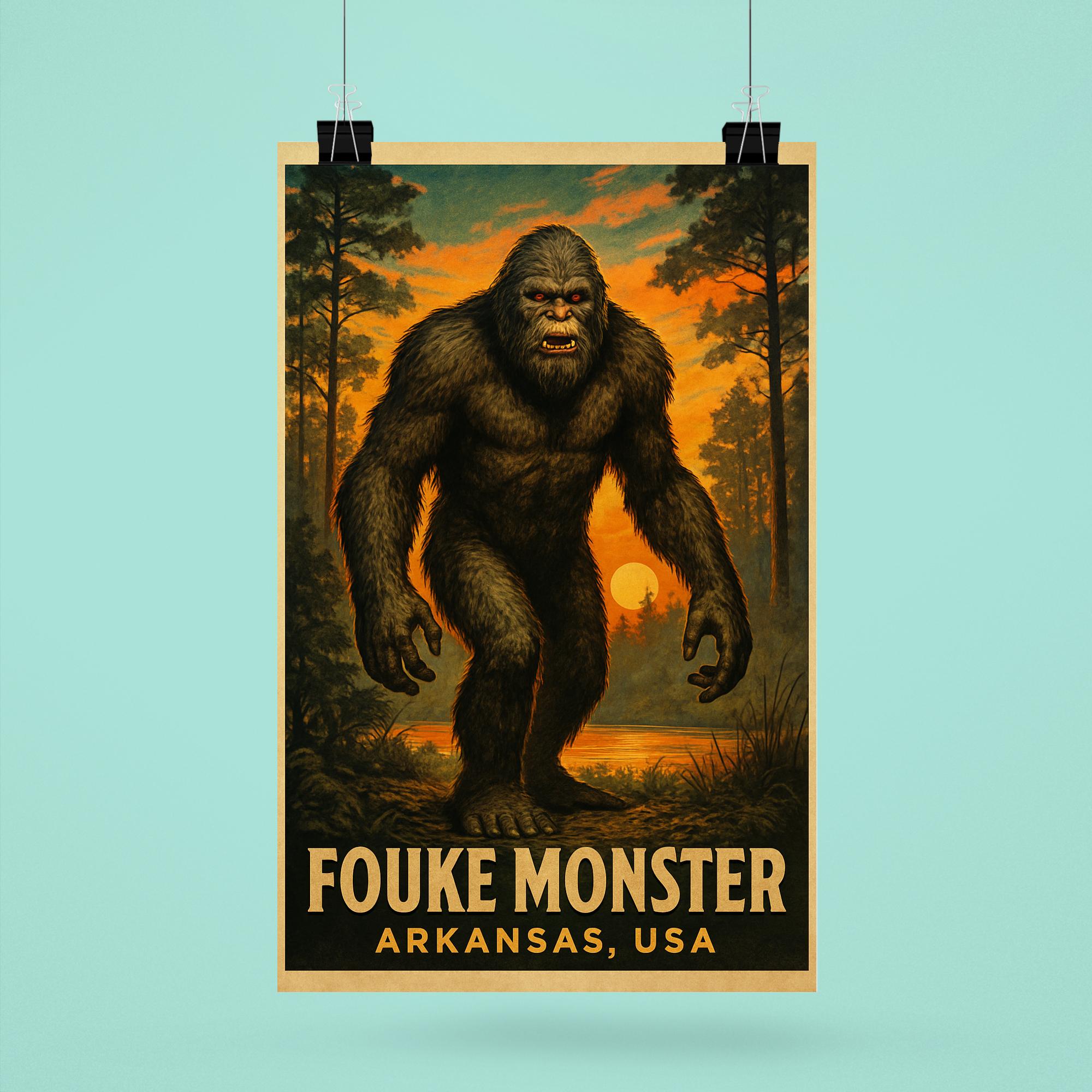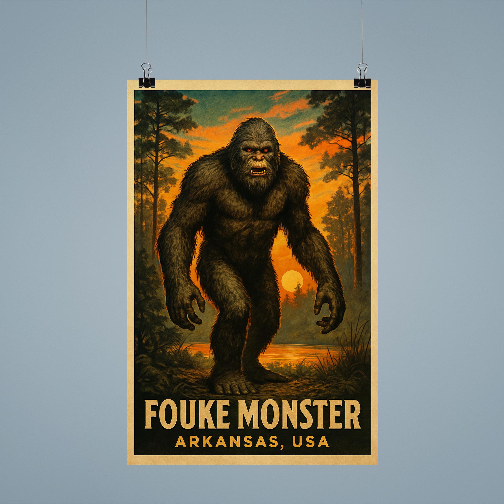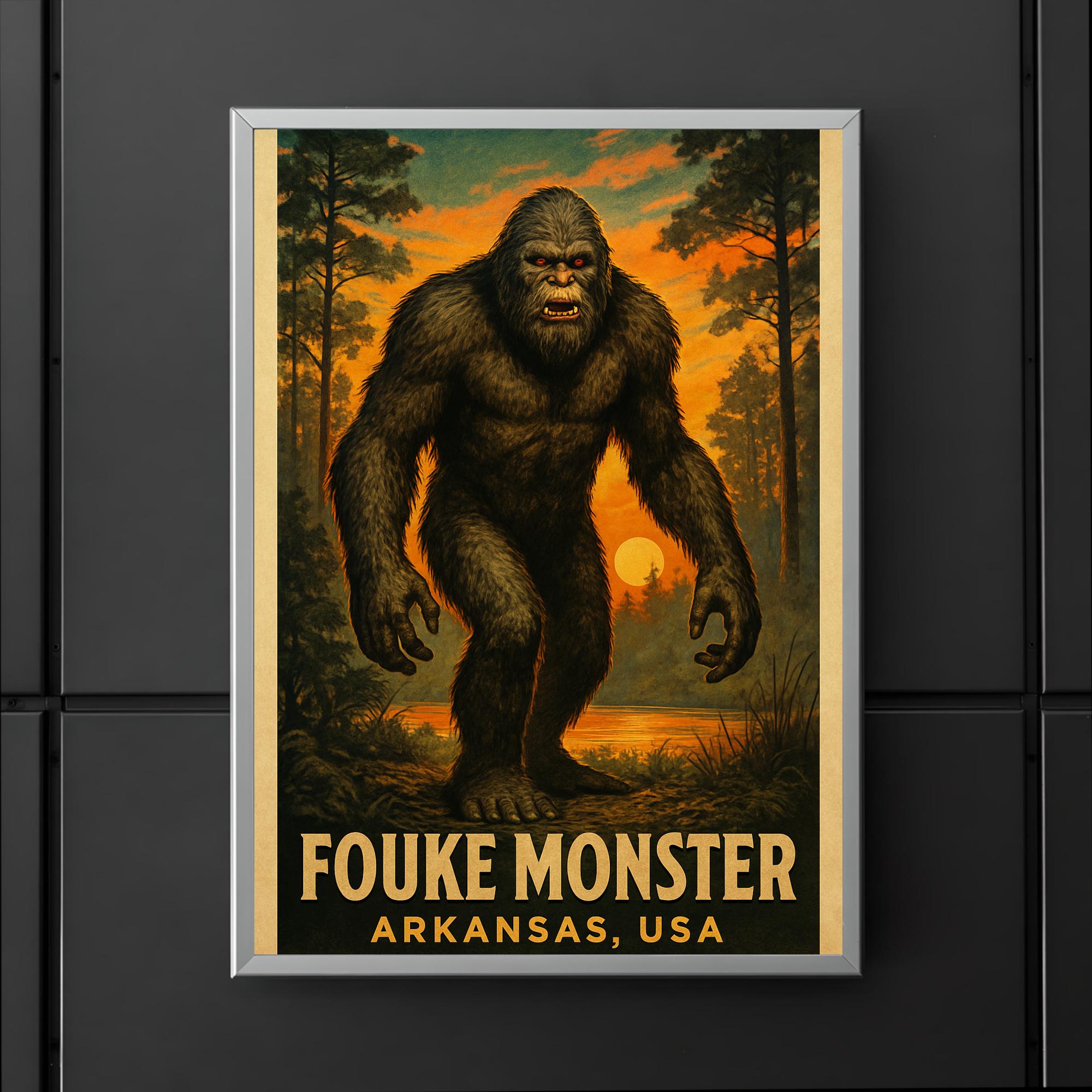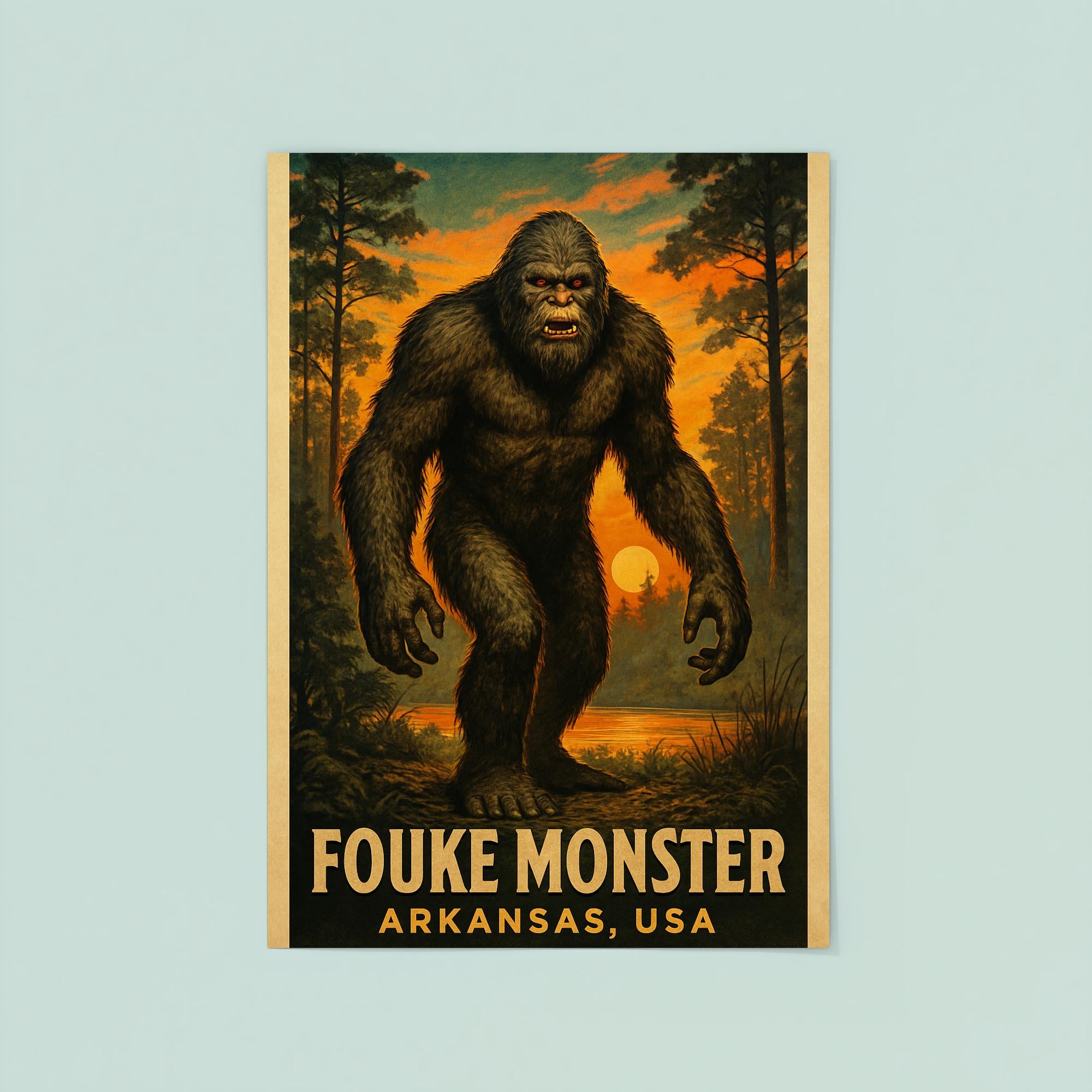 Capture the mystery and allure of Arkansas folklore with this striking Fouke Monster poster. Perfect for enthusiasts of cryptids and local legends, this artwork brings a piece of Southern mystery into your space, sparking curiosity and conversation. Whether displayed in a home, office, or cabin, it’s a must-have tribute to the legendary creature that continues to captivate imaginations.