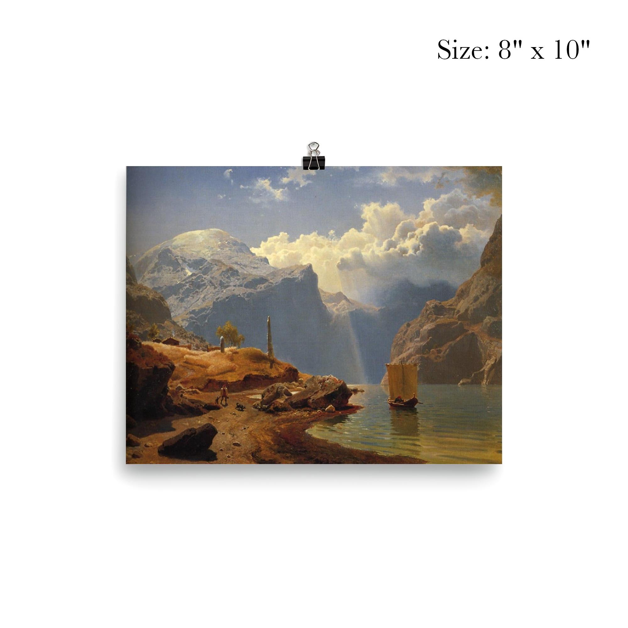 Transform your space with the timeless beauty of Hans Gude’s 1847 masterpiece, "Fra Hardanger." This stunning poster captures the serene essence of Norway’s fjord landscapes, inviting a sense of tranquility and natural grandeur into any room. Perfect for lovers of classic art and breathtaking scenery alike, it’s a tribute to the majestic simplicity of the Nordic wilderness.