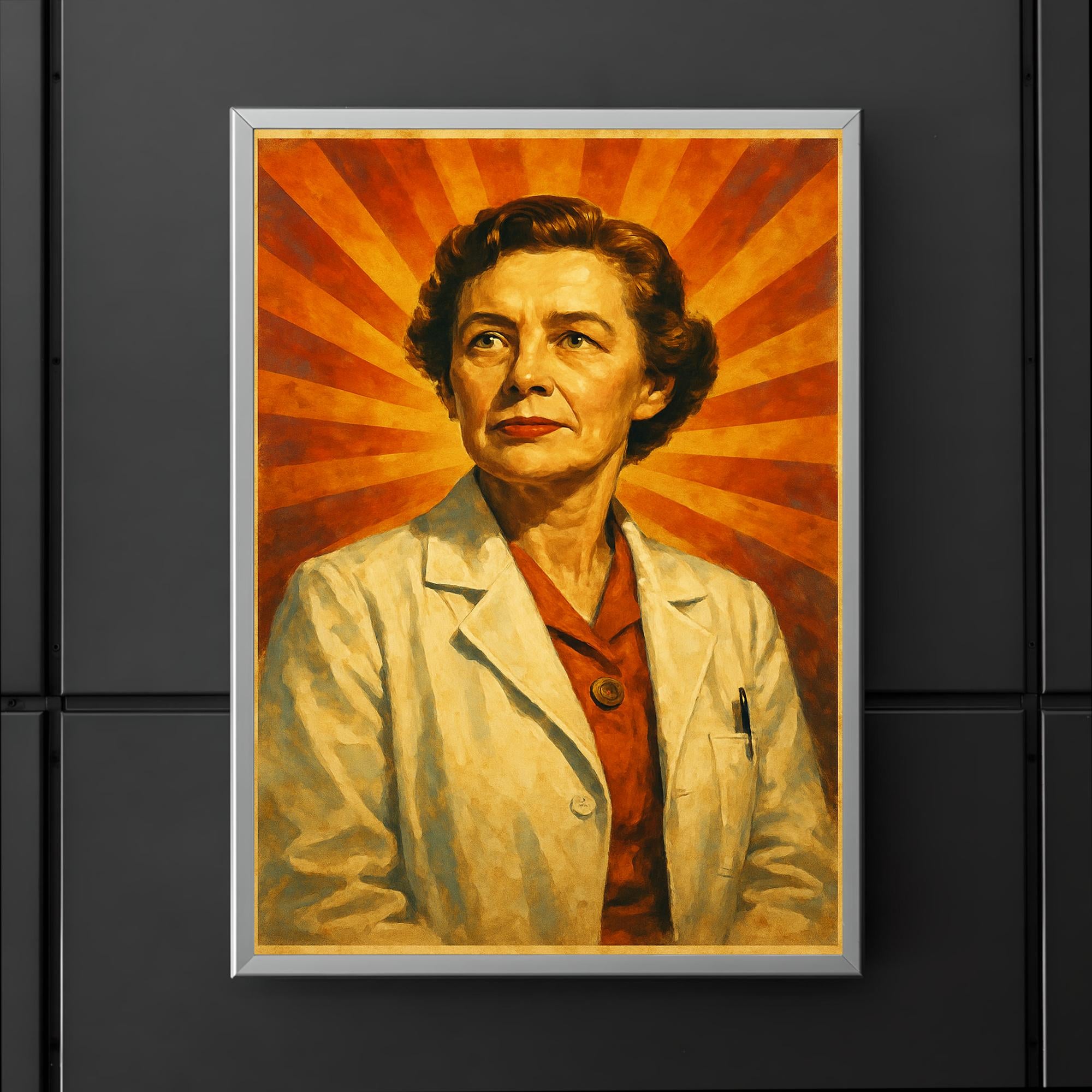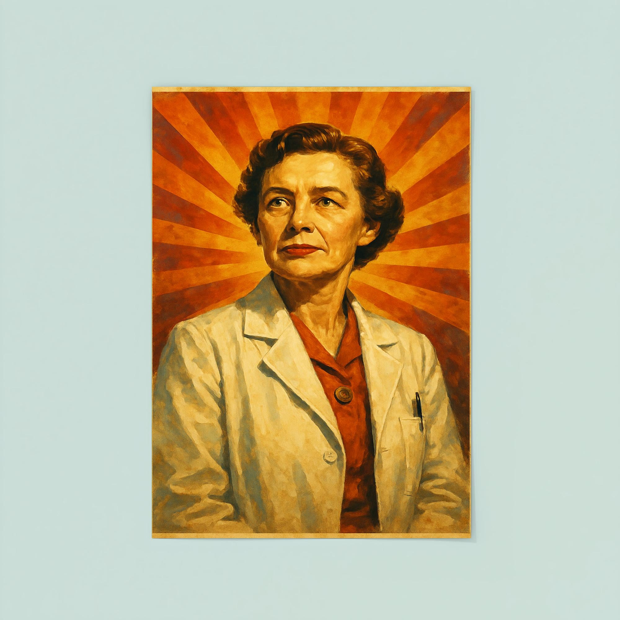 Celebrate the trailblazing spirit of Frances Oldham Kelsey with this striking poster, honoring the woman whose courage and integrity changed the course of medical history. Perfect for inspiring curiosity and admiration, this artwork pays tribute to a true heroine whose dedication safeguarded countless lives. Add this powerful piece to your space and keep her legacy alive every day.