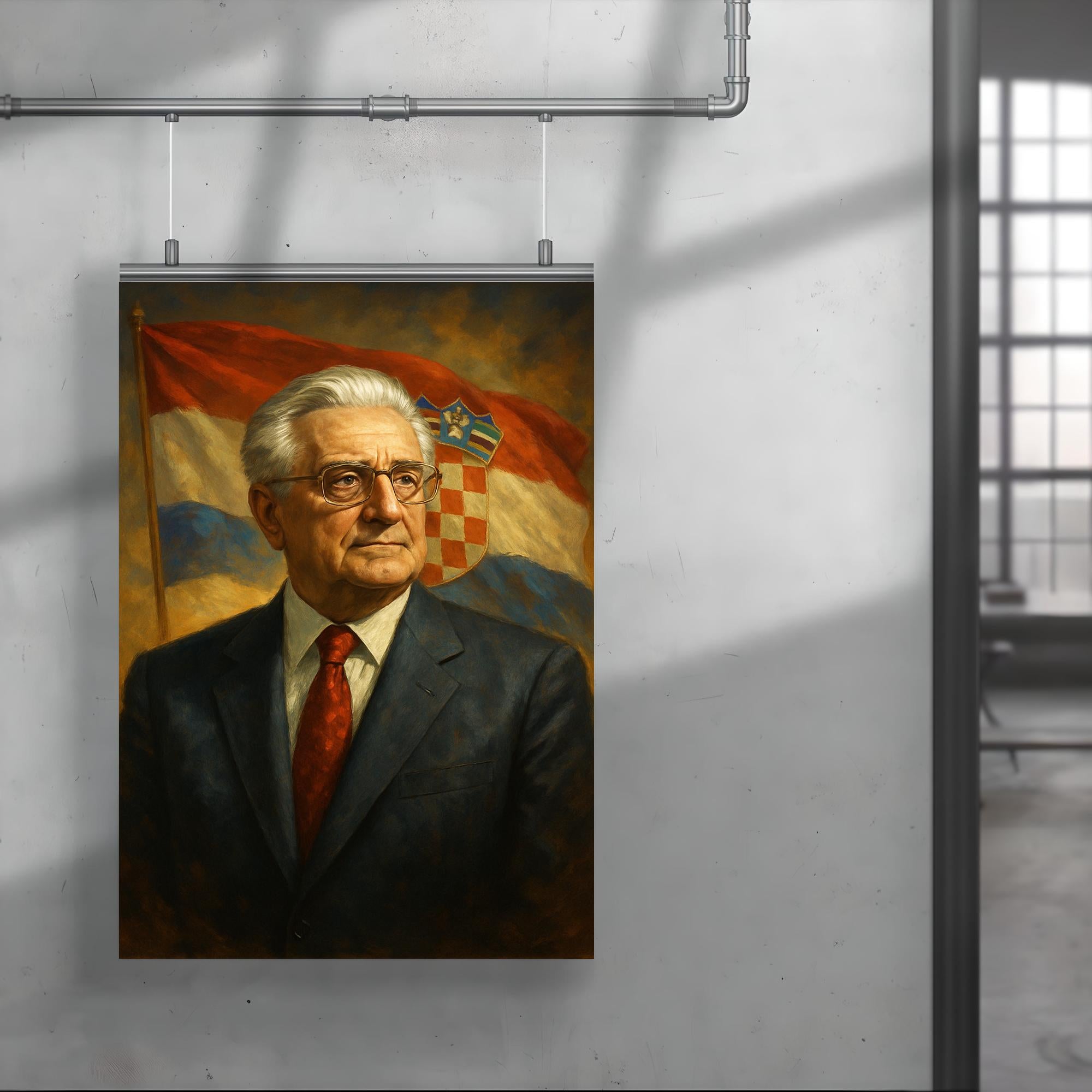 Celebrate the legacy of Franjo Tudman with this striking poster, capturing the spirit of one of Croatia’s most influential leaders. Perfect for history enthusiasts and admirers of Croatian heritage, this high-quality print adds a powerful statement to any space, honoring a pivotal figure in modern history.