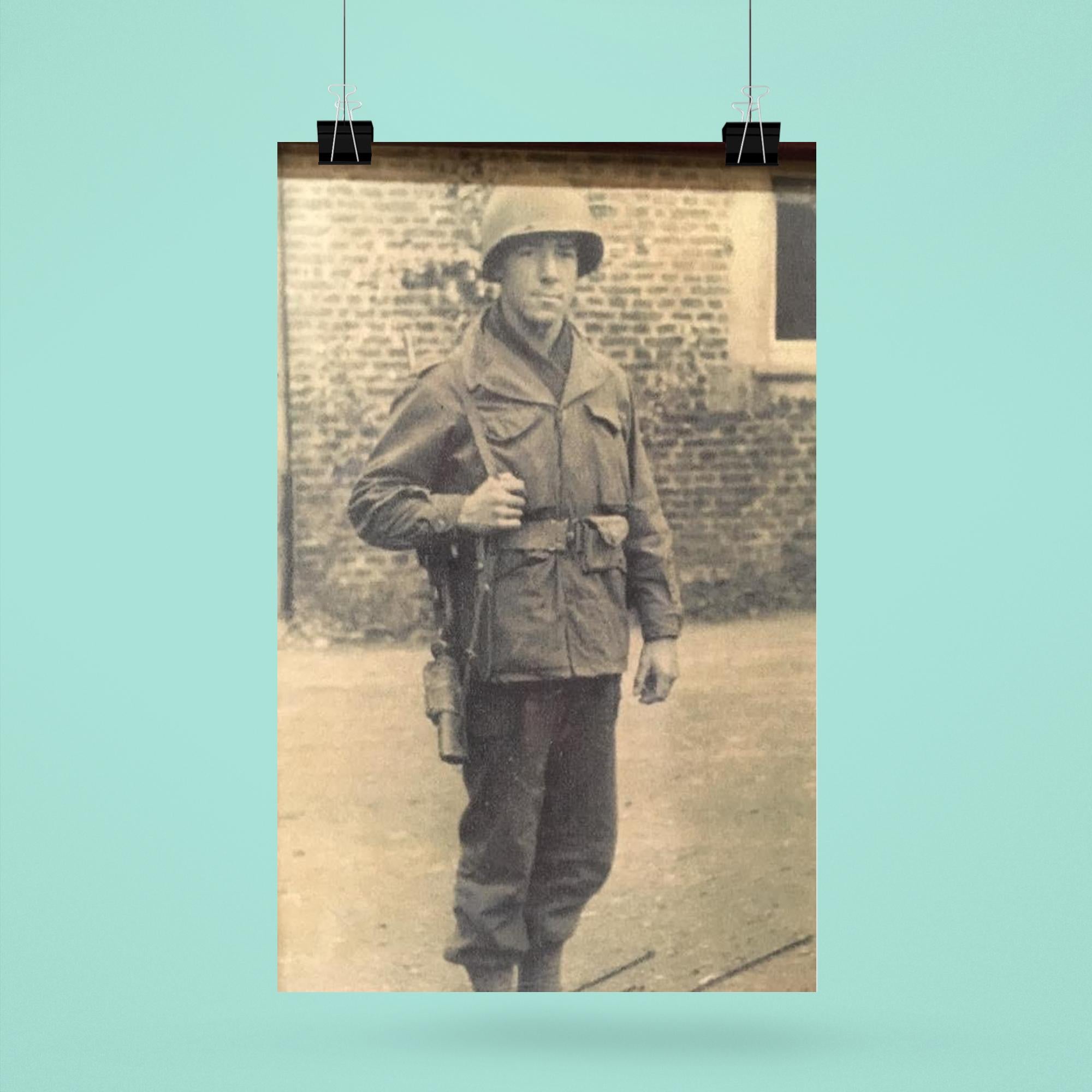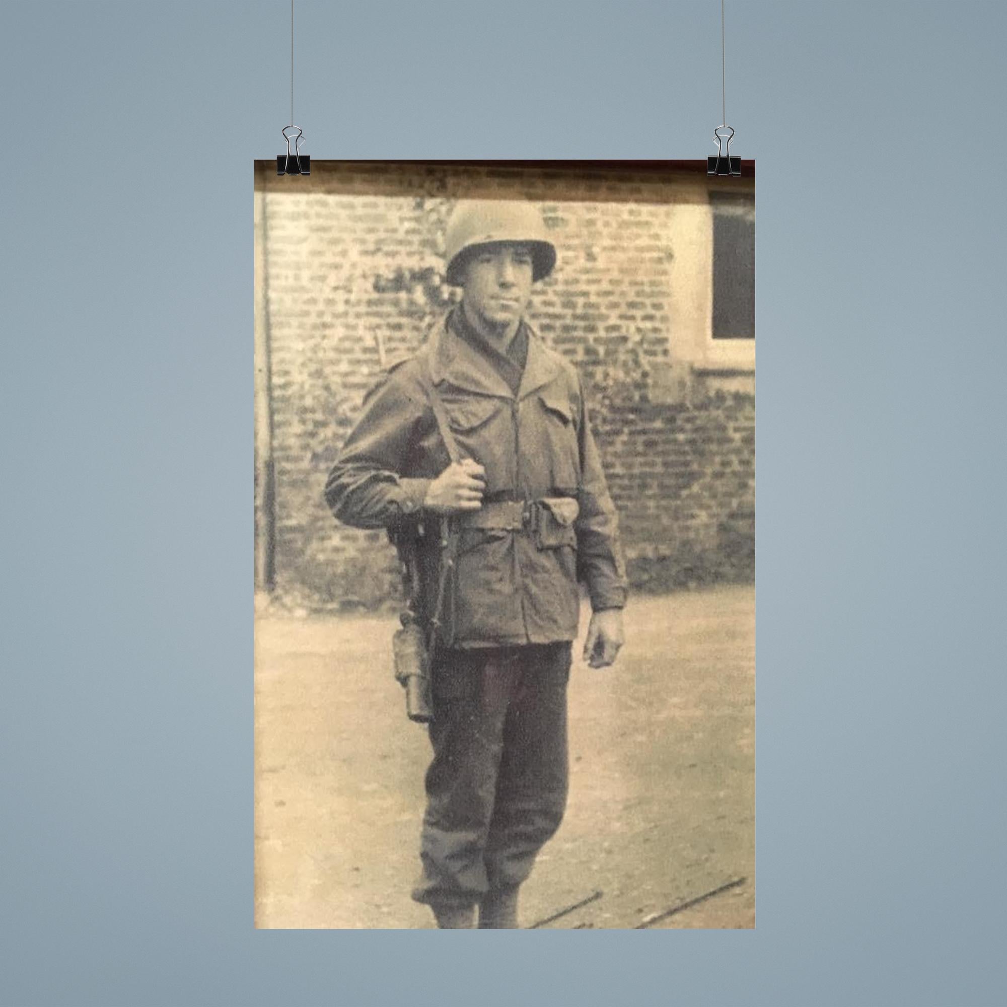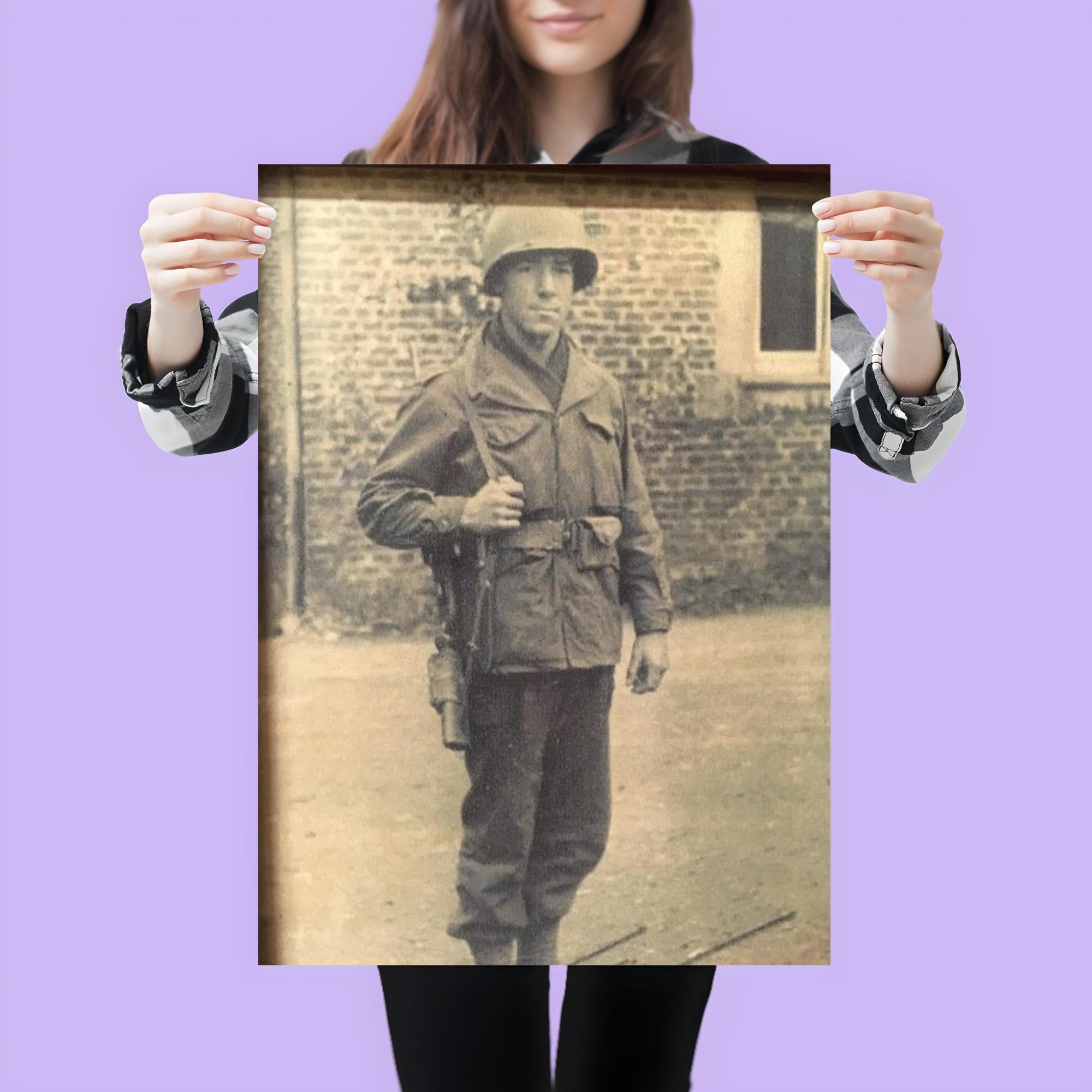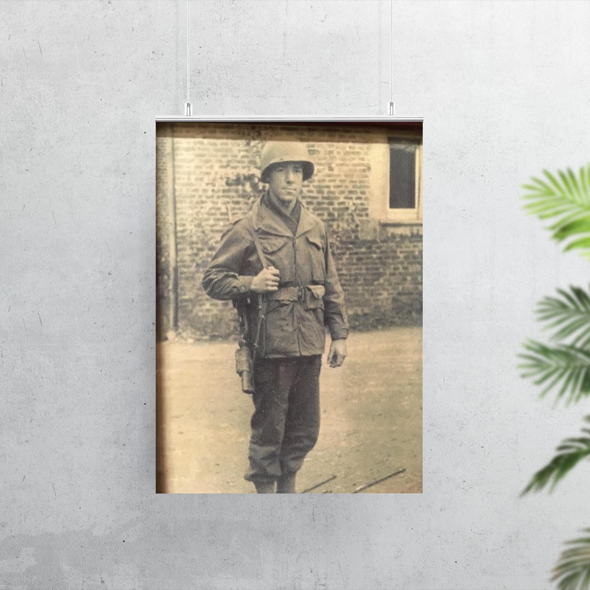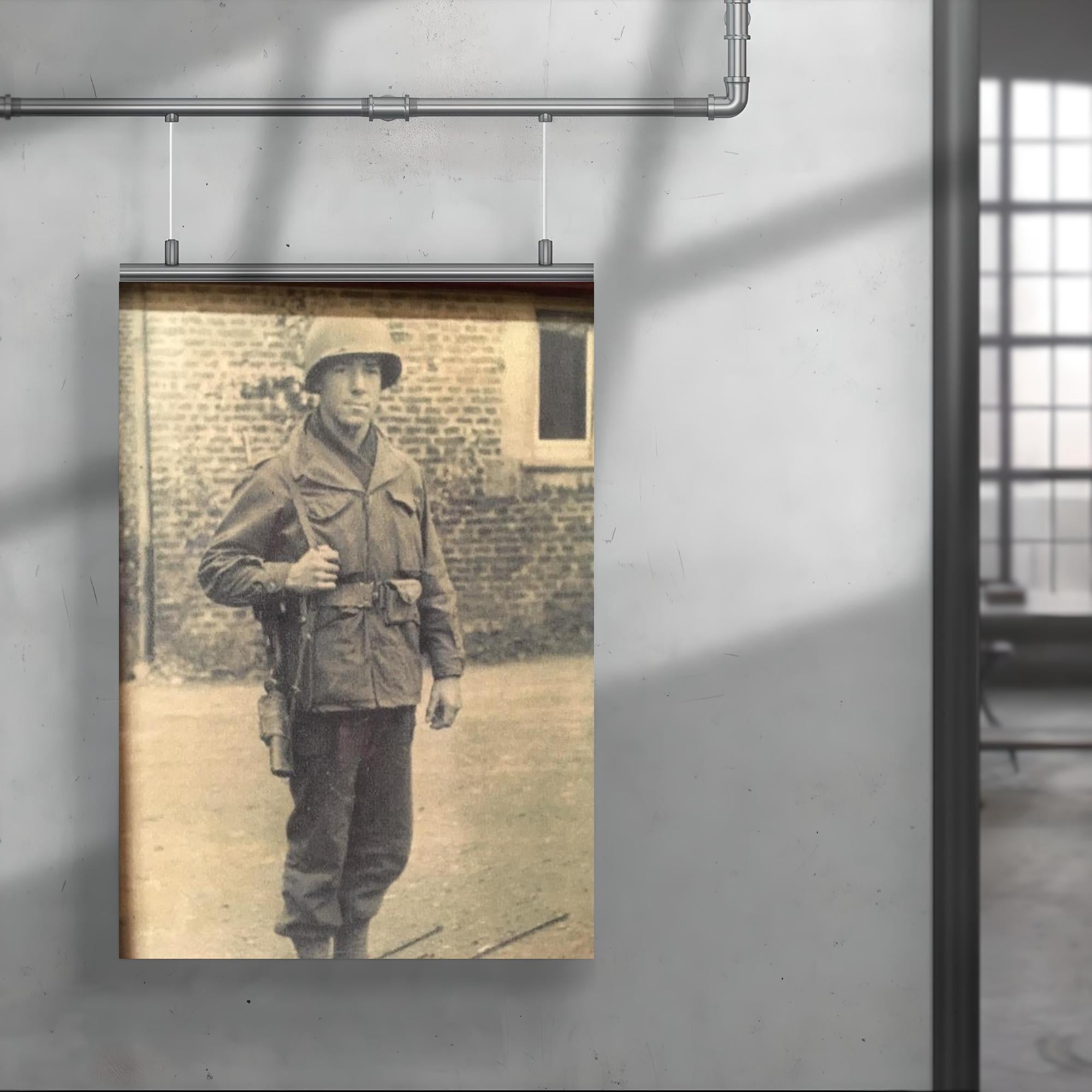 Honor the valor of Frank L. Wendel, a dedicated Cannon Crew Member on the 105mm Howitzer, with this compelling poster capturing a pivotal moment in England before D-Day. This striking tribute brings history to life, celebrating the courage and readiness of those who stood on the brink of one of World War II’s defining battles. Perfect for any history enthusiast or collector seeking a meaningful connection to the past.