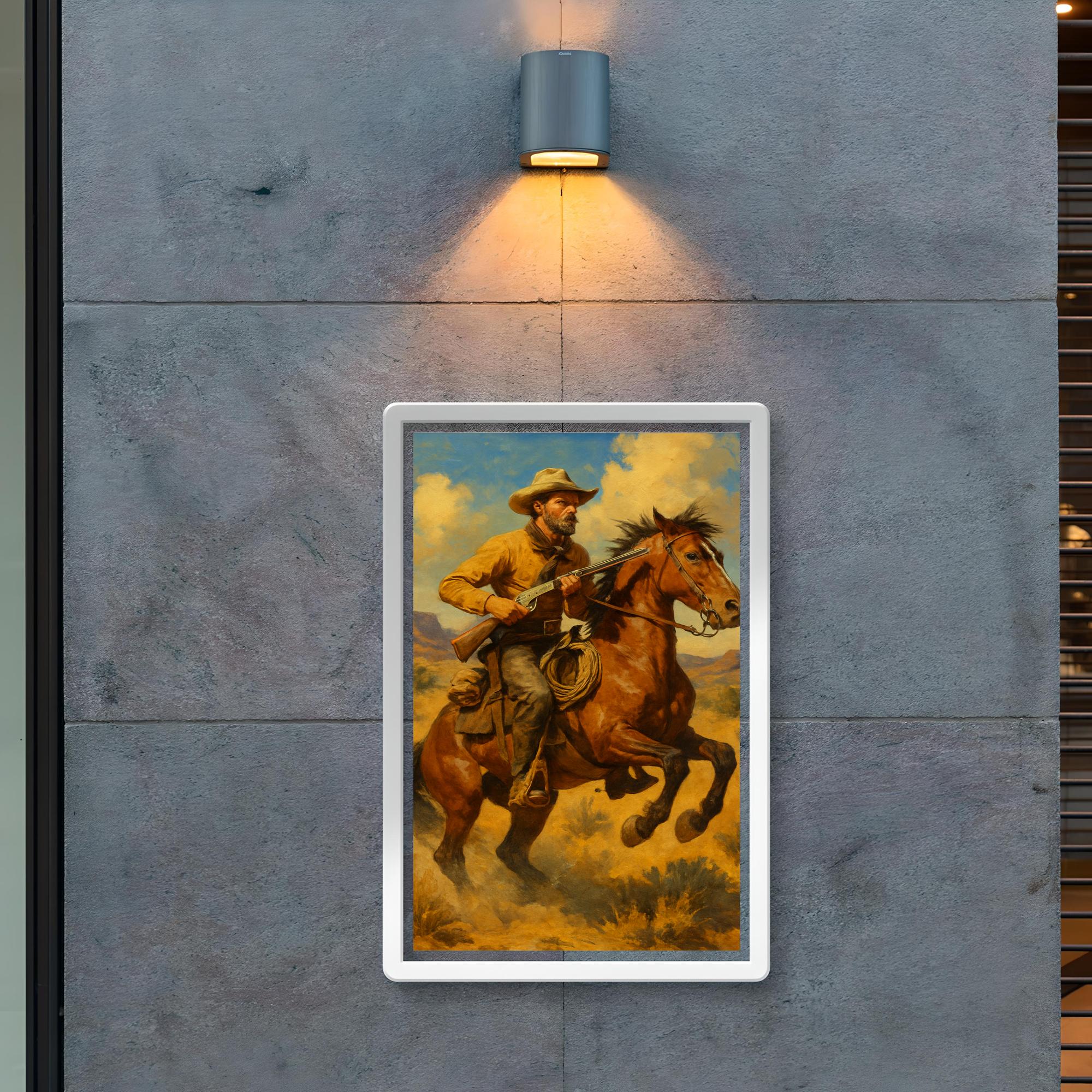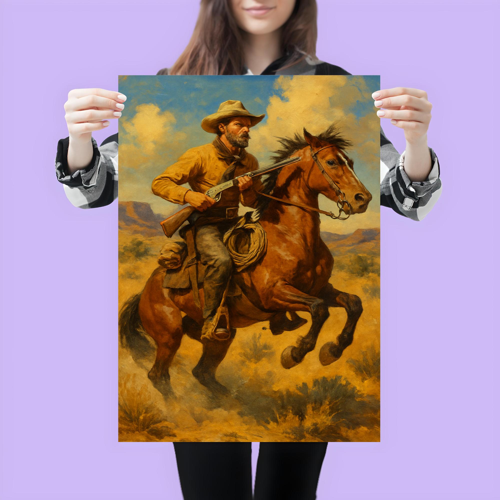 Bring the spirit of the American West into your space with this stunning poster of Frederic Remington’s iconic artwork. Celebrated for his masterful portrayal of cowboys, horses, and frontier life, Remington’s piece captures the rugged energy and timeless adventure of a bygone era. Perfect for art lovers and history enthusiasts alike, this poster transforms any room with bold storytelling and classic Western charm.