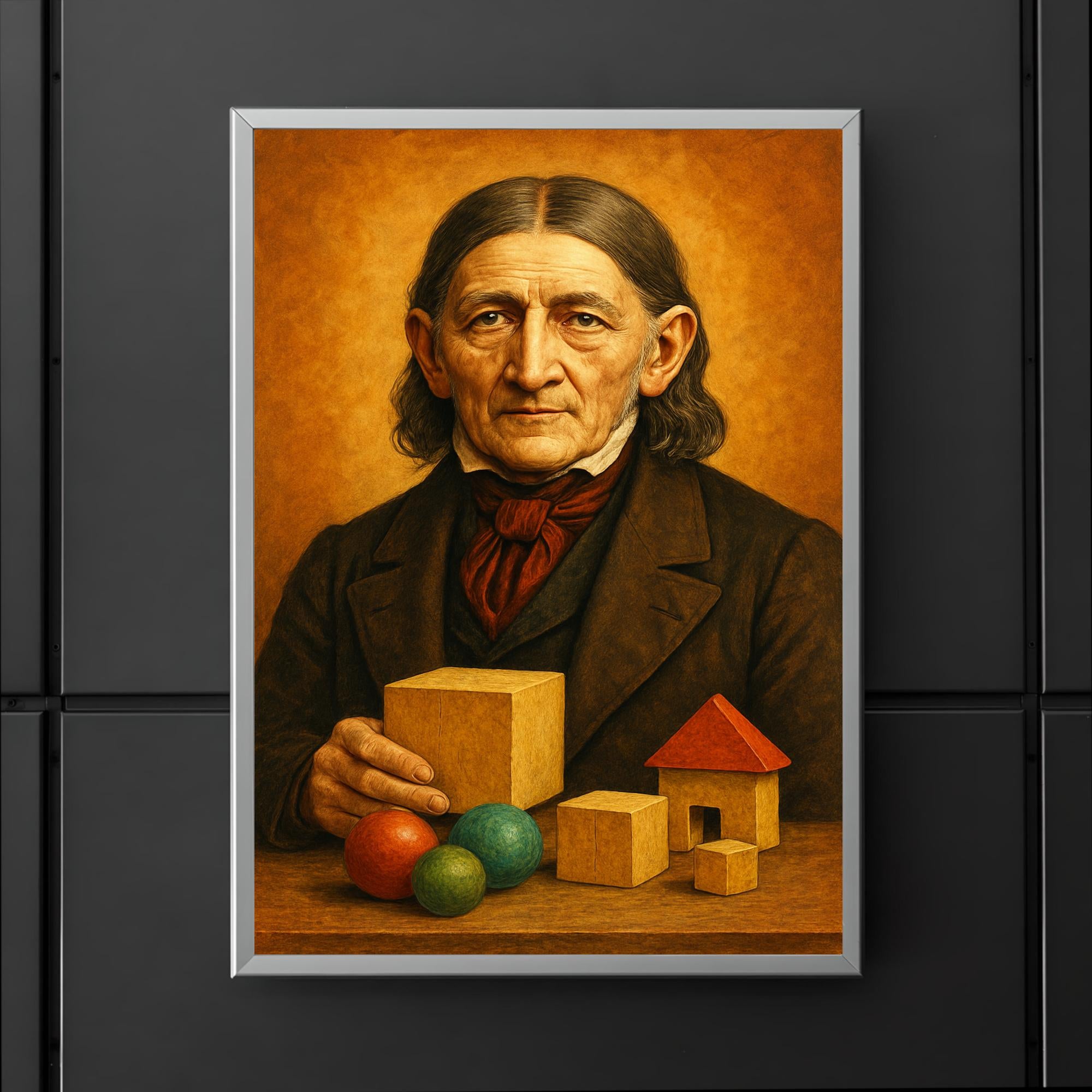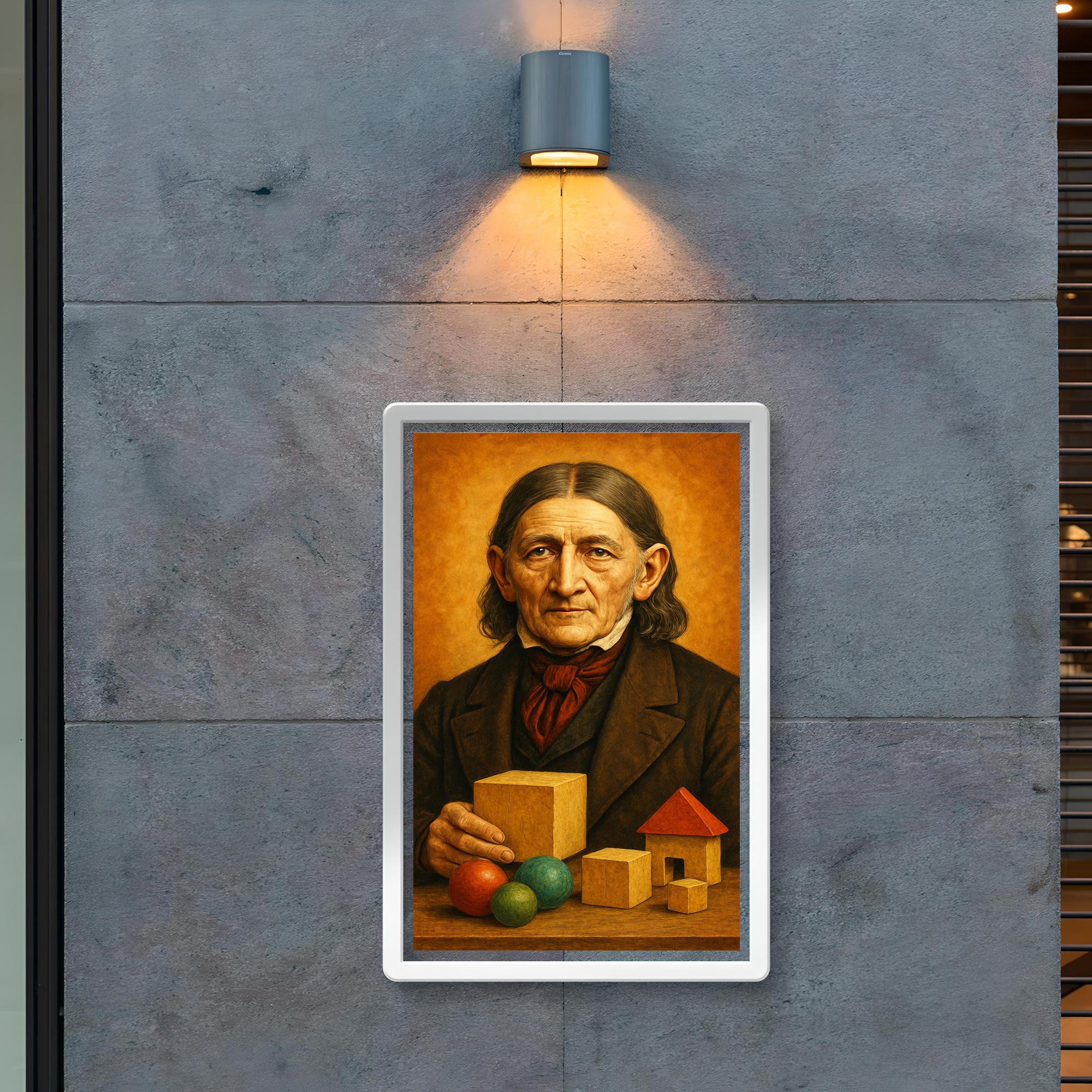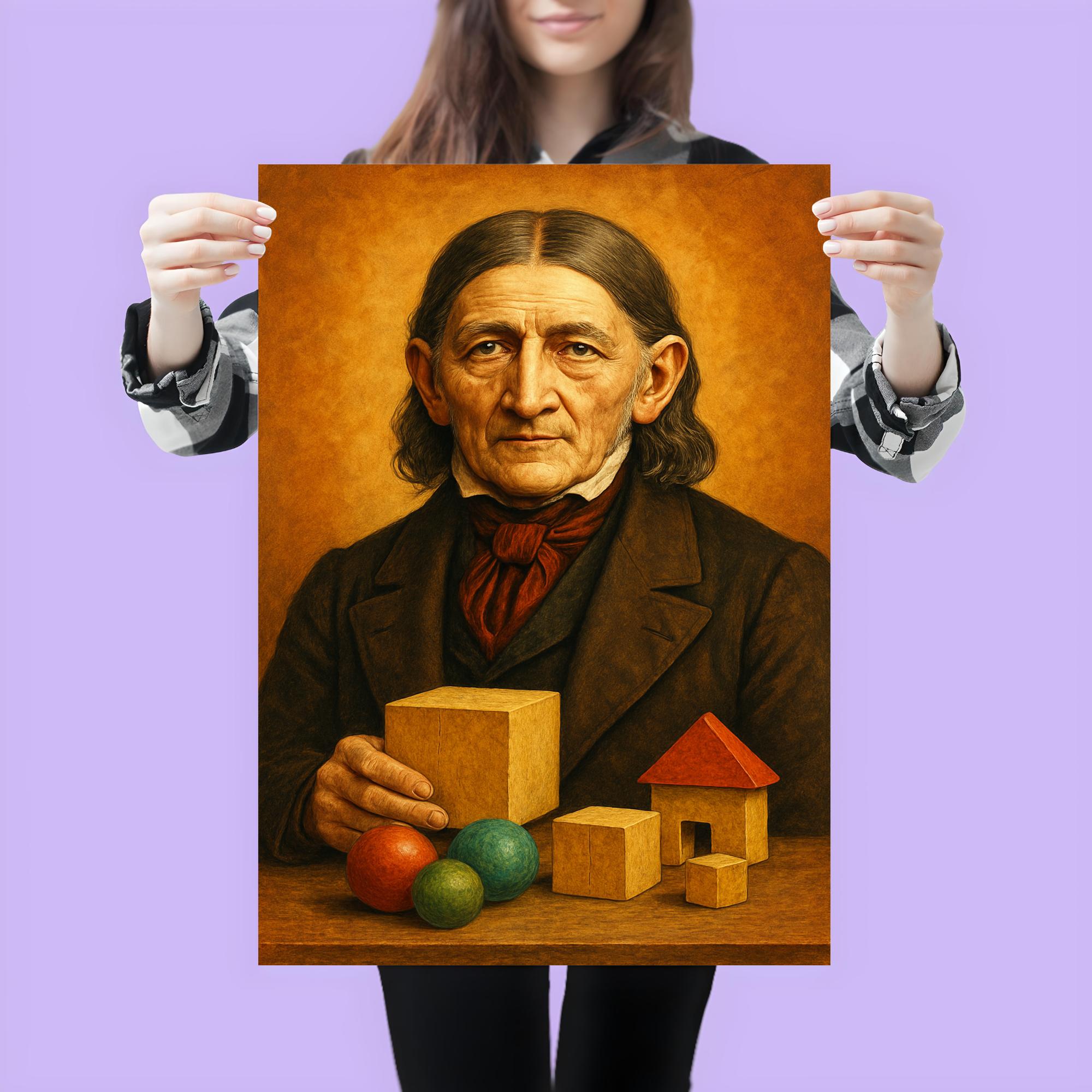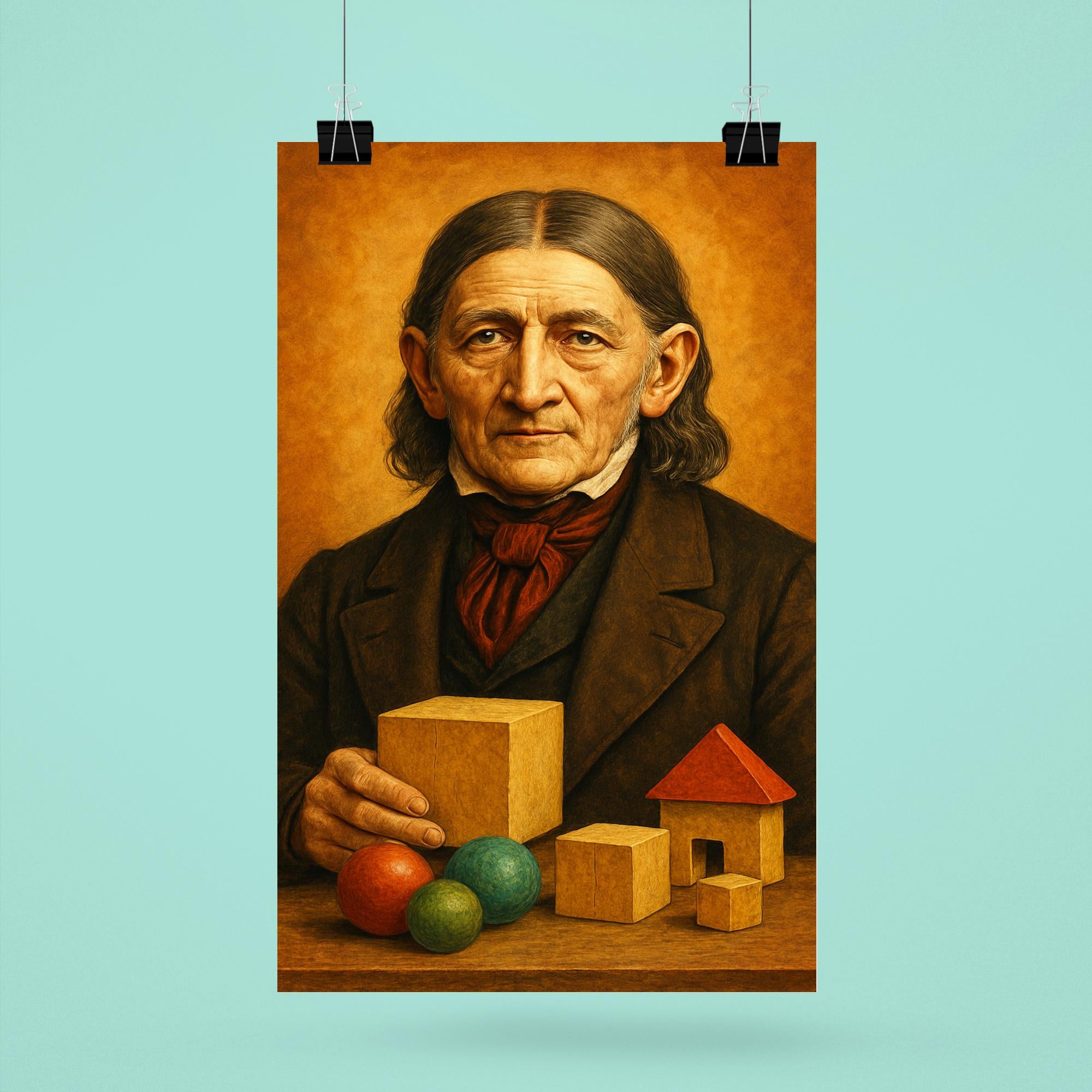 Celebrate the visionary educator Friedrich Froebel with this striking poster, a perfect addition to any learning space or office. Its timeless design honors the man who revolutionized early childhood education, inspiring creativity and discovery. Elevate your surroundings with a tribute to a true pioneer in nurturing young minds.