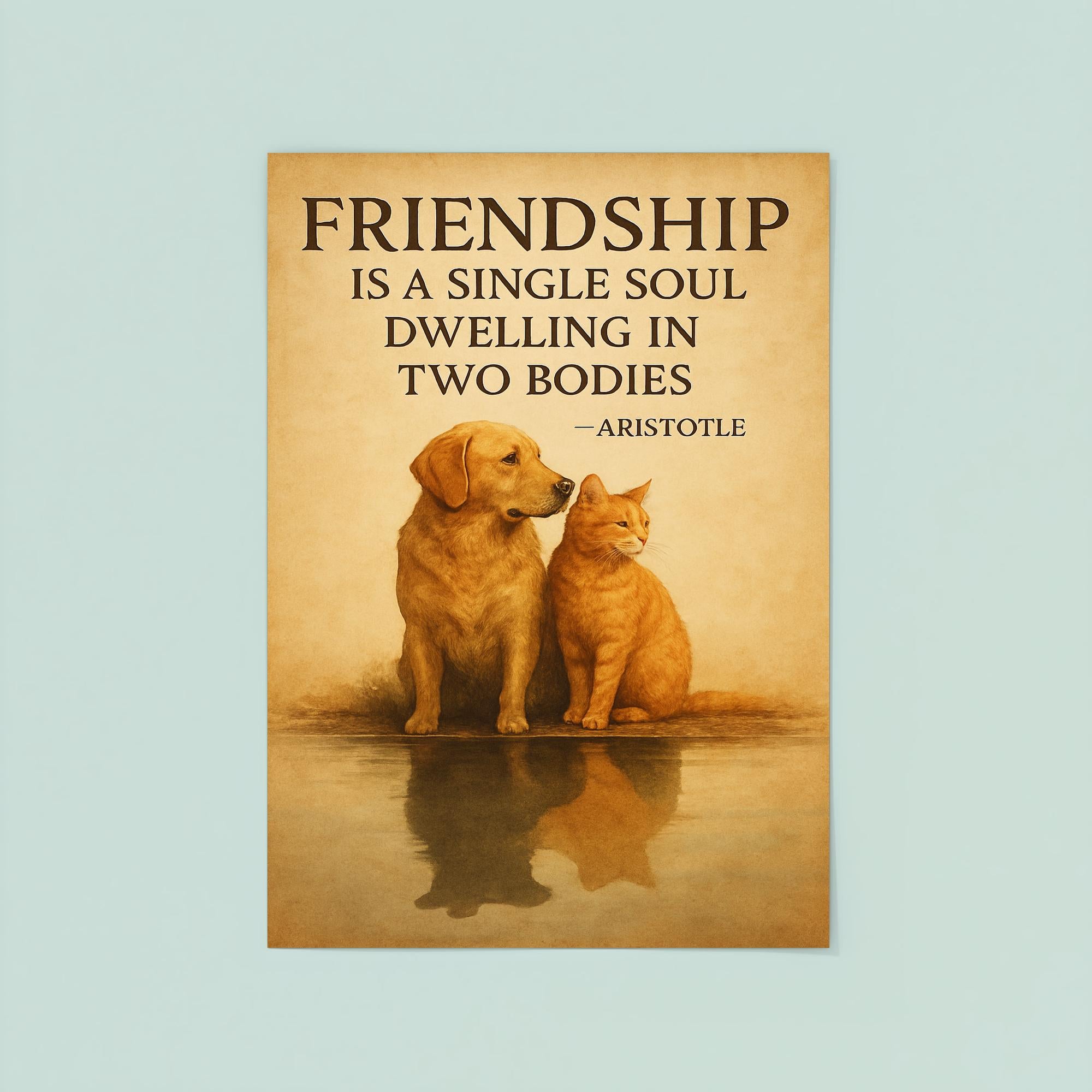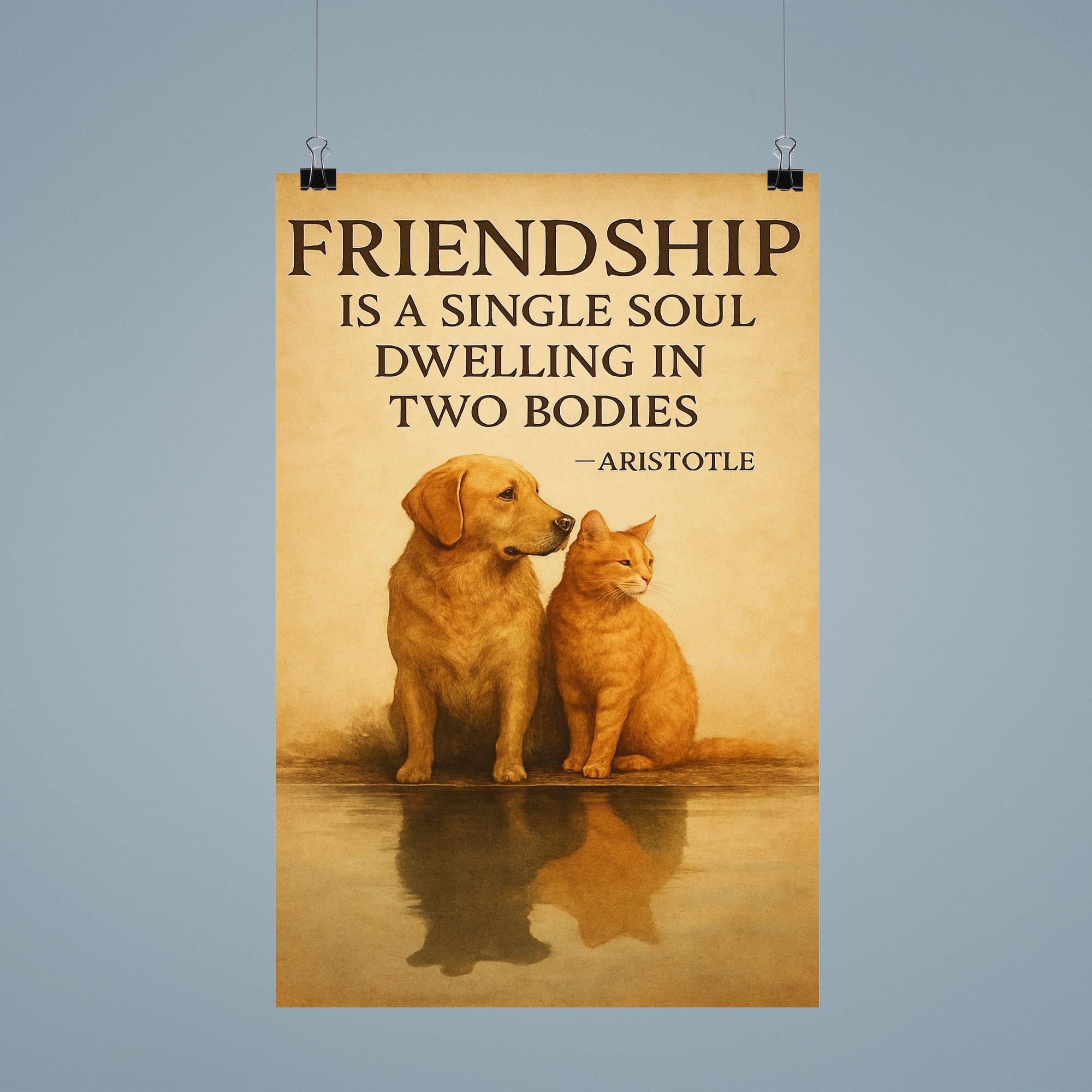 Celebrate the timeless bond of friendship with this striking poster featuring Aristotle’s profound quote: “Friendship is a single soul dwelling in two bodies.” Perfect for any space, it beautifully captures the unity and shared spirit between kindred souls. Let this artwork inspire connection and warmth every day.