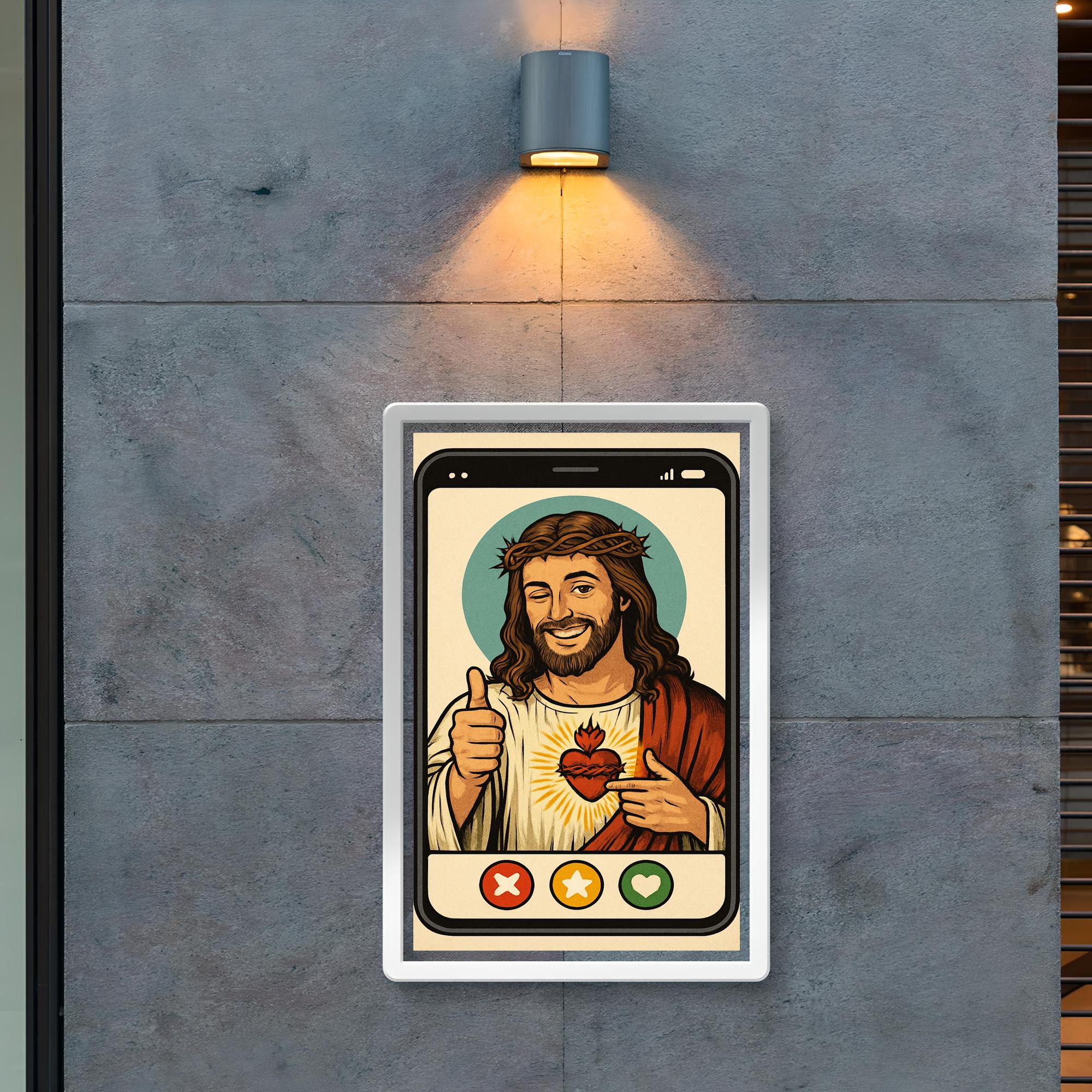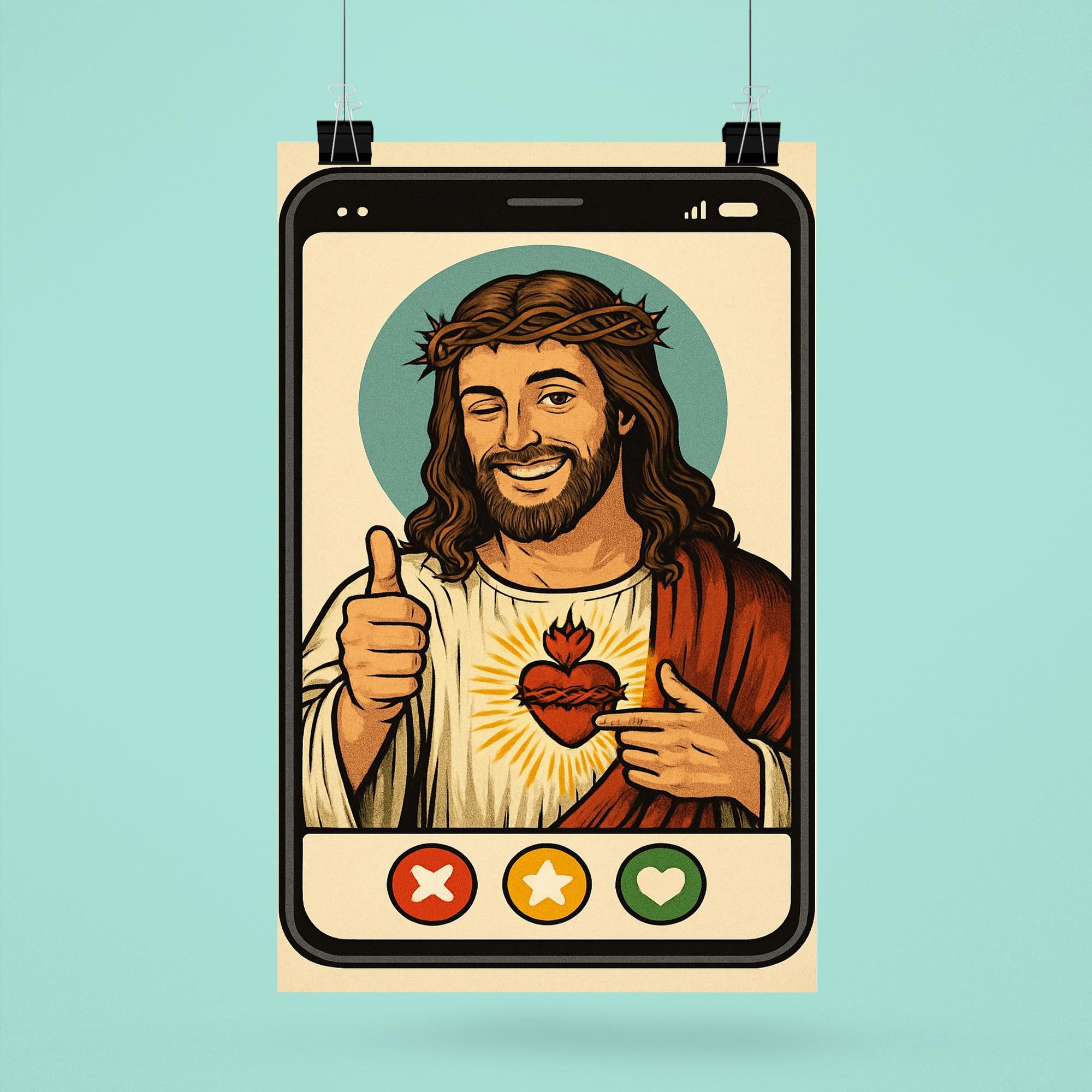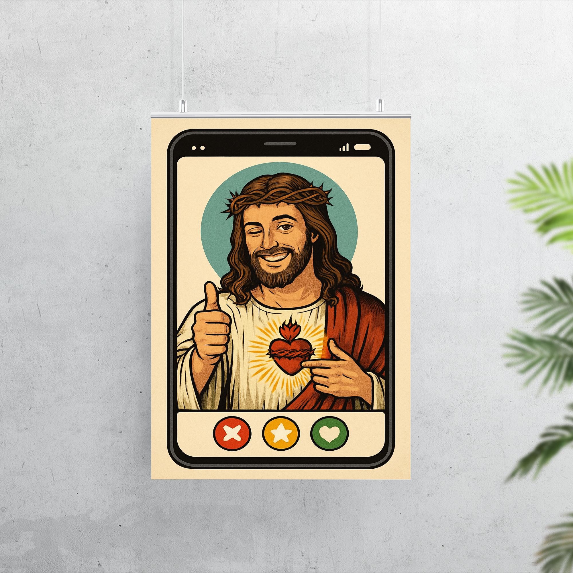 Inject humor and charm into your space with this hilarious poster featuring Jesus’s funny dating app profile. Perfect for sparking conversations and bringing smiles, it’s a clever twist that blends faith and modern life with a touch of wit. Whether for your home, office, or as a unique gift, this poster turns a timeless figure into a relatable, lighthearted icon.
