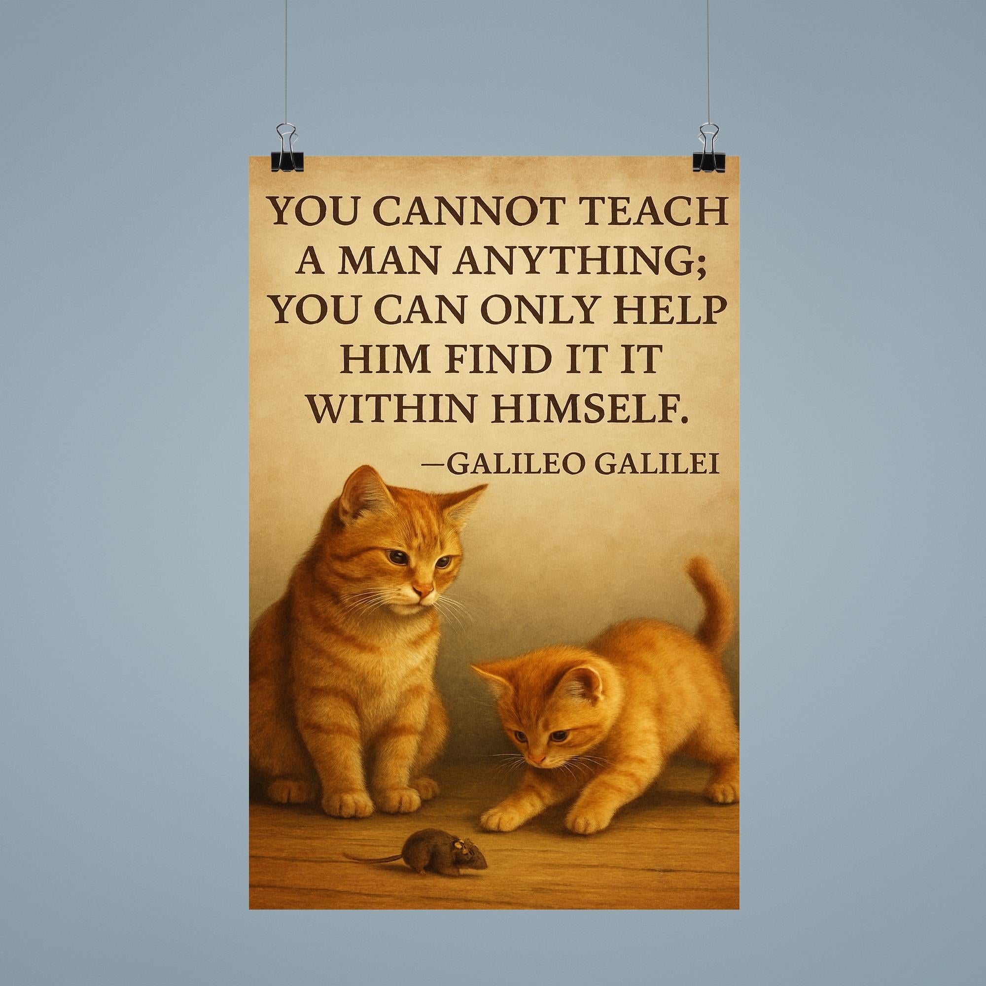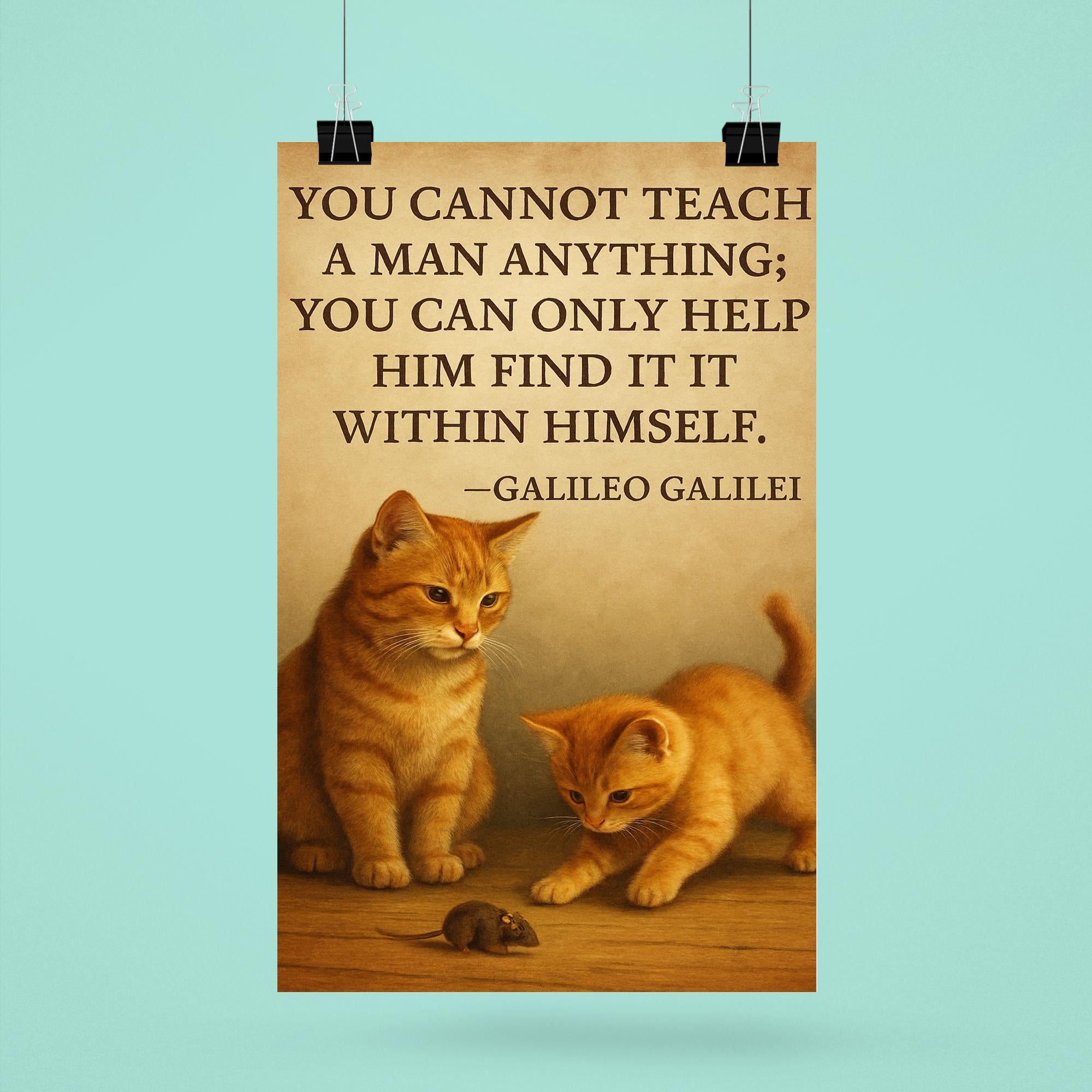 Inspire growth and self-discovery with this powerful Galileo quote: “You cannot teach a man; you can only help him find it within himself.” Perfect for educators, mentors, and lifelong learners, this poster serves as a timeless reminder that true learning comes from within, guided by patience and encouragement. Elevate any space with a message that celebrates the art of teaching and the journey of personal insight.