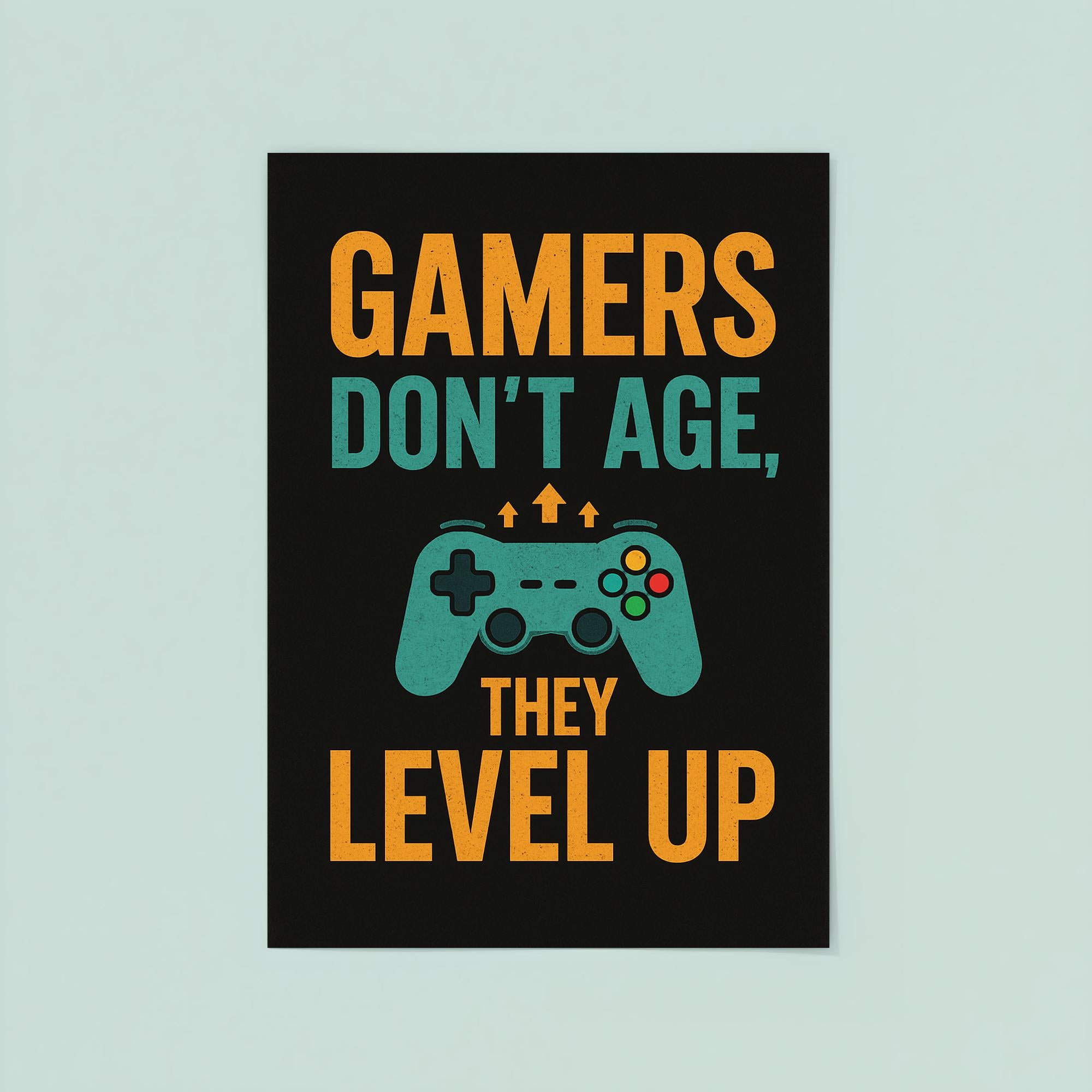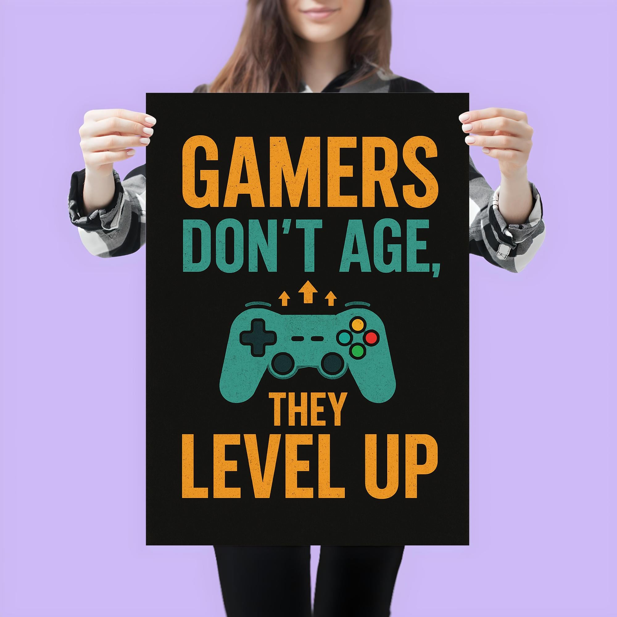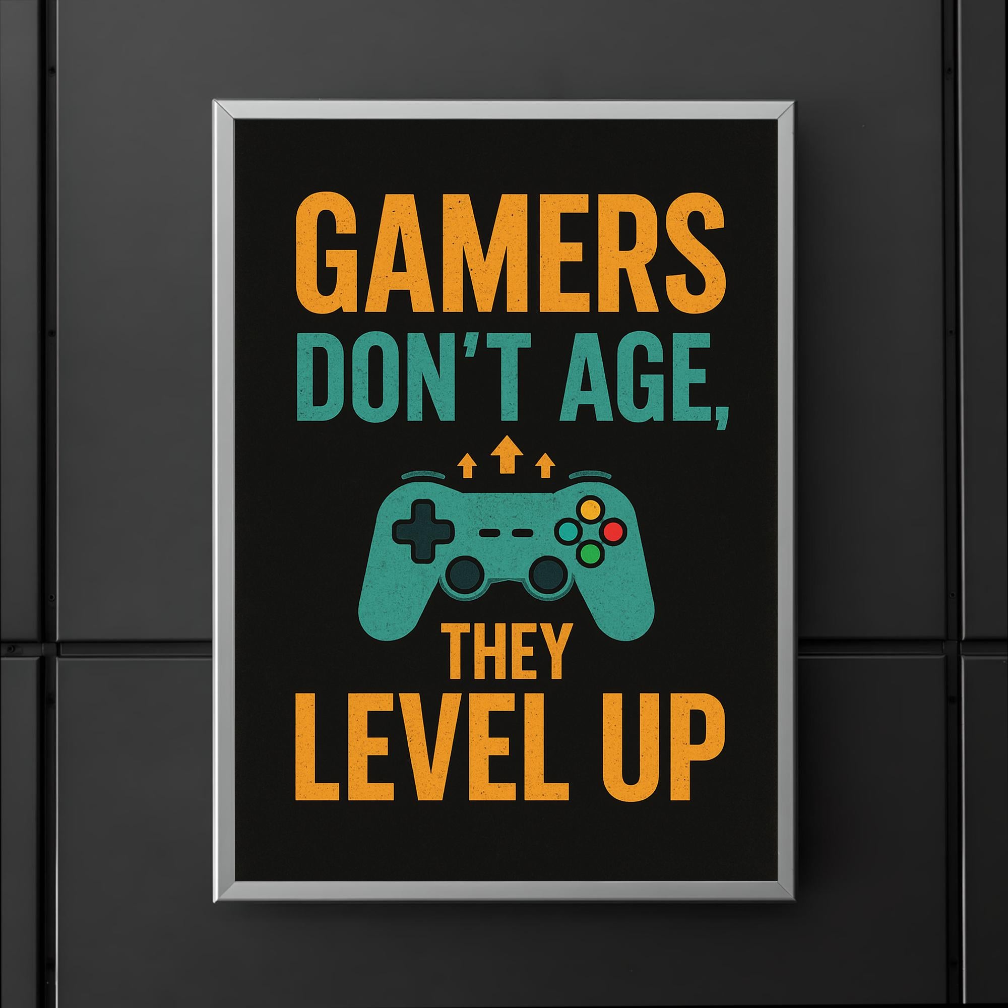 Level up your space—and your mindset! This bold "Gamers don’t age, they level up" poster is the ultimate nod to every player’s journey. Hang it in your gaming zone or bedroom for an instant boost of motivation and pride—because real gamers never get old, they just get better.