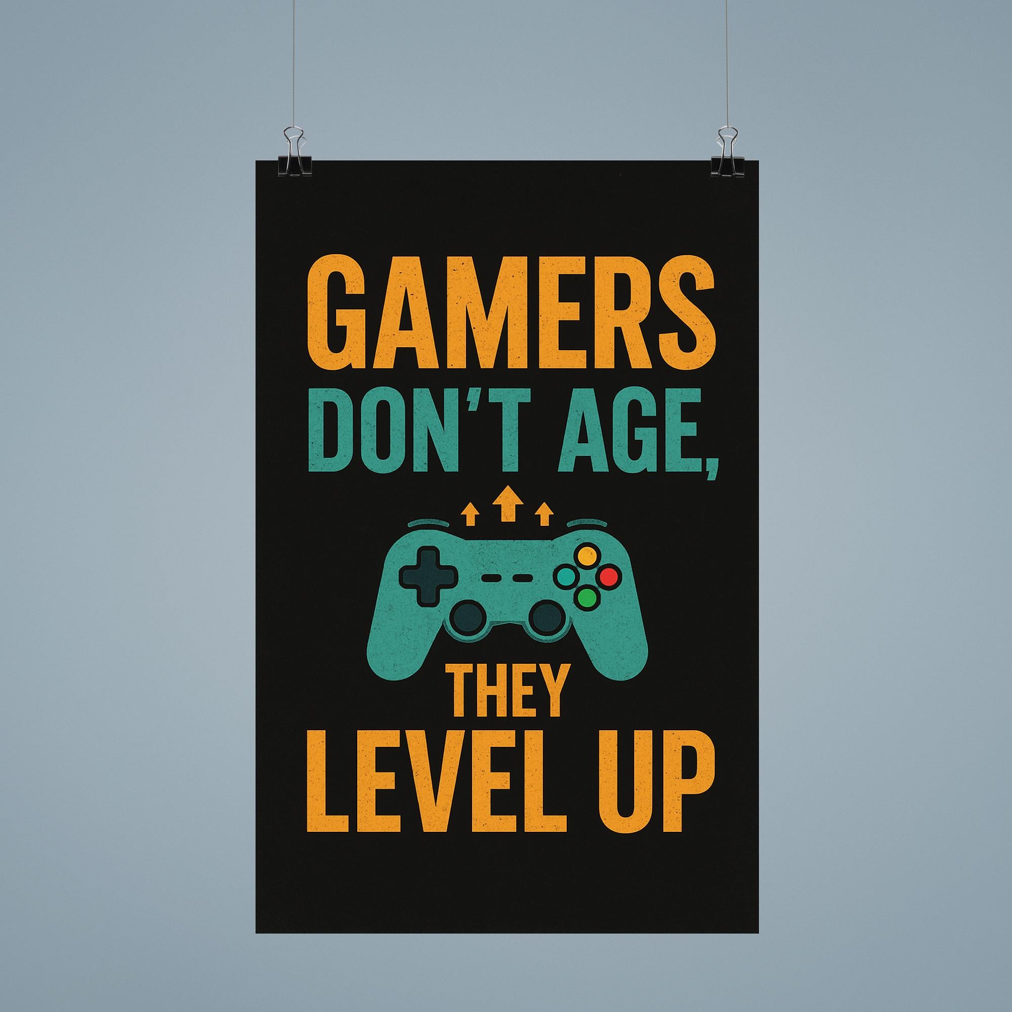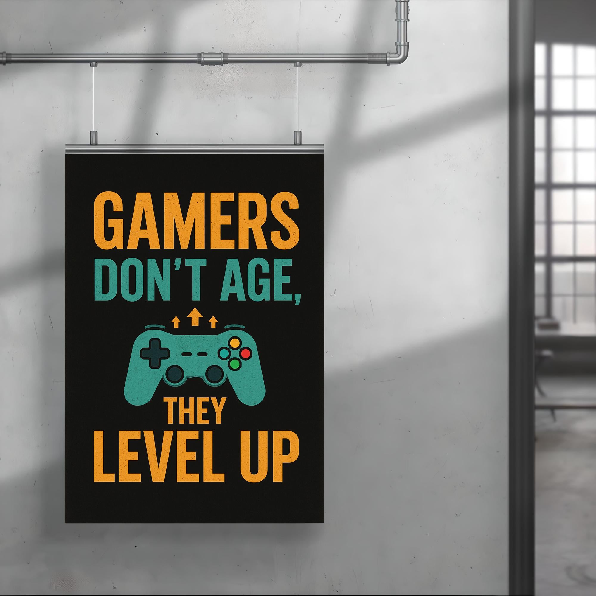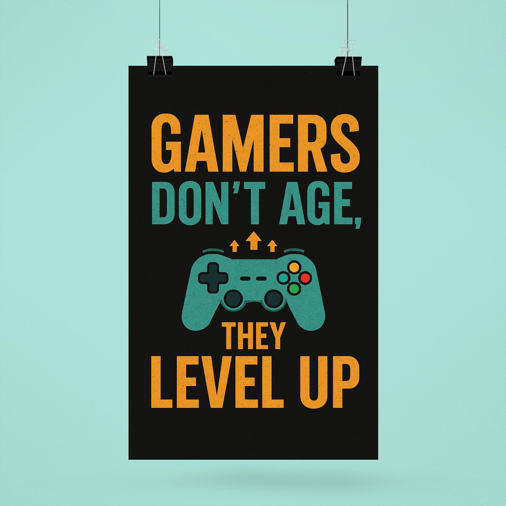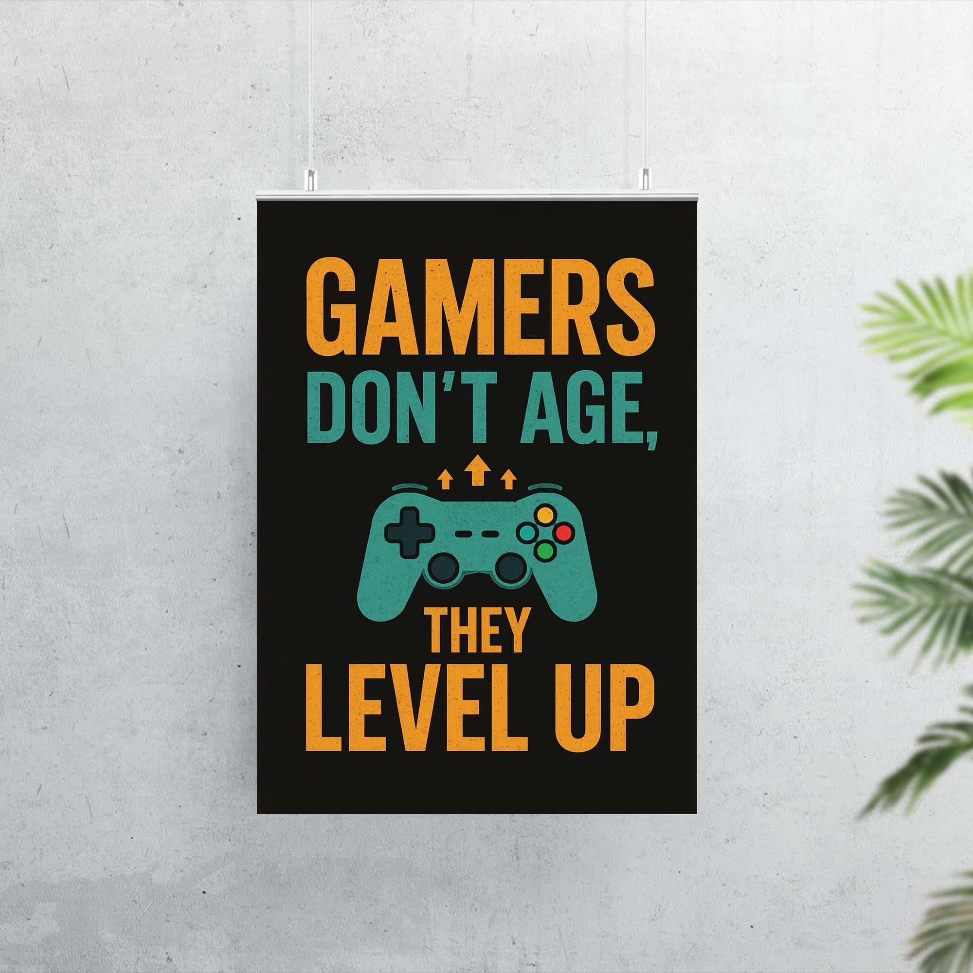 Level up your space—and your mindset! This bold "Gamers don’t age, they level up" poster is the ultimate nod to every player’s journey. Hang it in your gaming zone or bedroom for an instant boost of motivation and pride—because real gamers never get old, they just get better.