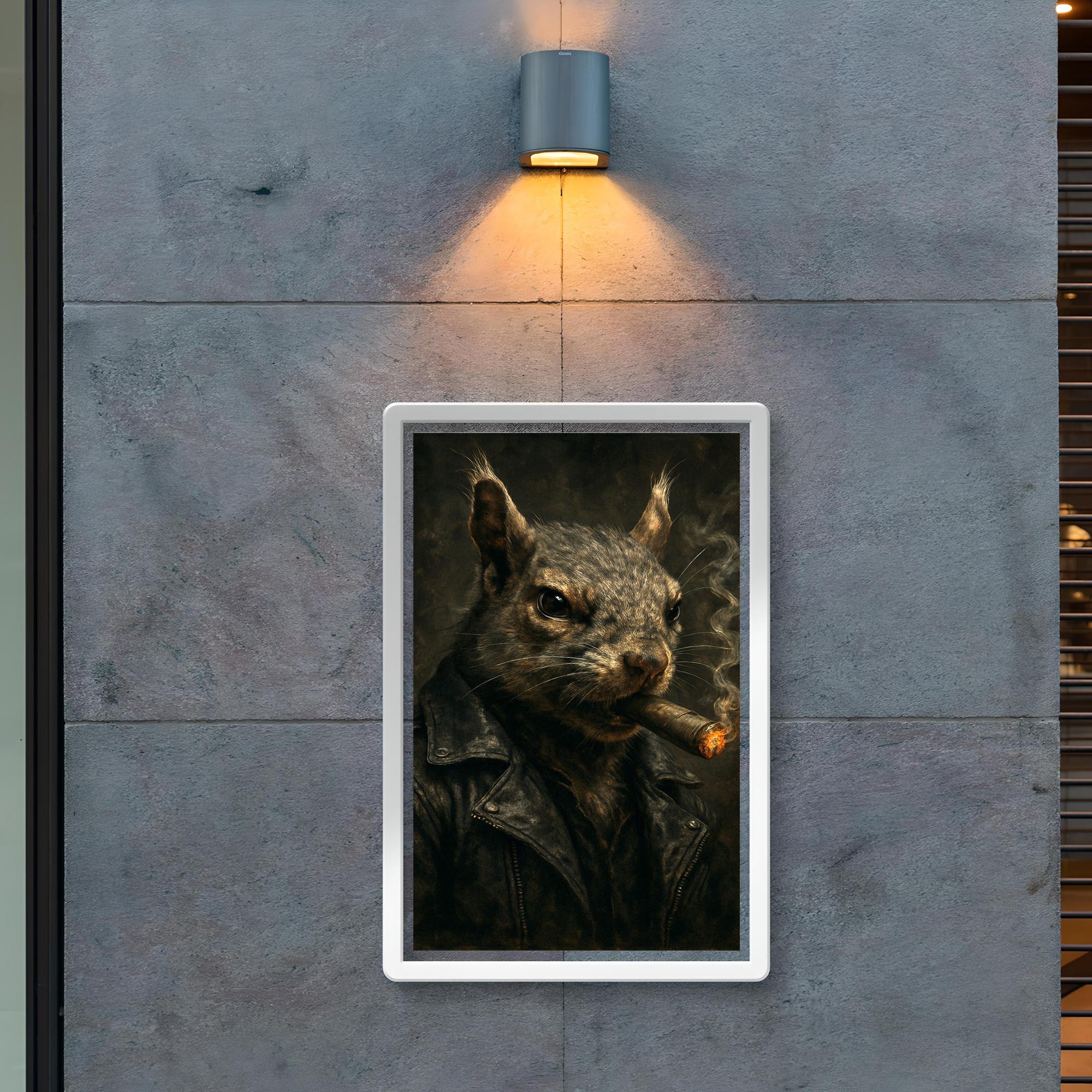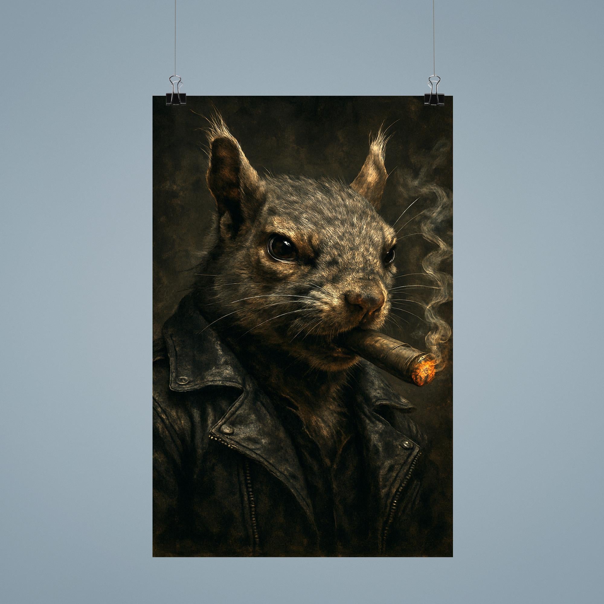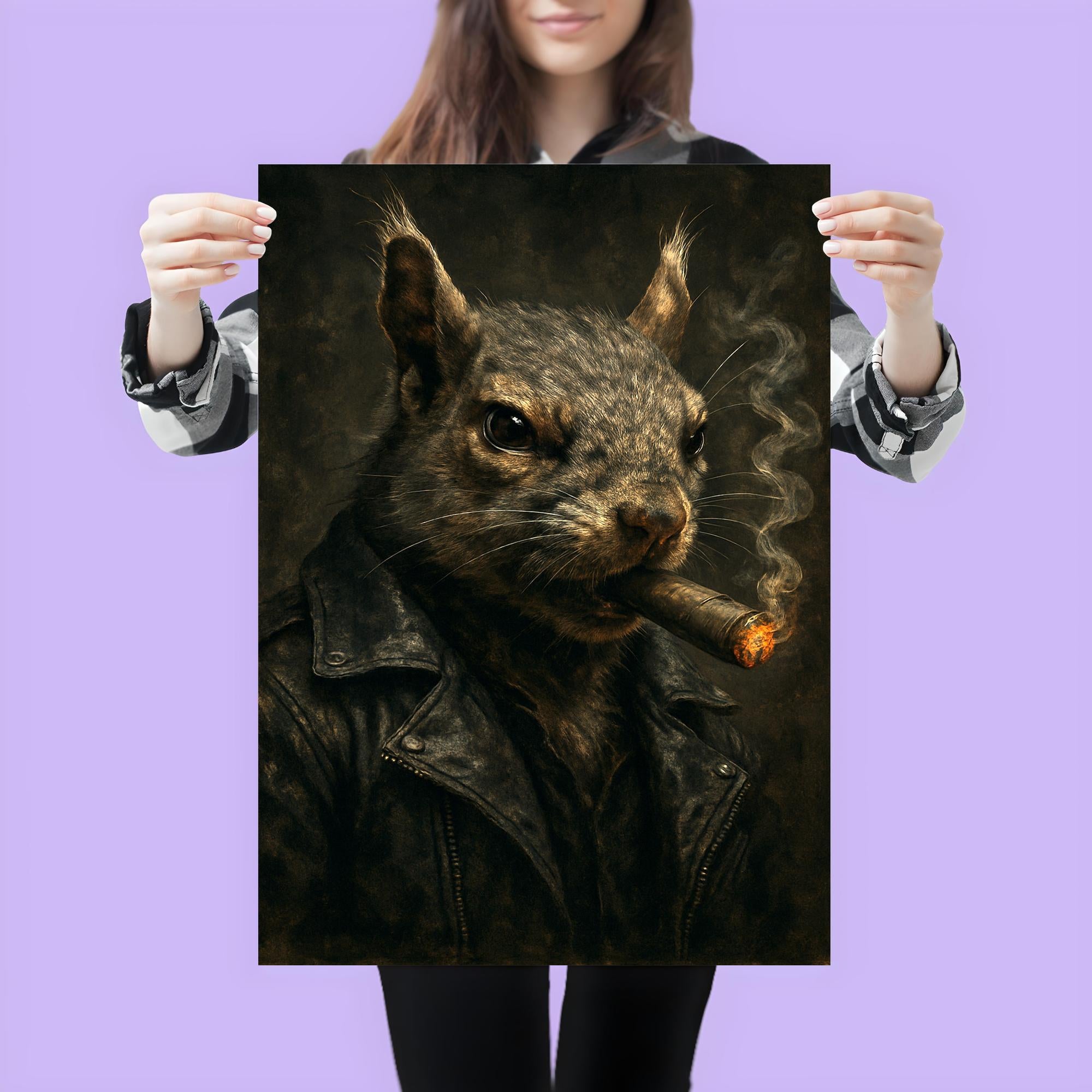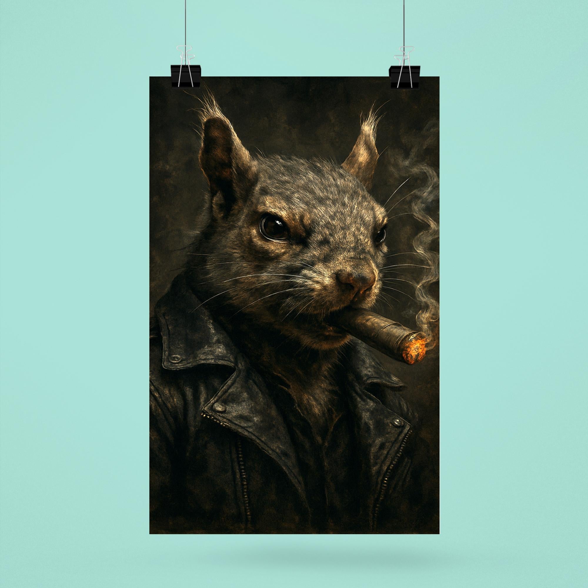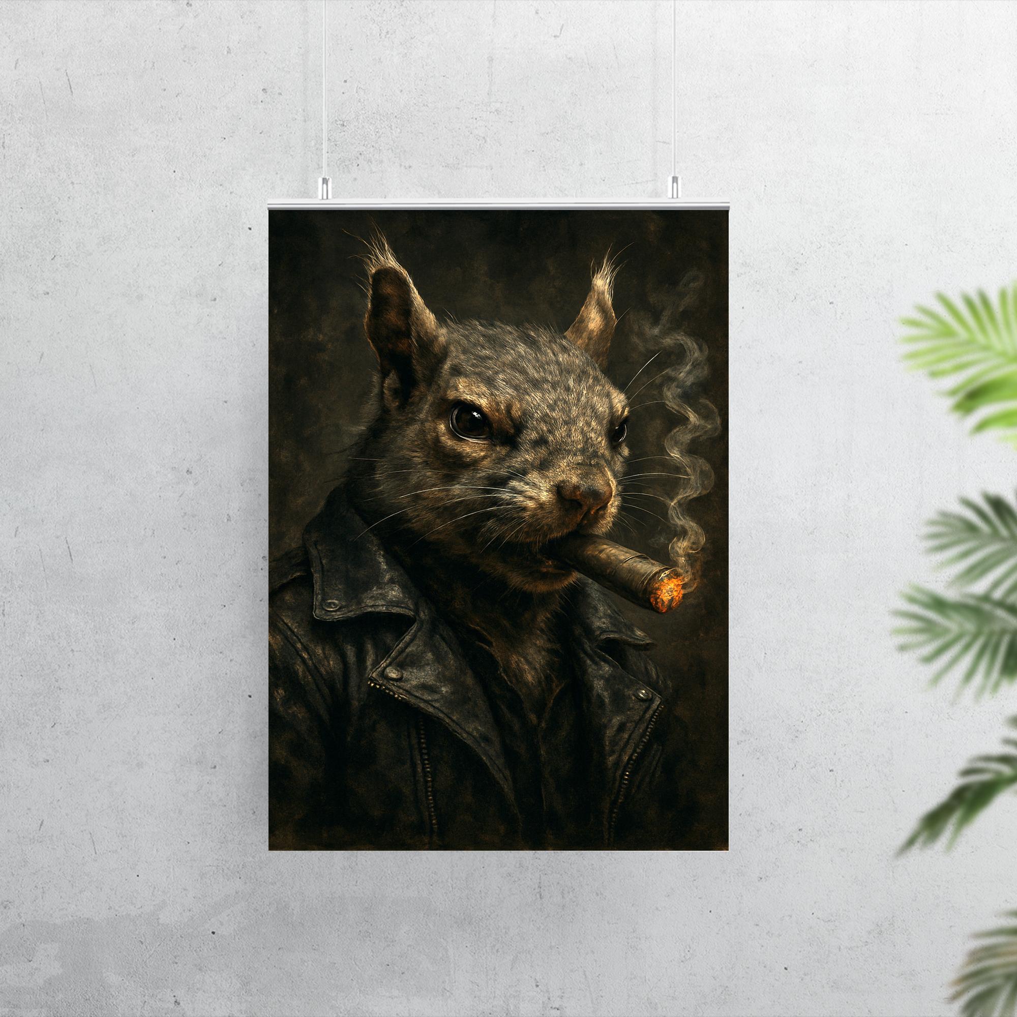Unleash a bold statement with this striking poster featuring a gangster squirrel confidently puffing on a cigar. Perfect for adding an unexpected edge and a touch of rebellious charm to any space, this artwork blends quirky attitude with cool sophistication. Elevate your room’s vibe with a piece that’s as unique and memorable as it is stylish.