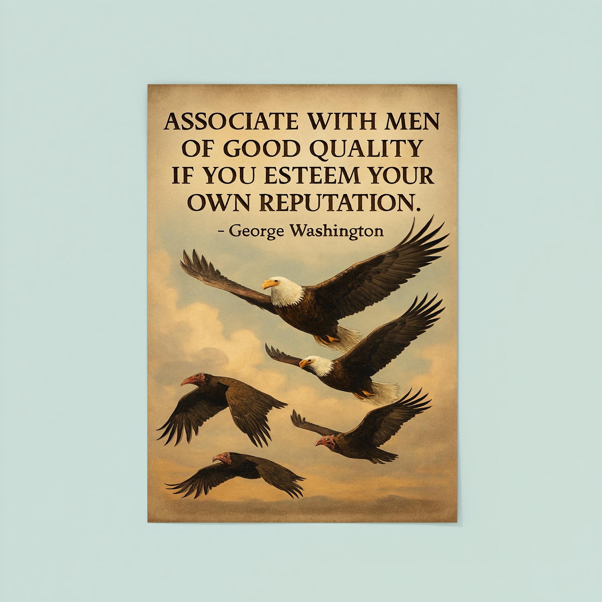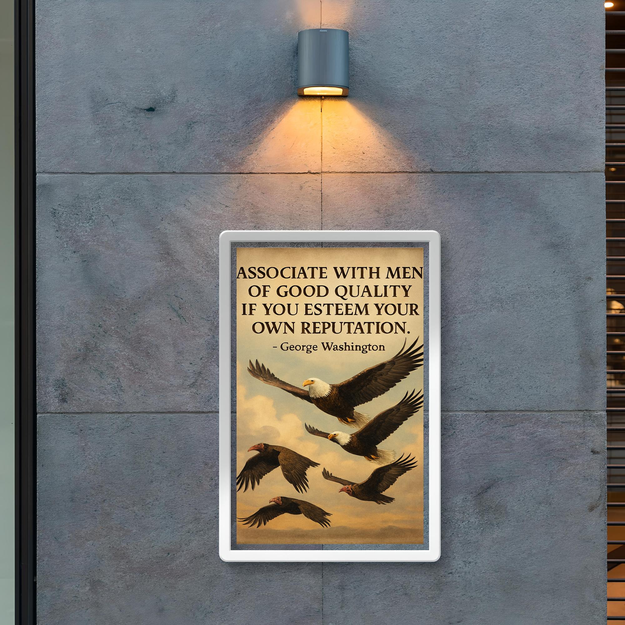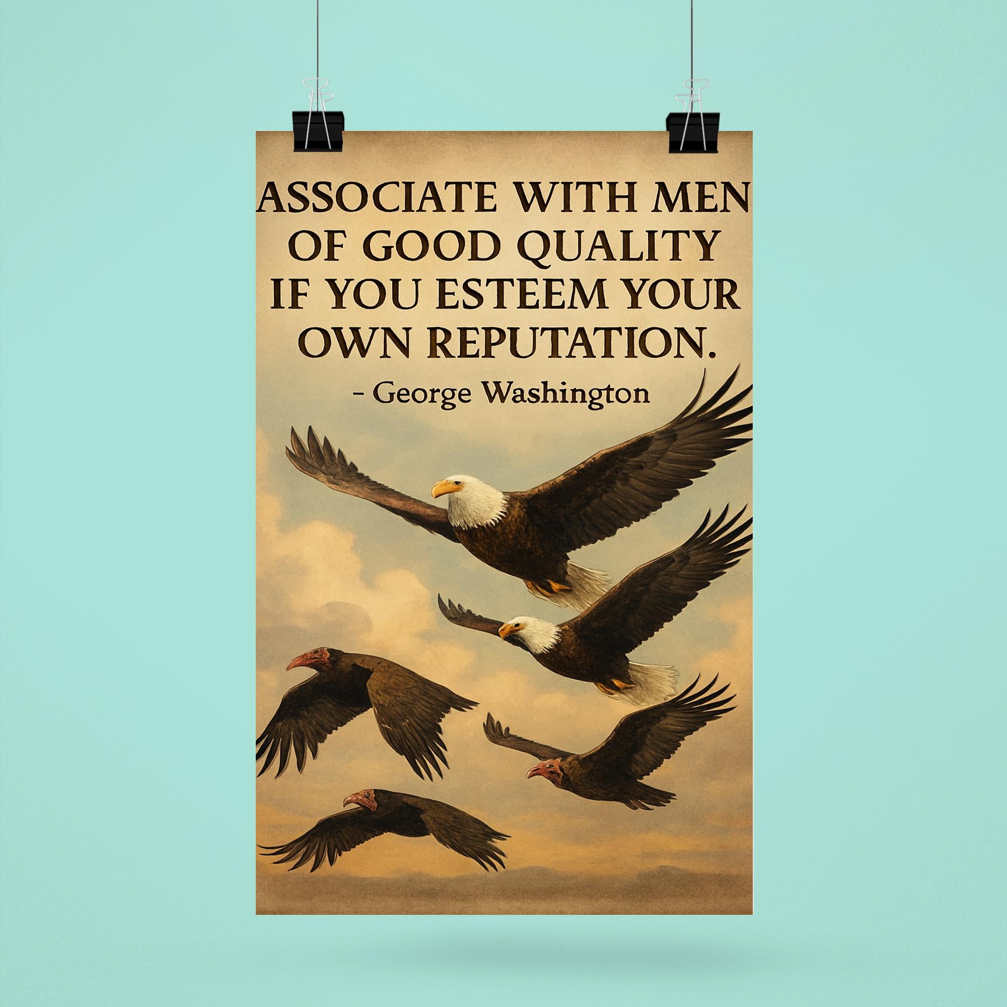 Elevate your space with this powerful poster featuring an inspiring George Washington quote, paired with the majestic imagery of a soaring eagle and noble birds. A timeless reminder of courage, leadership, and integrity, this piece brings motivation and dignity to any room. Perfect for those who value strength and honor in their daily surroundings.