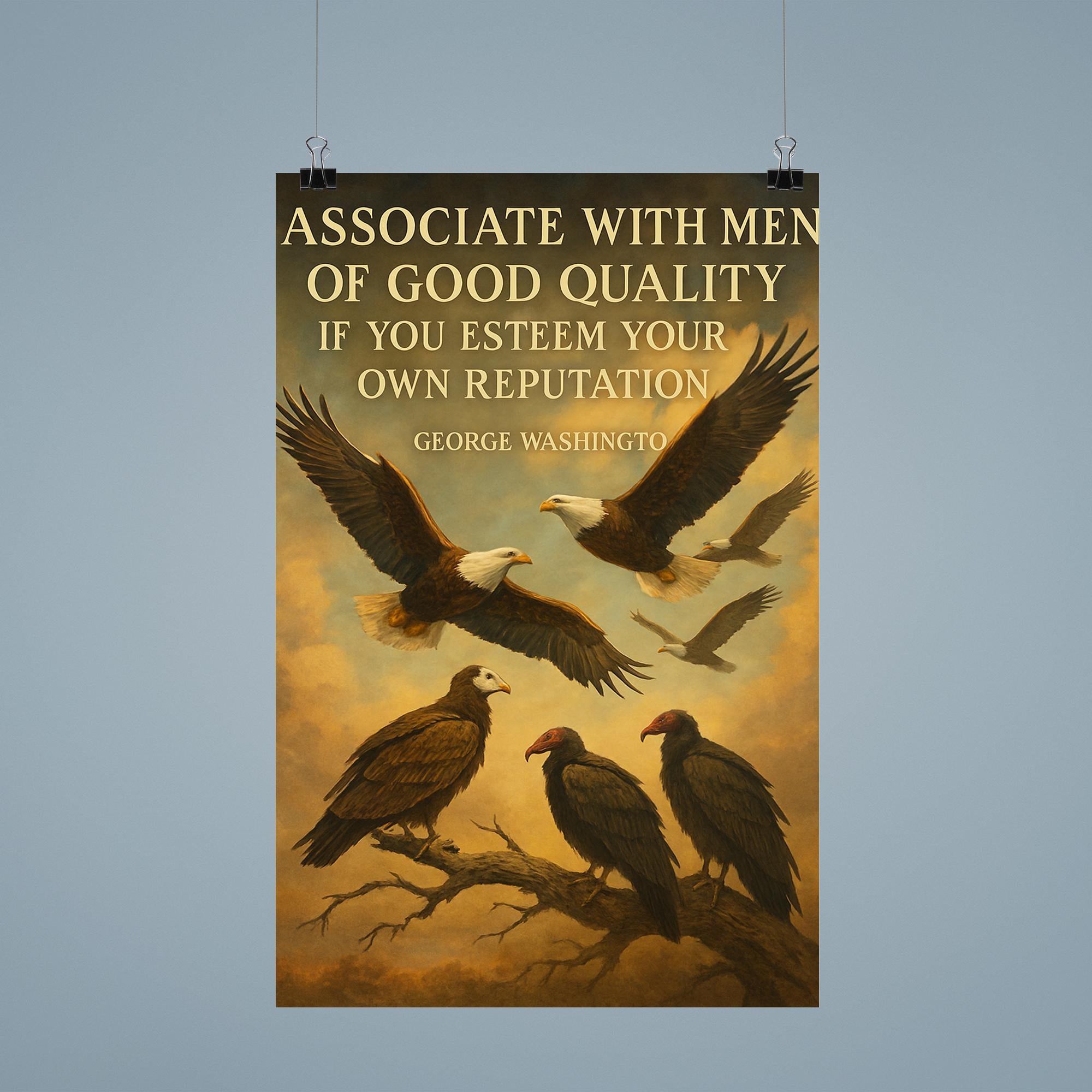 Elevate your space with this inspiring poster featuring a powerful George Washington quote about choosing noble paths. Emblazoned with an eagle—a timeless symbol of courage and freedom—this piece serves as a daily reminder to aspire higher and embrace noble virtues. Perfect for those who value strength, leadership, and inspiration in every glance.
