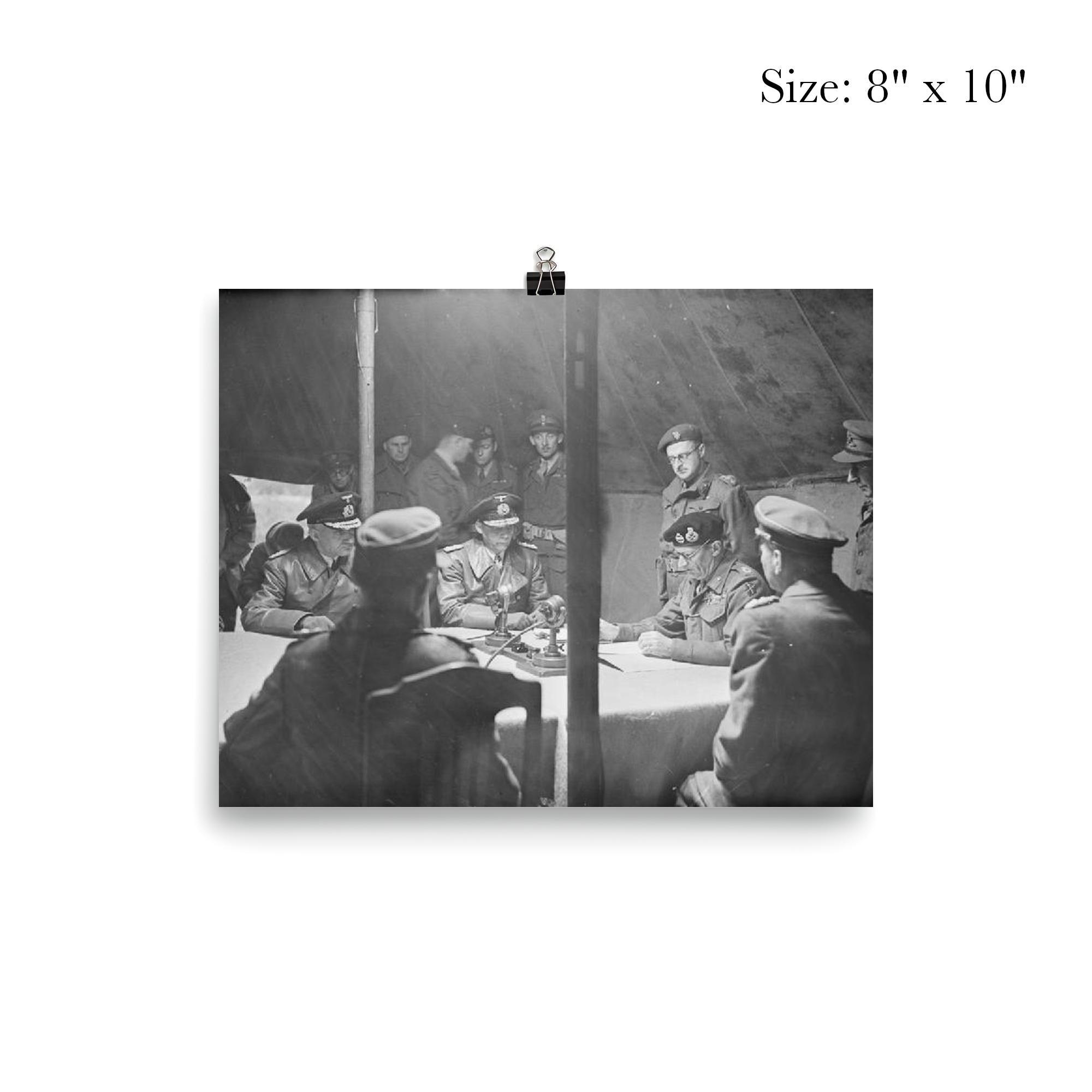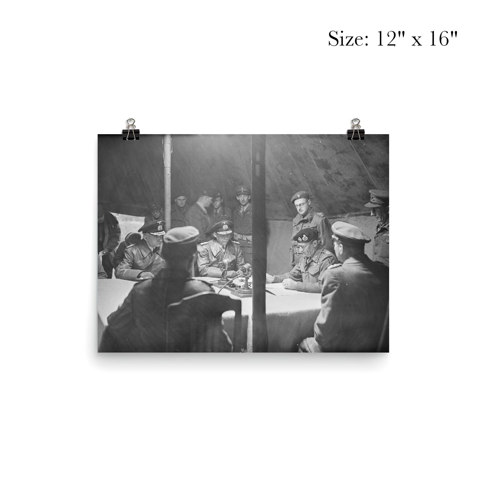 Commemorate a pivotal moment in history with this striking poster of the German Surrender at Luneburg Heath. Marking the end of conflict in Europe, this piece captures the gravity and significance of the event that shaped the modern world. A timeless addition for history enthusiasts, educators, or anyone inspired by the courage and resolution of a generation. Display it proudly as a conversation starter and a tribute to peace restored.
