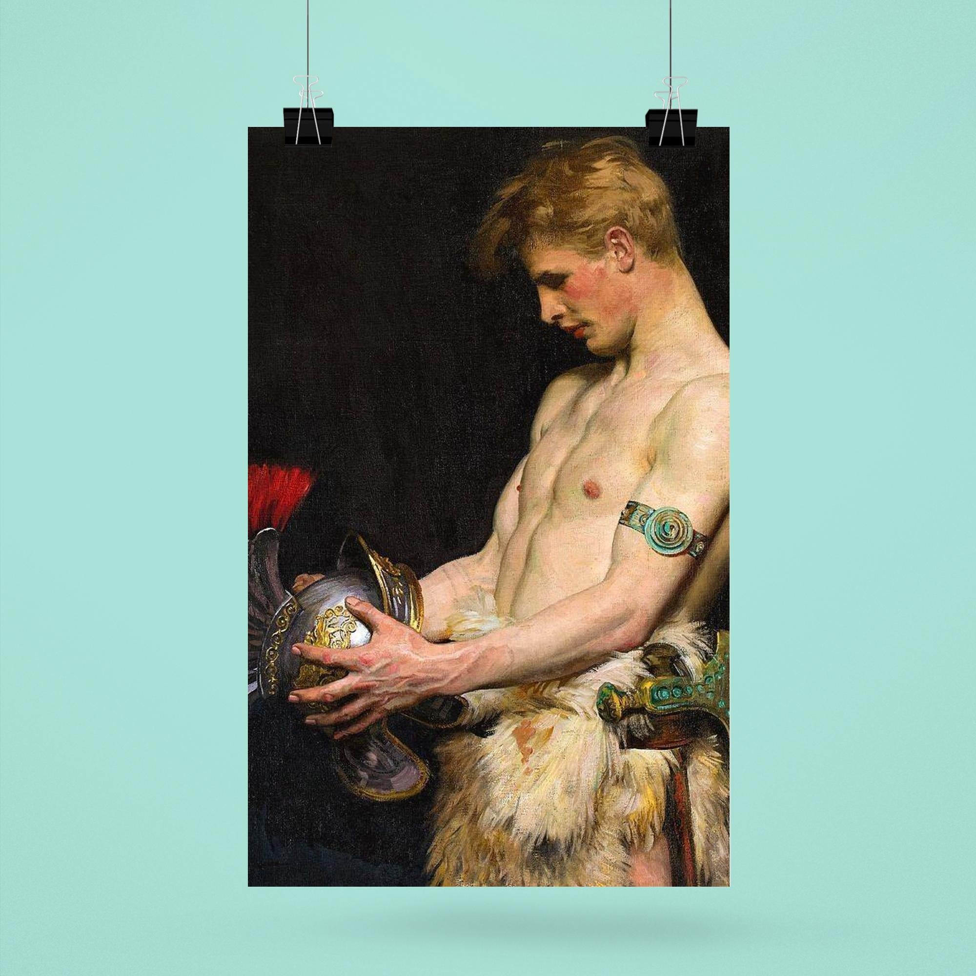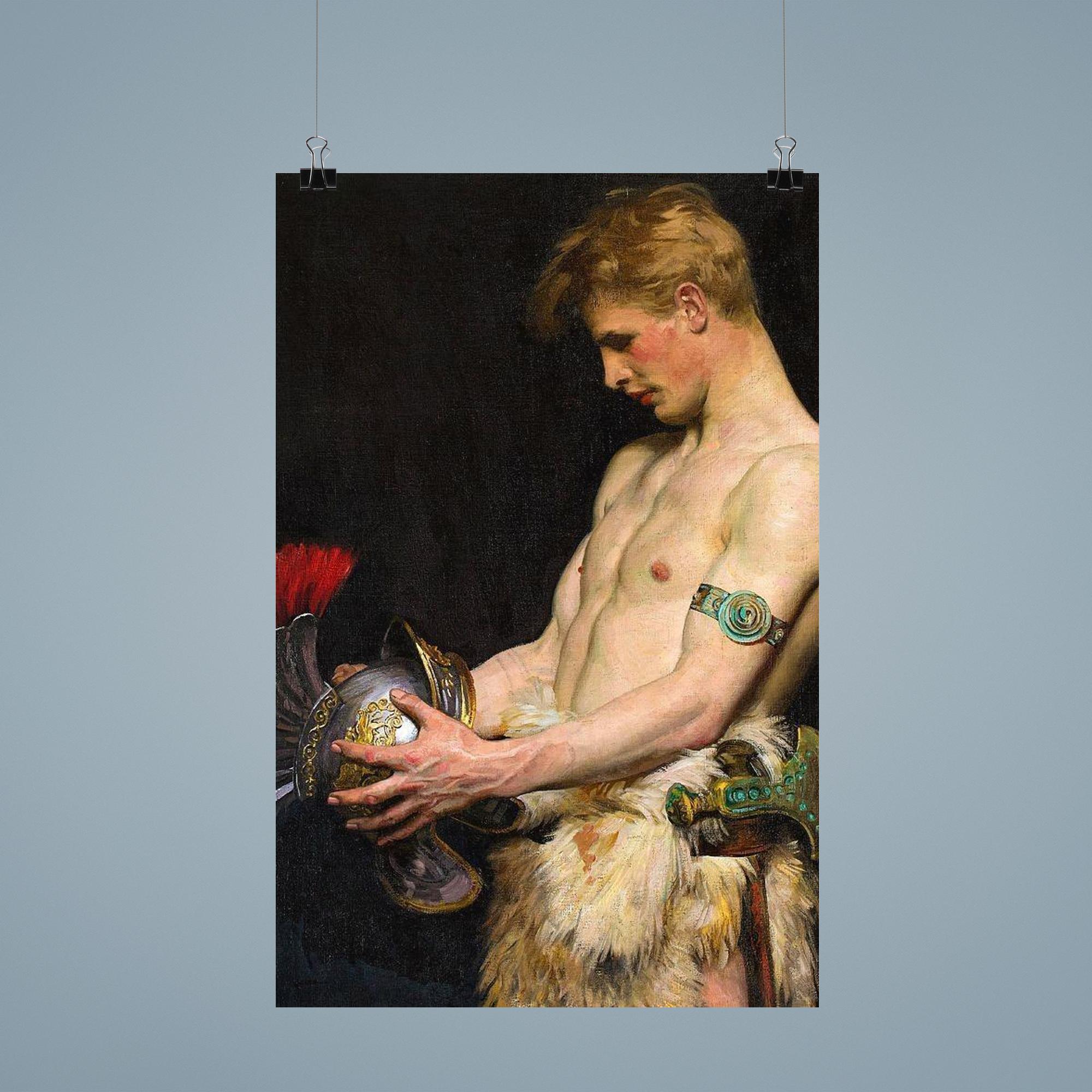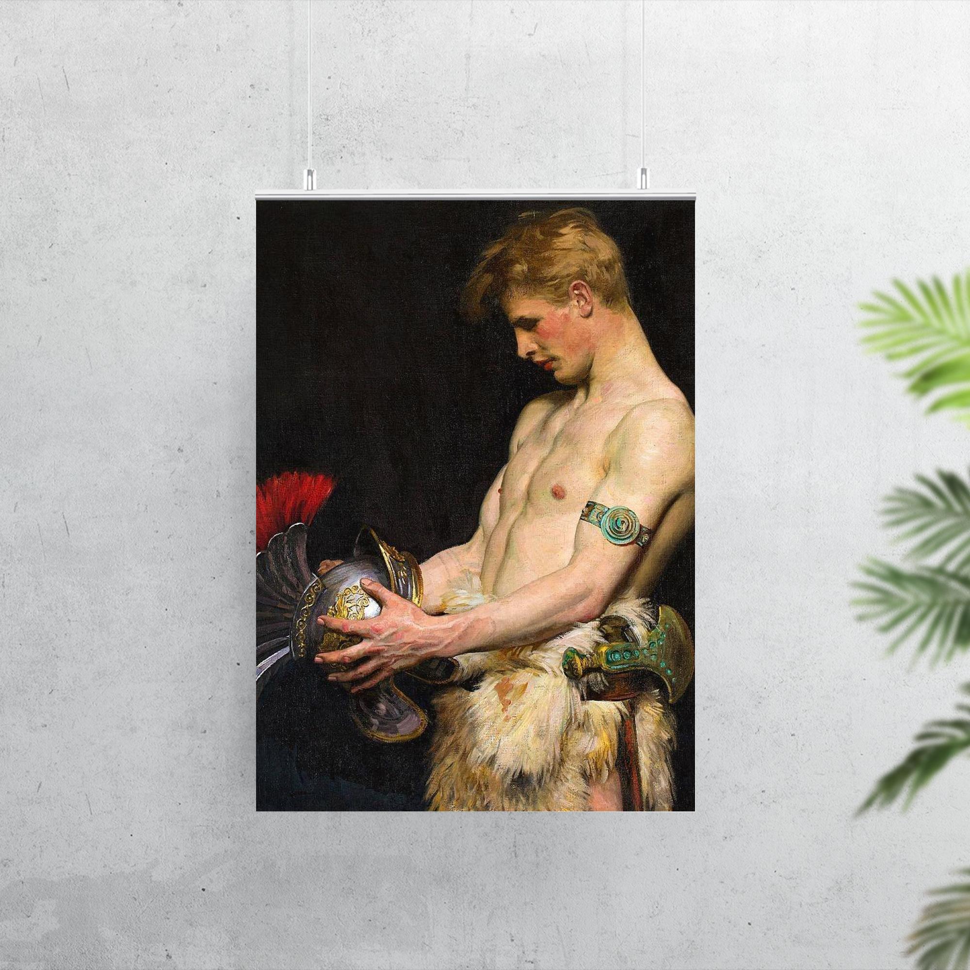 Germanic Warrior & Roman Helmet Poster Print by Osmar Schindler 1902 – Historic Wall Art for Vintage Decor
