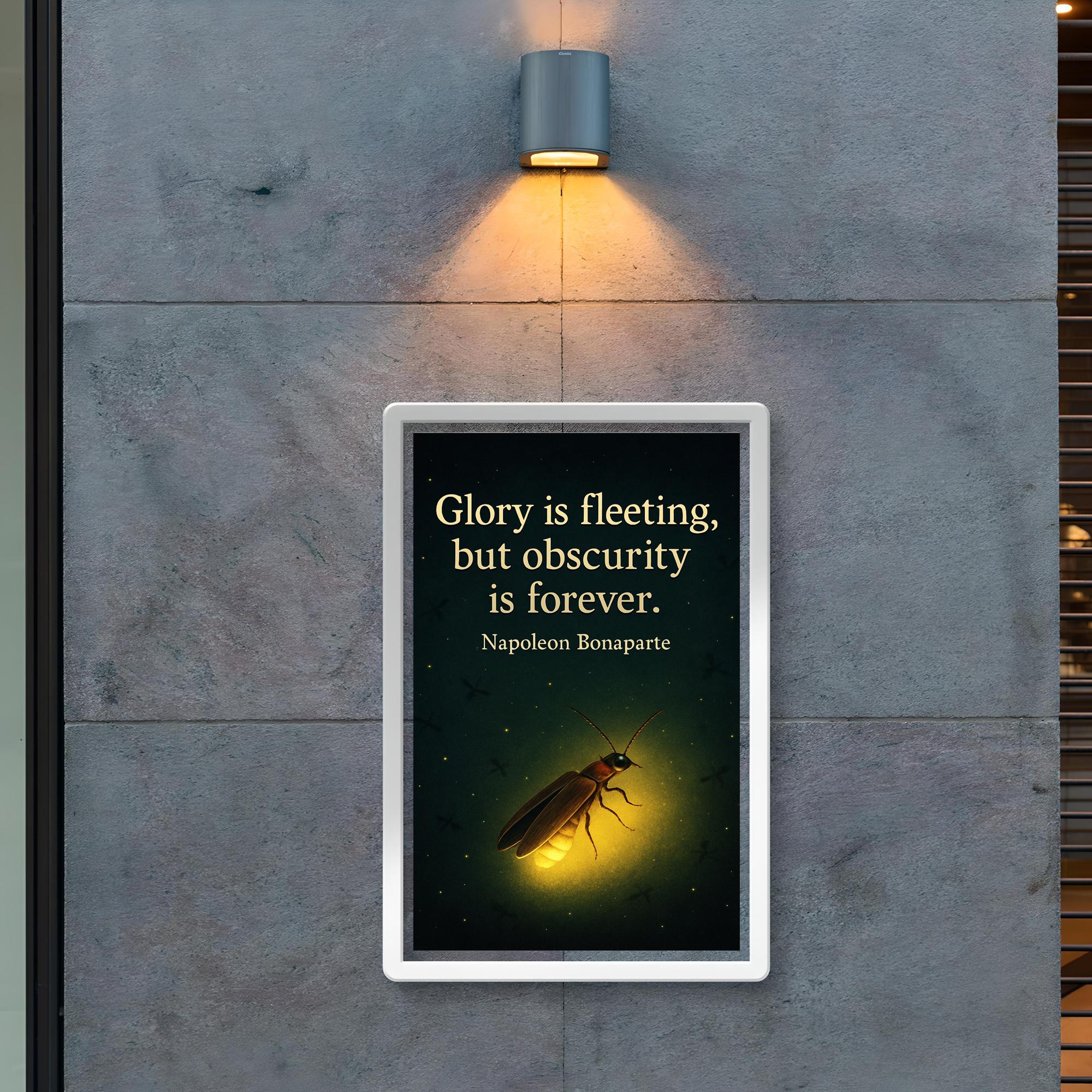 Elevate your space with this powerful poster bearing Napoleon Bonaparte’s unforgettable words: “Glory is fleeting but obscurity is forever.” A timeless reminder to seize the moment and leave a lasting legacy, this inspiring piece ignites determination and courage every day. Perfect for anyone driven to shine brightly against the odds.