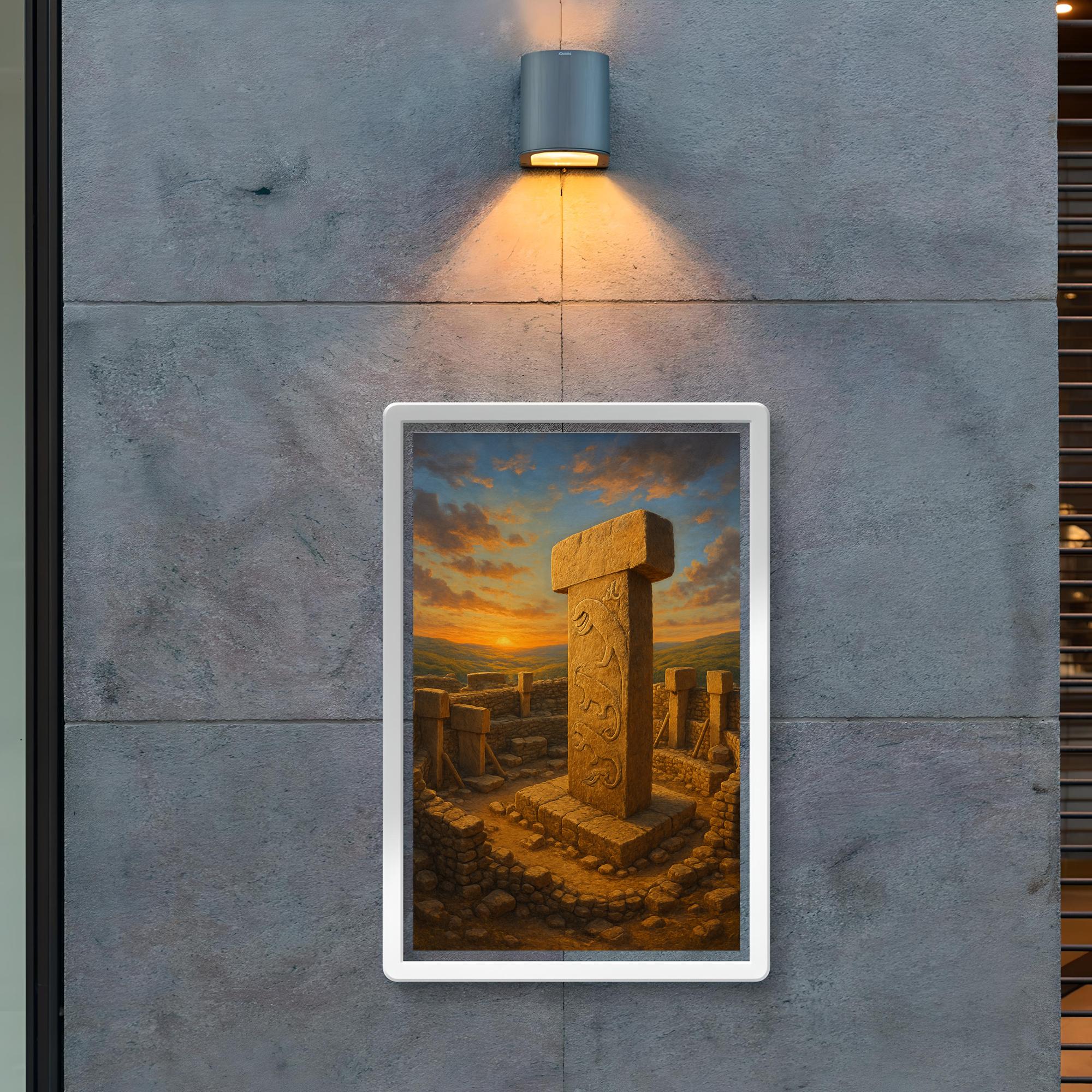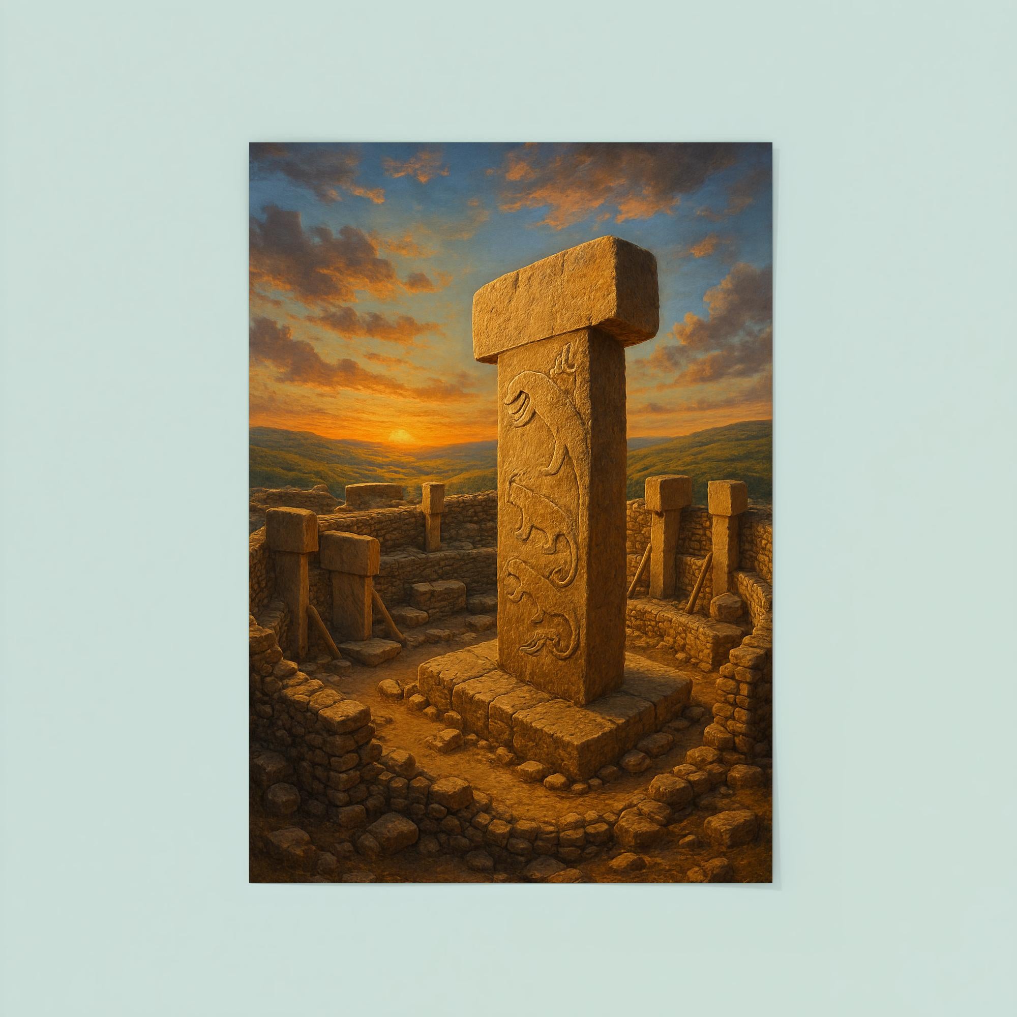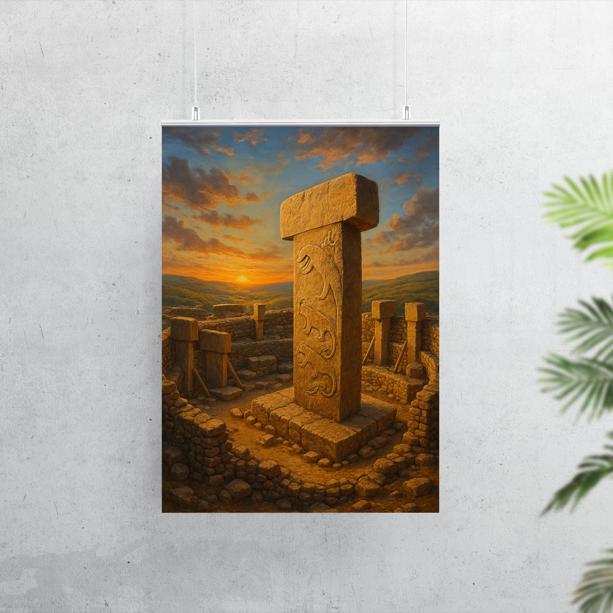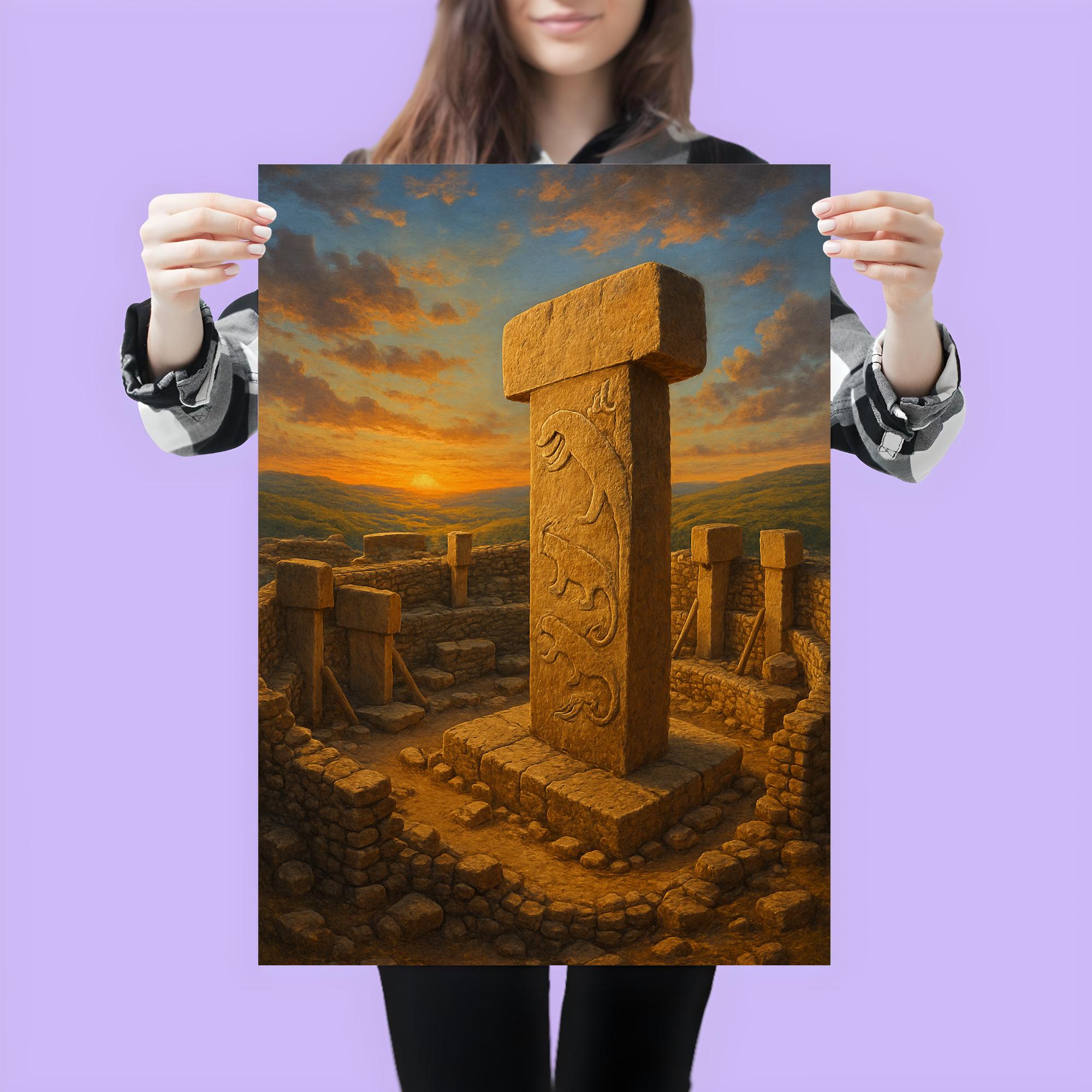 Transform your space with this striking poster of Göbekli Tepe, the world’s oldest known temple complex nestled in Turkey. Showcasing the timeless allure of this archaeological wonder, the poster invites you to connect with a profound chapter of human history and prehistoric ingenuity. Perfect for history enthusiasts and art lovers alike, it’s a captivating tribute to ancient mystery and enduring legacy.