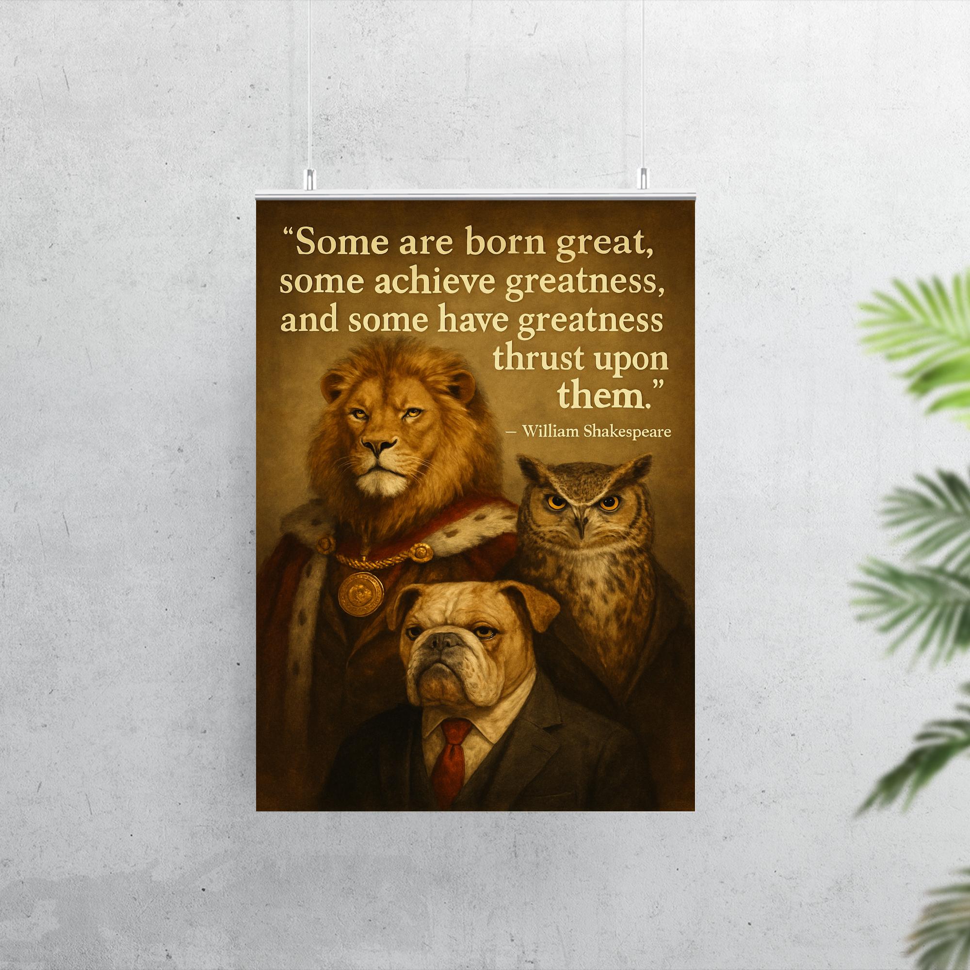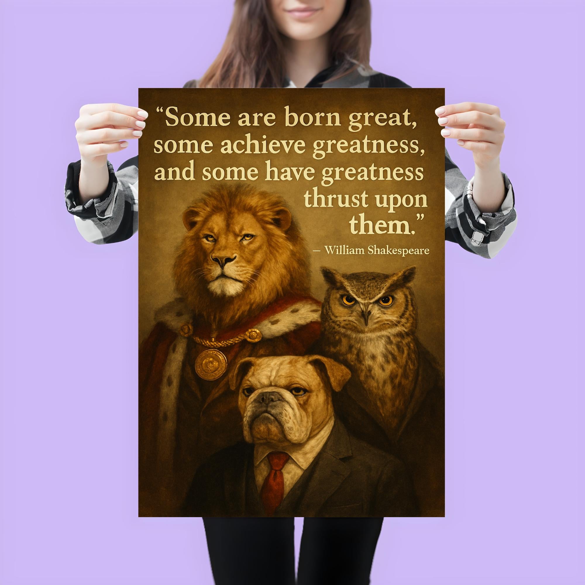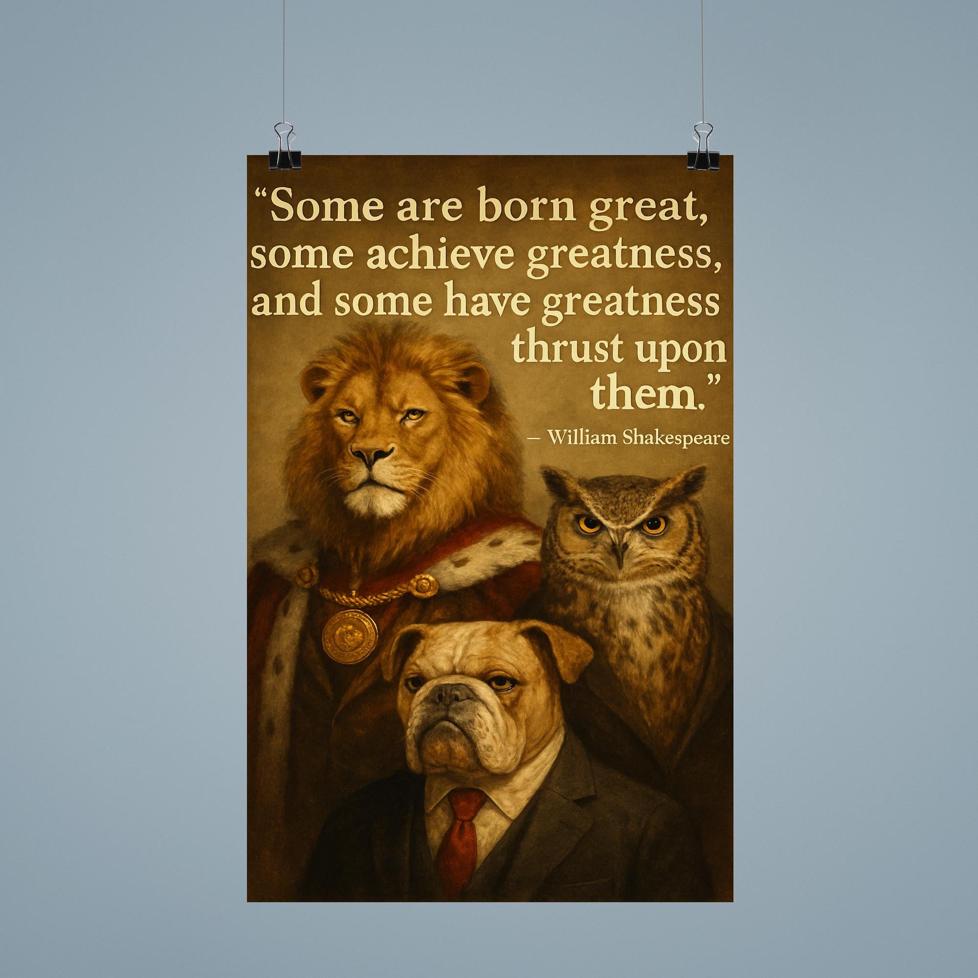 Elevate your space with timeless inspiration through this powerful poster featuring William Shakespeare’s quote on greatness. Let the words of one of history’s most celebrated writers ignite your ambition and remind you that true greatness is within reach. Perfect for your office, study, or creative space, this poster serves as a daily prompt to pursue excellence with courage and confidence.