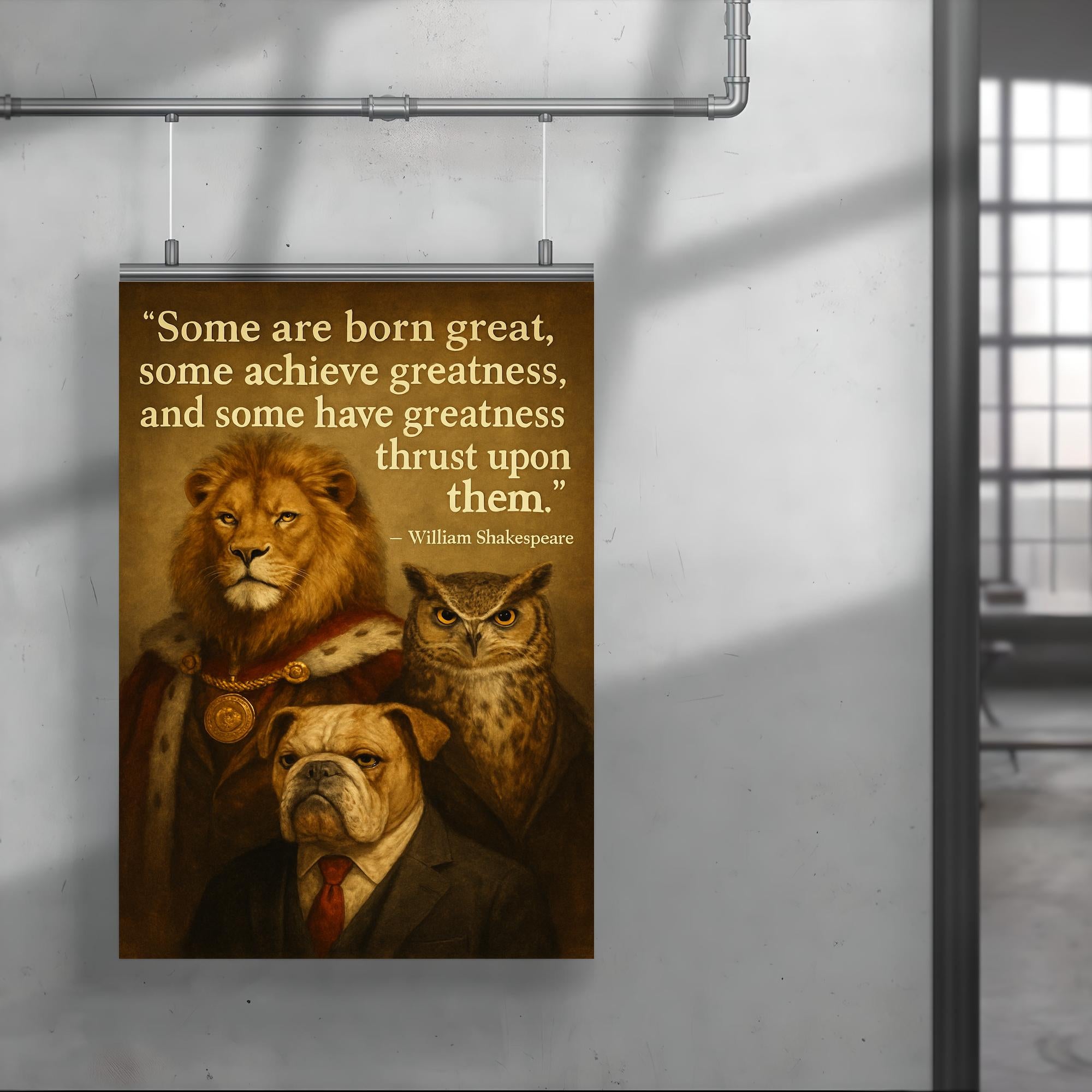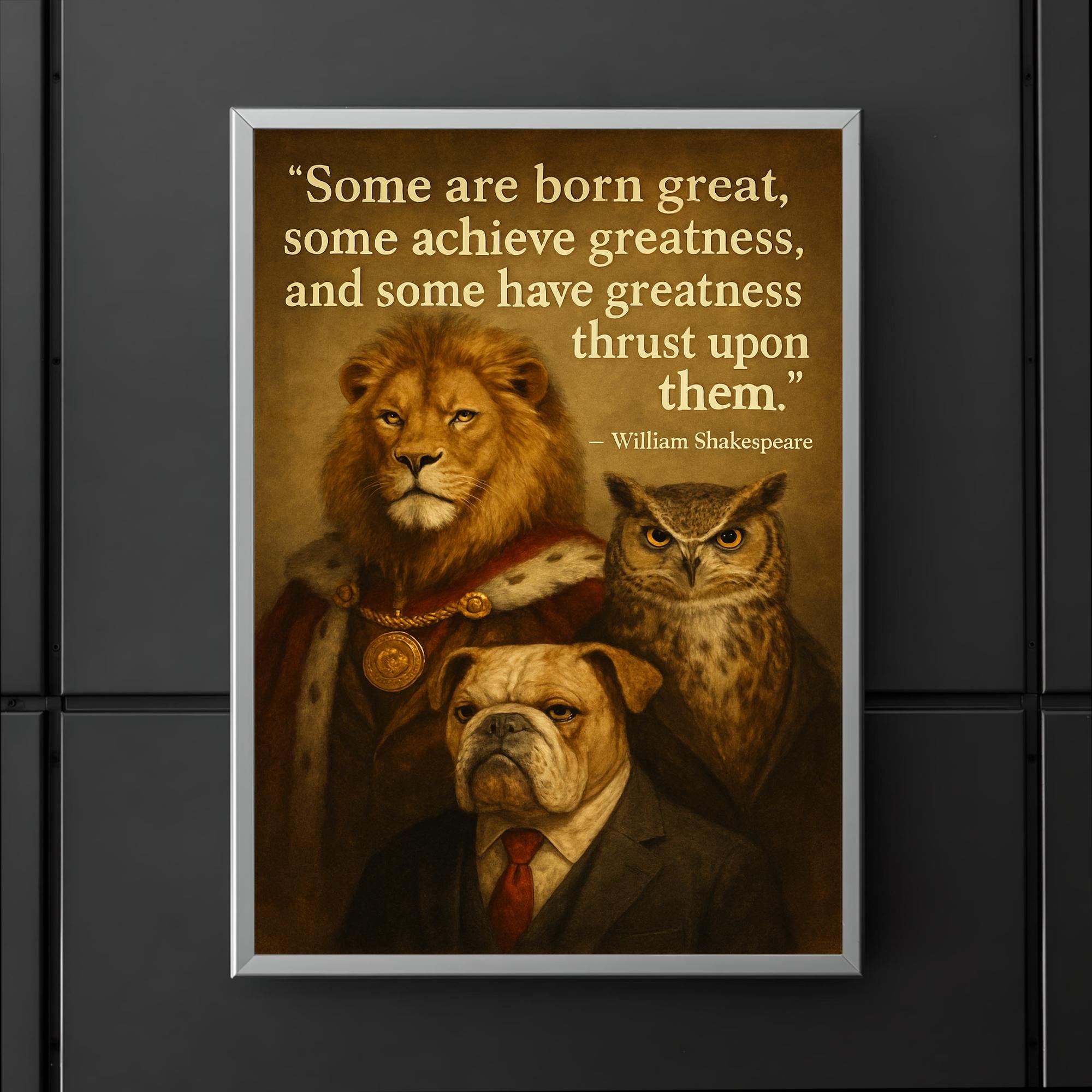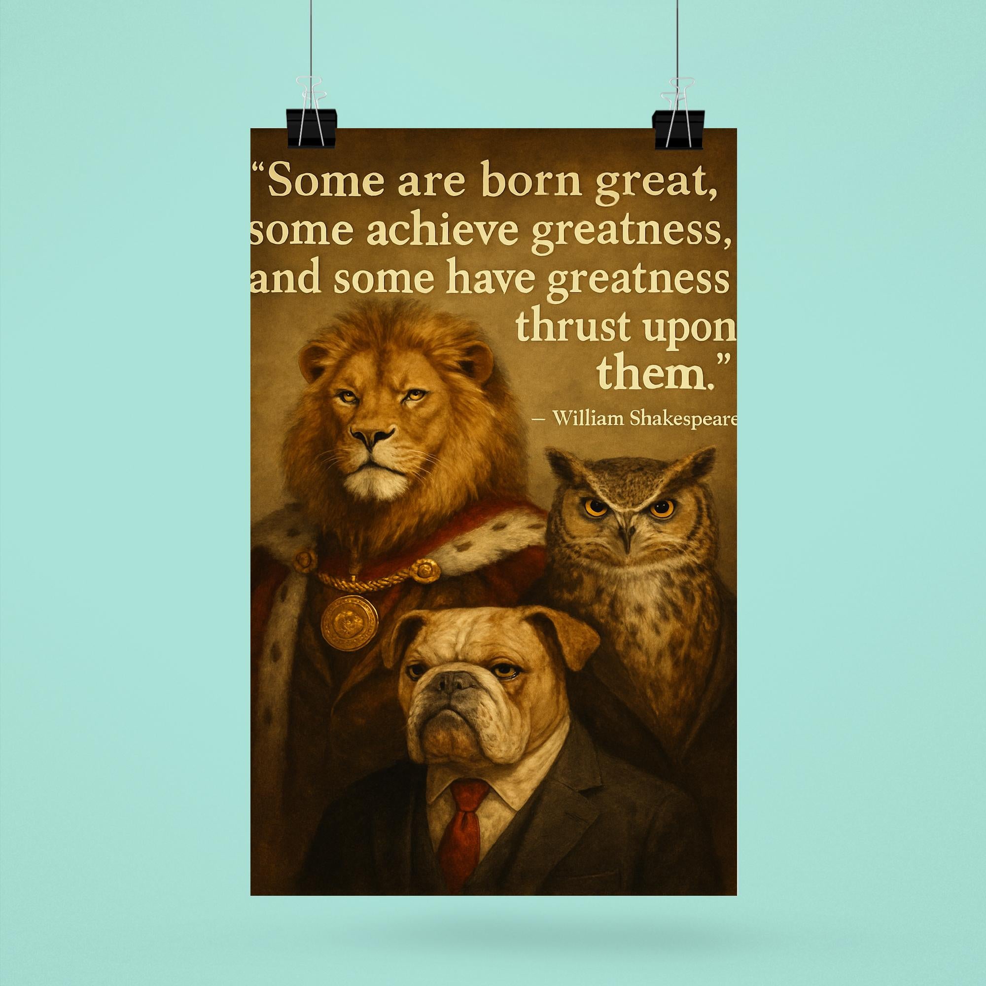 Elevate your space with timeless inspiration through this powerful poster featuring William Shakespeare’s quote on greatness. Let the words of one of history’s most celebrated writers ignite your ambition and remind you that true greatness is within reach. Perfect for your office, study, or creative space, this poster serves as a daily prompt to pursue excellence with courage and confidence.