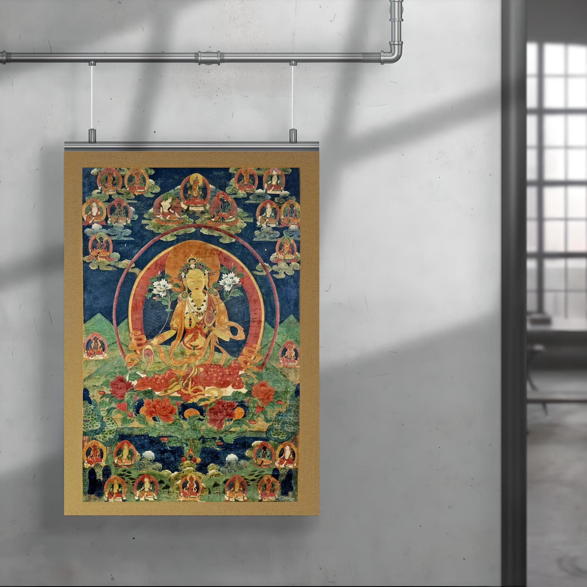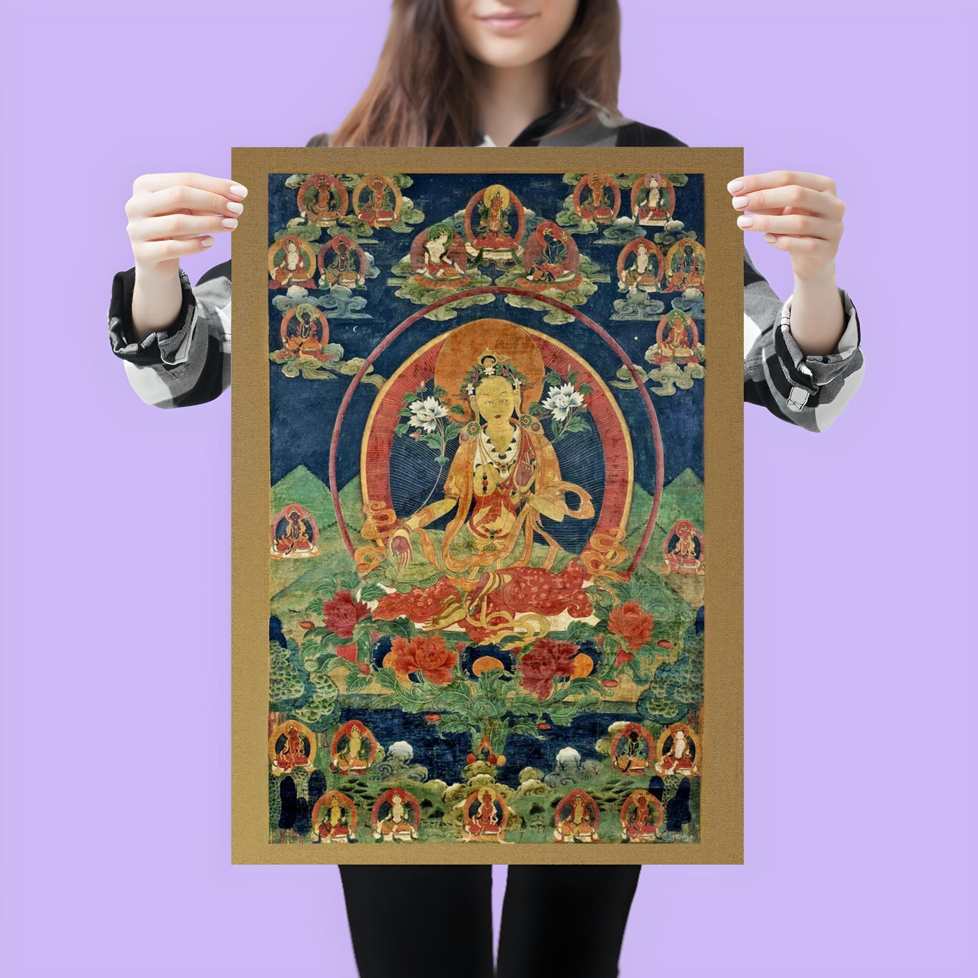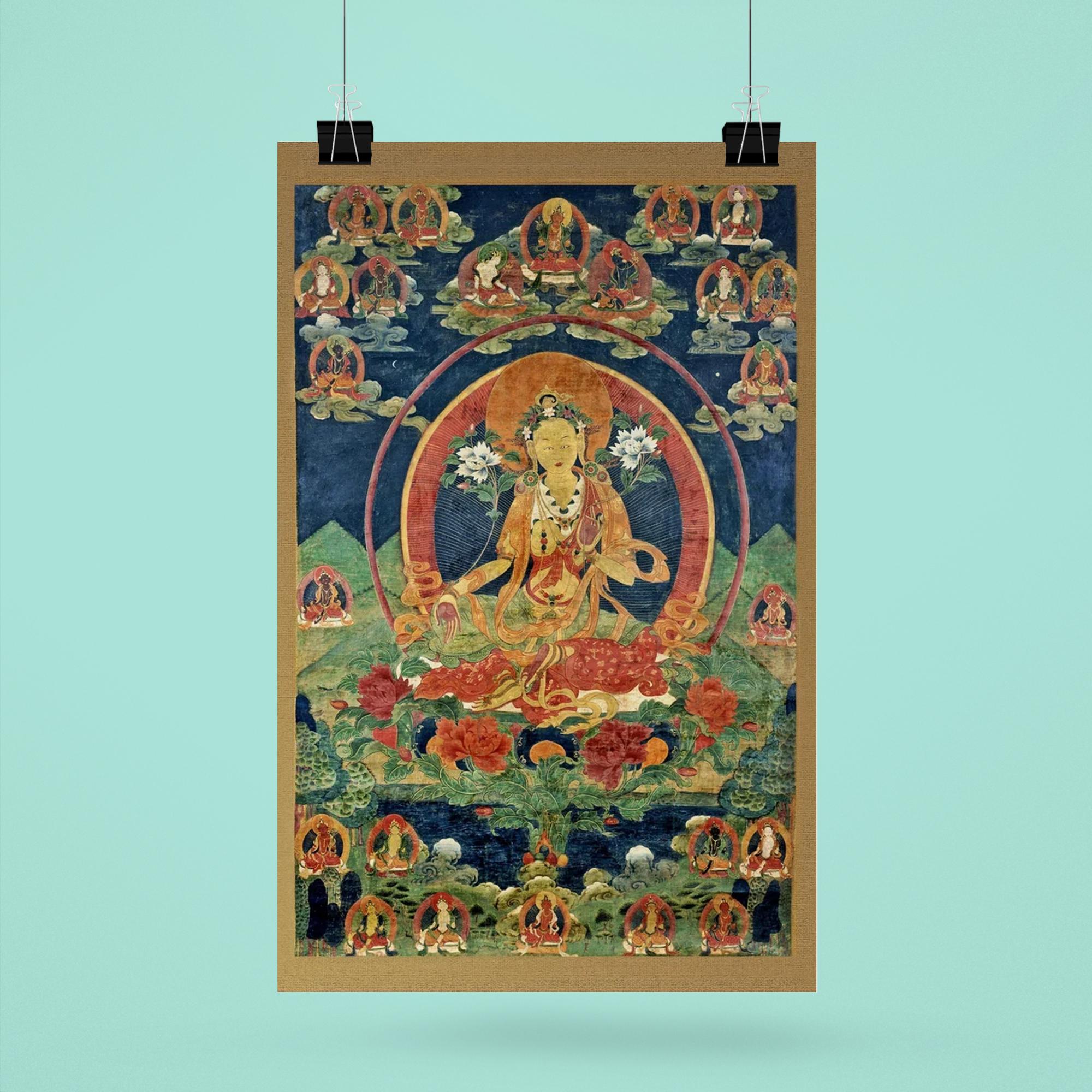 Immerse yourself in serene spiritual energy with this exquisite Green Tara Khadiravani Tibetan Thangka poster. Perfect for meditation spaces, it evokes a profound sense of compassion and protection, inviting calm and mindful presence into your environment. Elevate your practice and surroundings with this timeless symbol of Buddhist devotion.