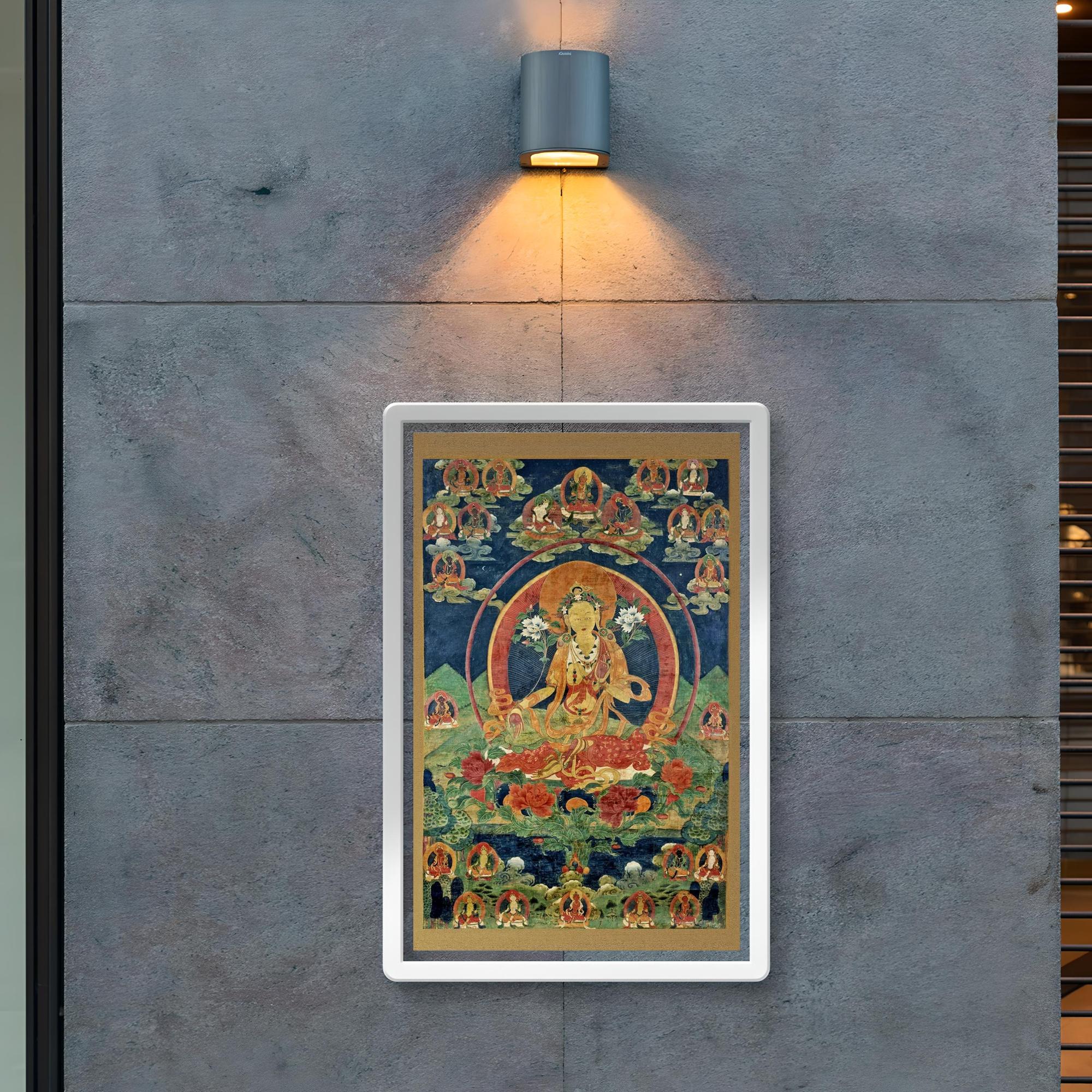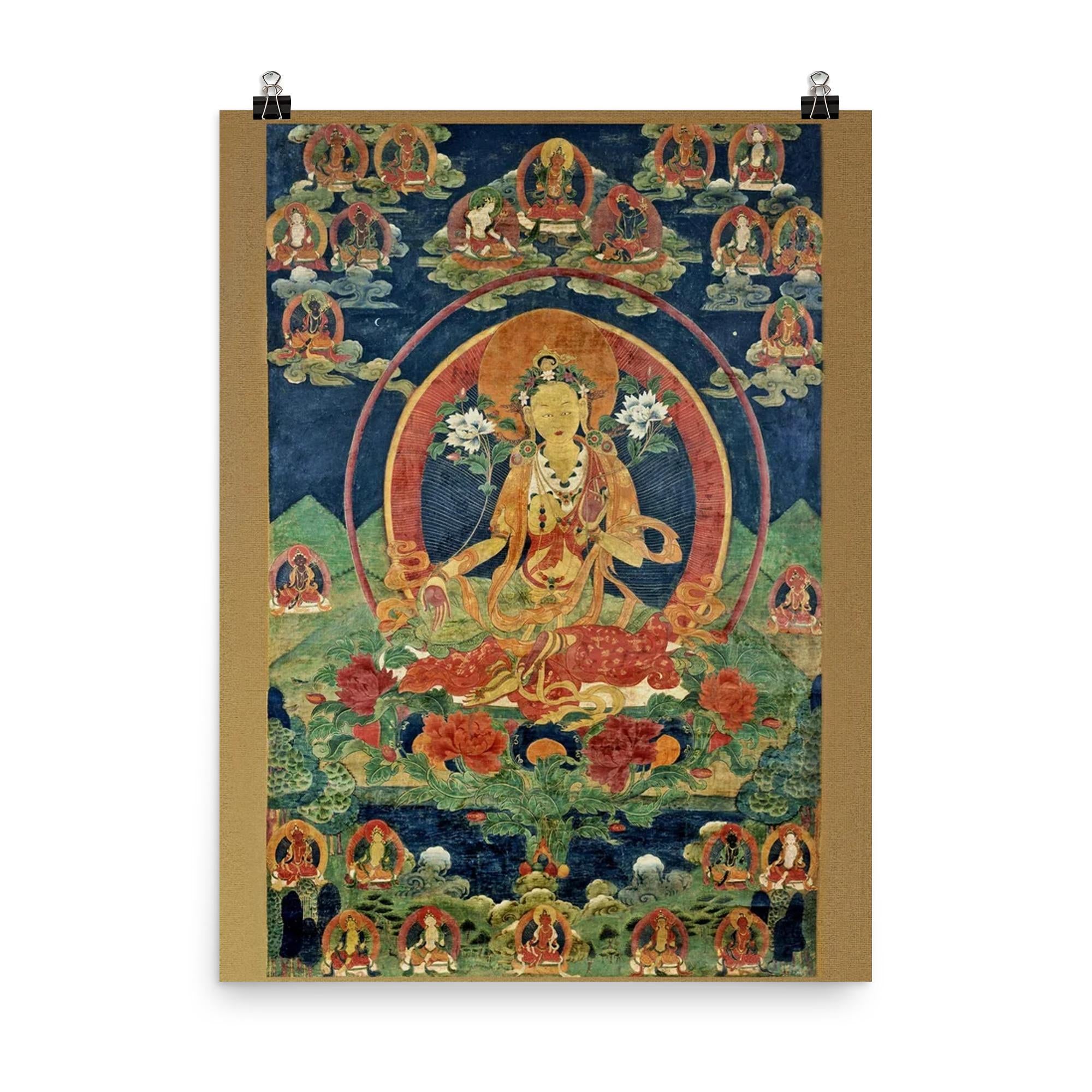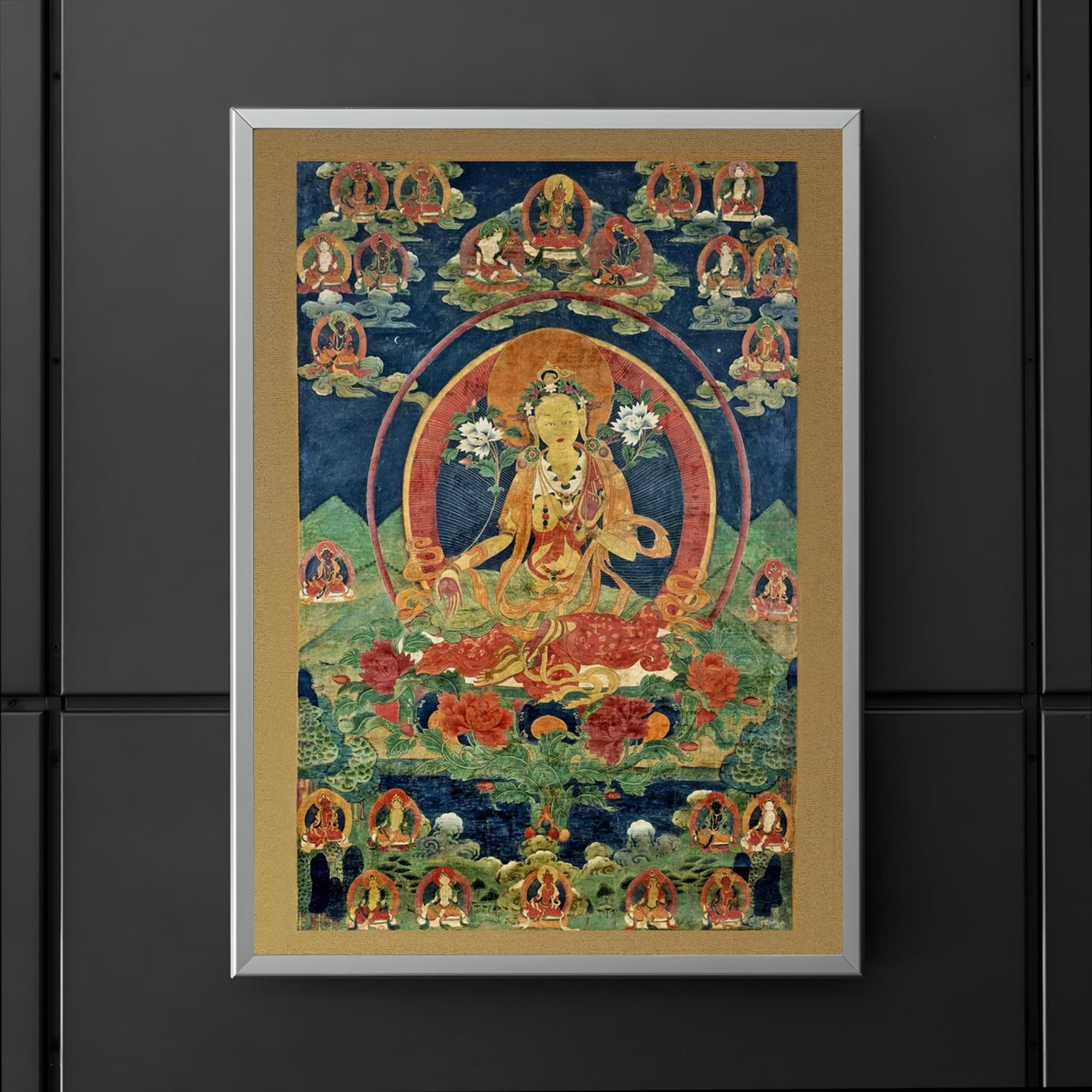 Immerse yourself in serene spiritual energy with this exquisite Green Tara Khadiravani Tibetan Thangka poster. Perfect for meditation spaces, it evokes a profound sense of compassion and protection, inviting calm and mindful presence into your environment. Elevate your practice and surroundings with this timeless symbol of Buddhist devotion.