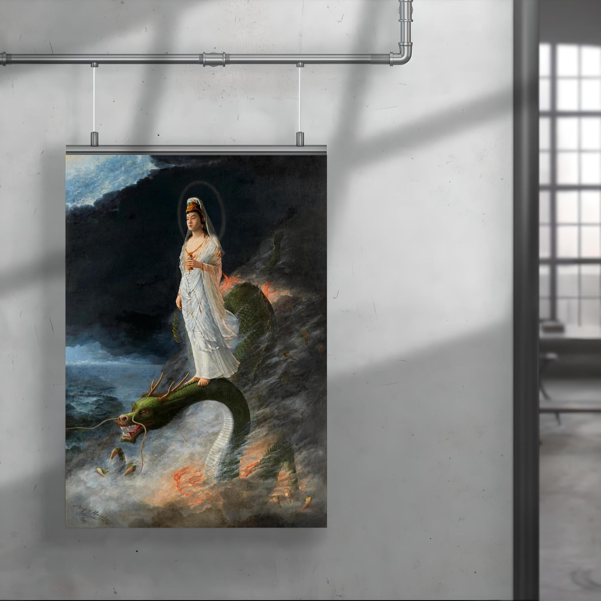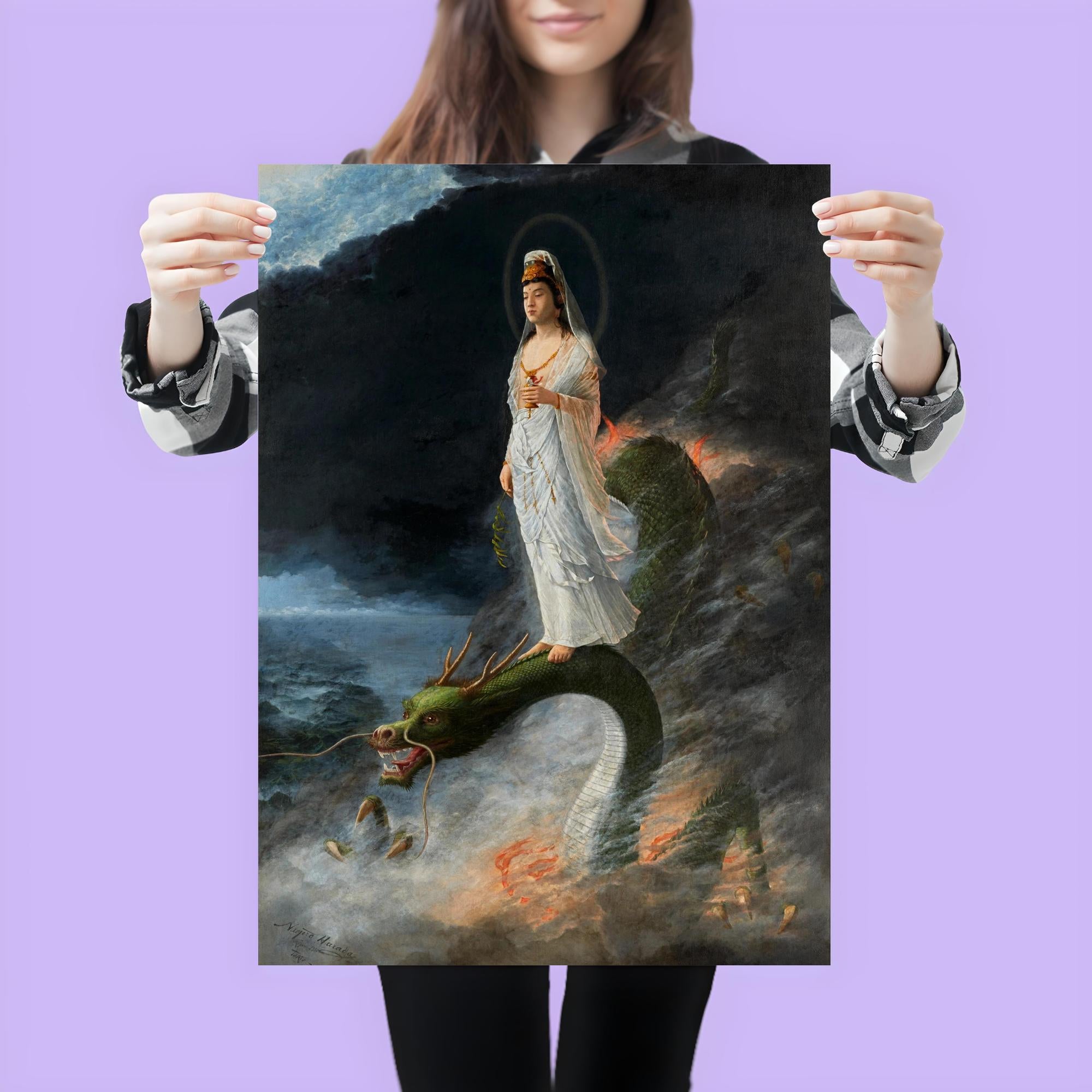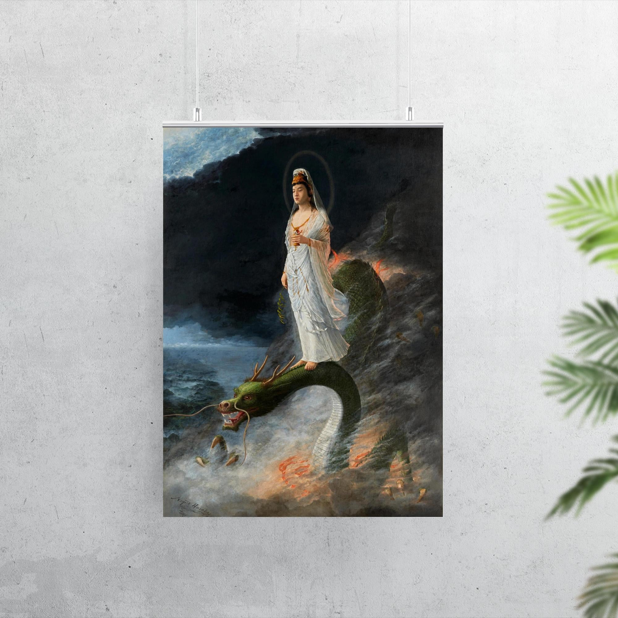 Experience the timeless elegance of Harada Naojiro’s 1890 masterpiece, "Guanyin Riding the Dragon." This exquisite poster captures the serene power and grace of Guanyin, embodying compassion and strength in a moment that transcends time. A stunning addition to any space, it invites contemplation and awe with every glance.