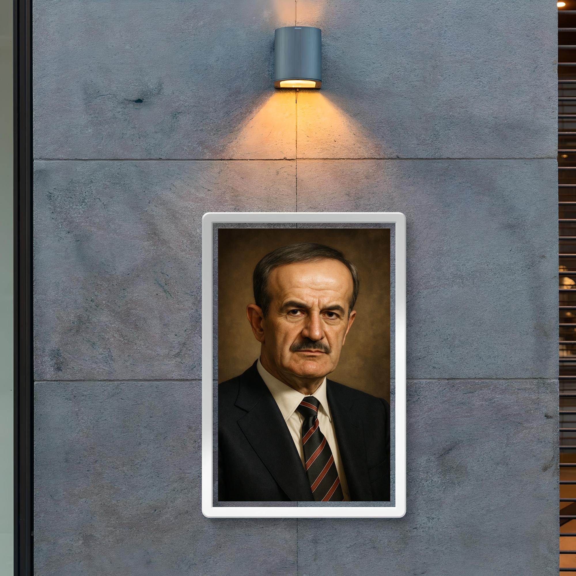 Celebrate a powerful chapter of history with this striking portrait of Hafez al Assad. Capturing the commanding presence of one of the most influential leaders of the 20th century, this poster makes a bold statement for any space. Whether displayed in an office, study, or gallery, it invites reflection on a complex legacy with timeless impact.