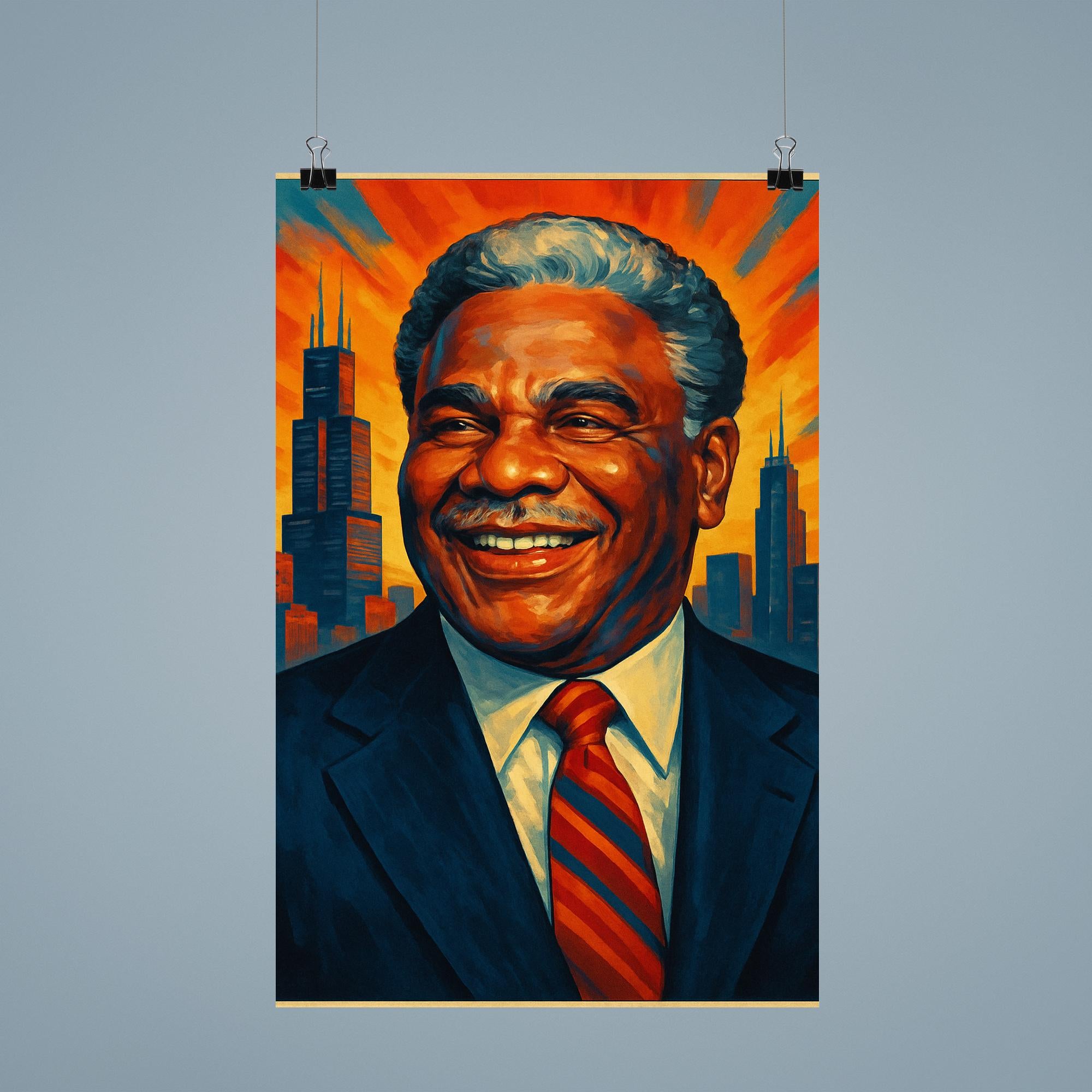 Celebrate the legacy of Chicago’s first Black mayor with this stunning Harold Washington poster. A powerful tribute to leadership, resilience, and progress, it’s the perfect statement piece for anyone inspired by history and bold change. Elevate your space with a symbol of courage and vision that continues to inspire generations.