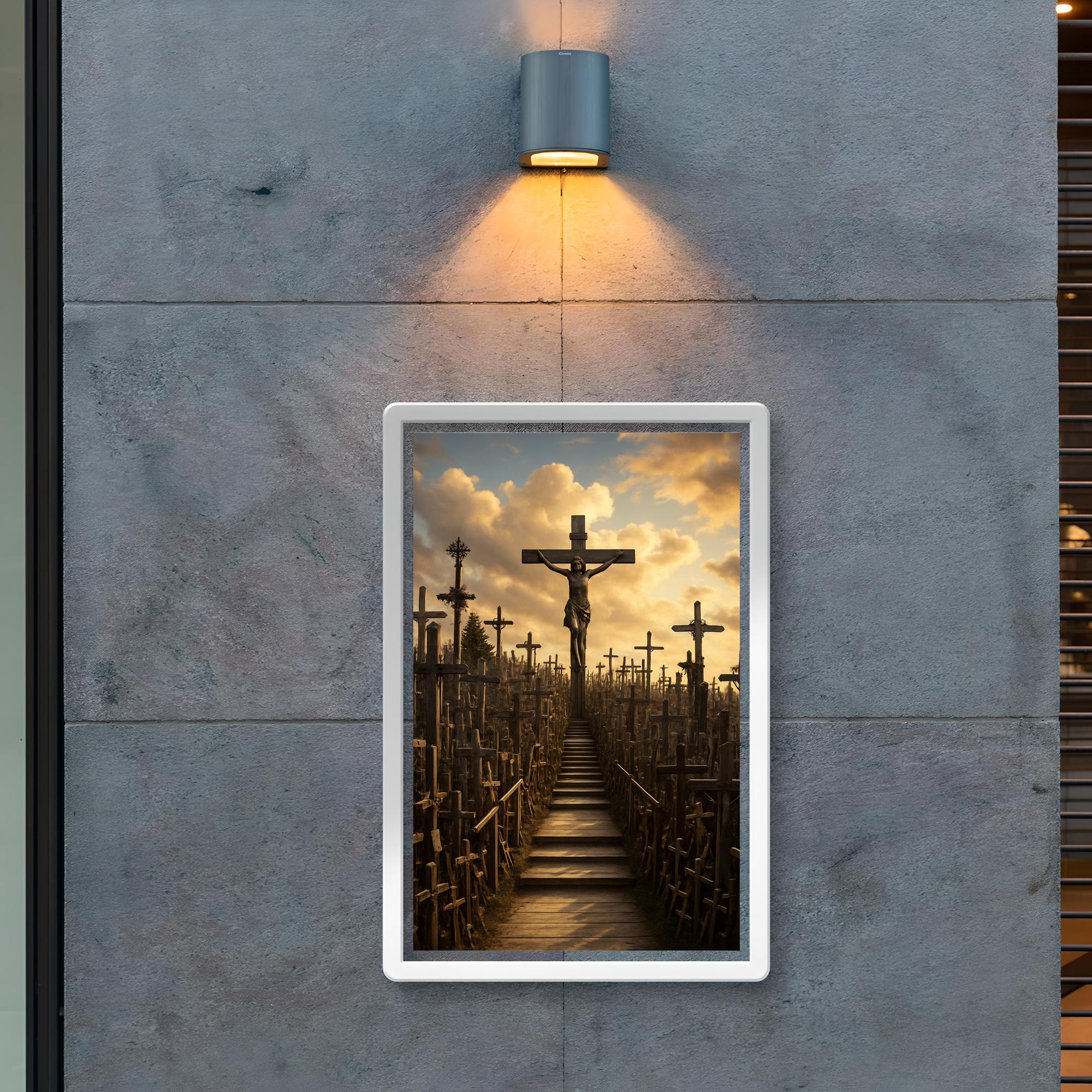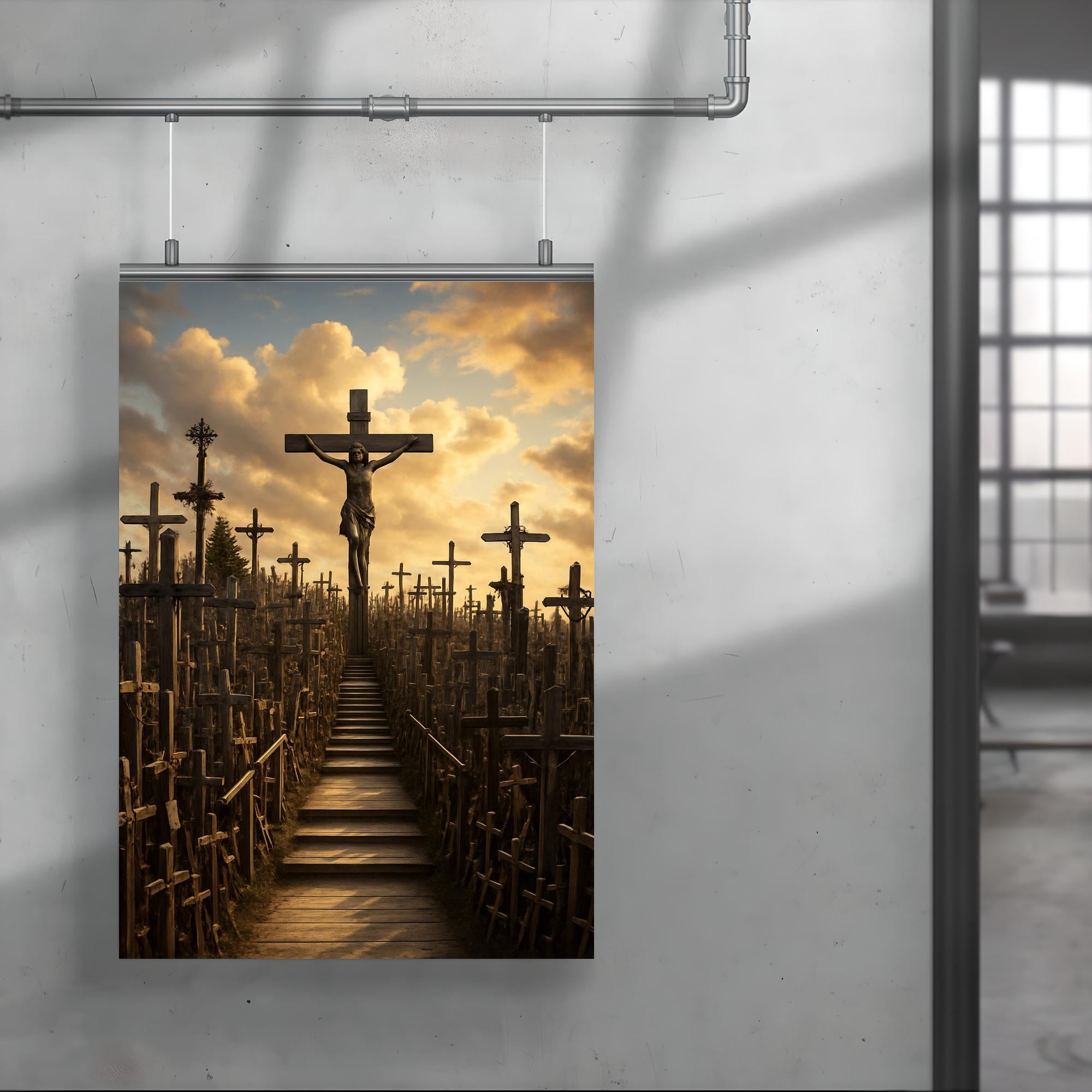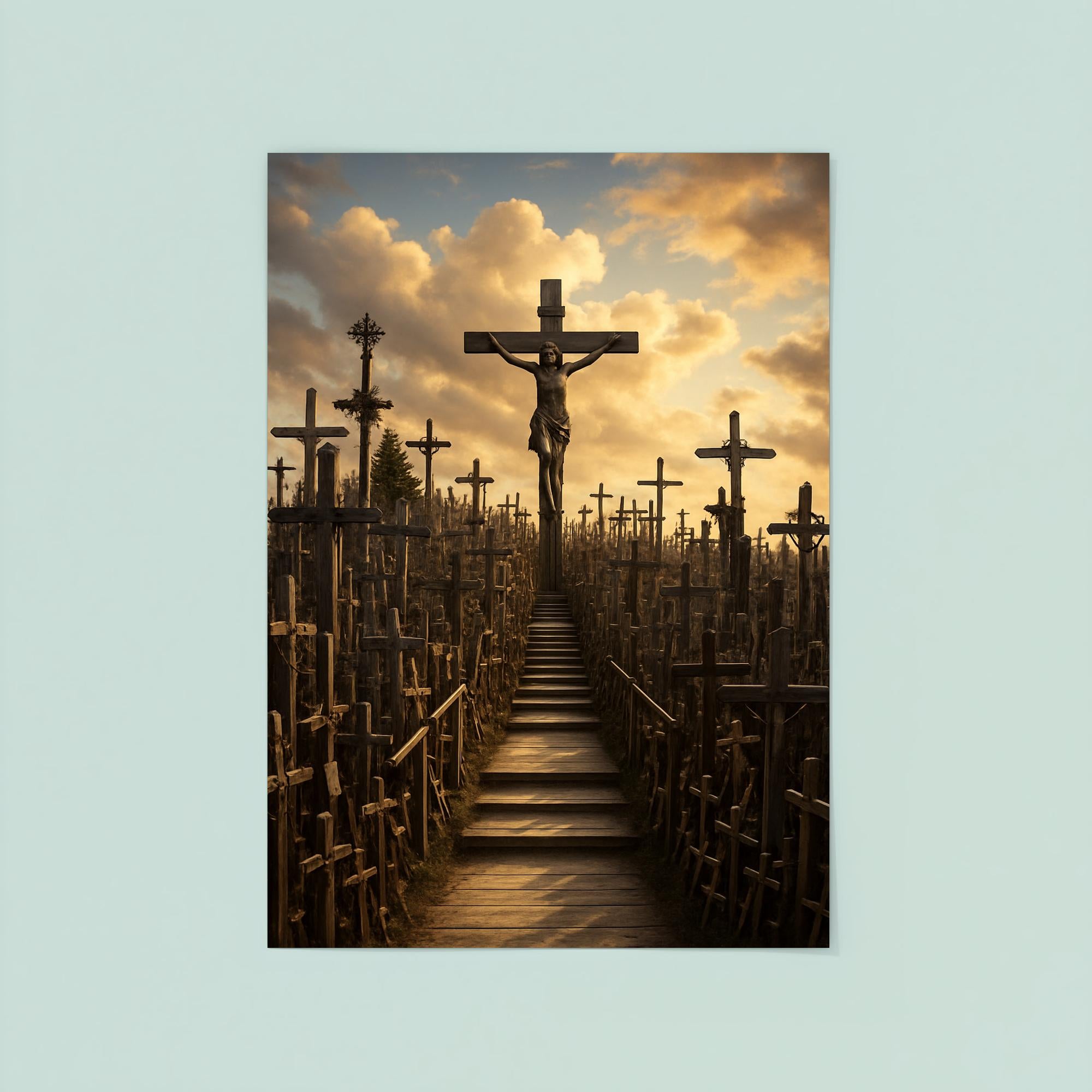 Bring a piece of profound history and quiet resilience into your space with this stunning poster of the Hill of Crosses in Lithuania. Each cross tells a story of faith and hope, creating a powerful, moving tableau that invites reflection and admiration. Perfect for adding a touch of spiritual depth and cultural heritage to any room.