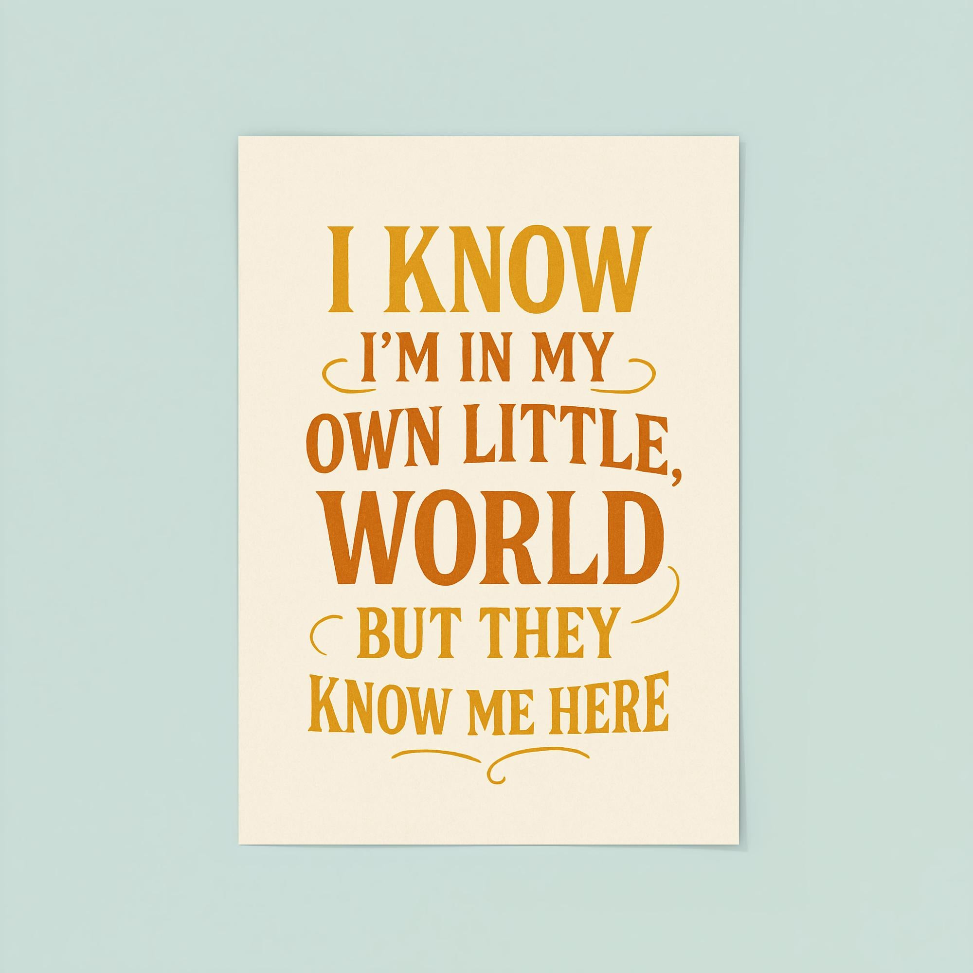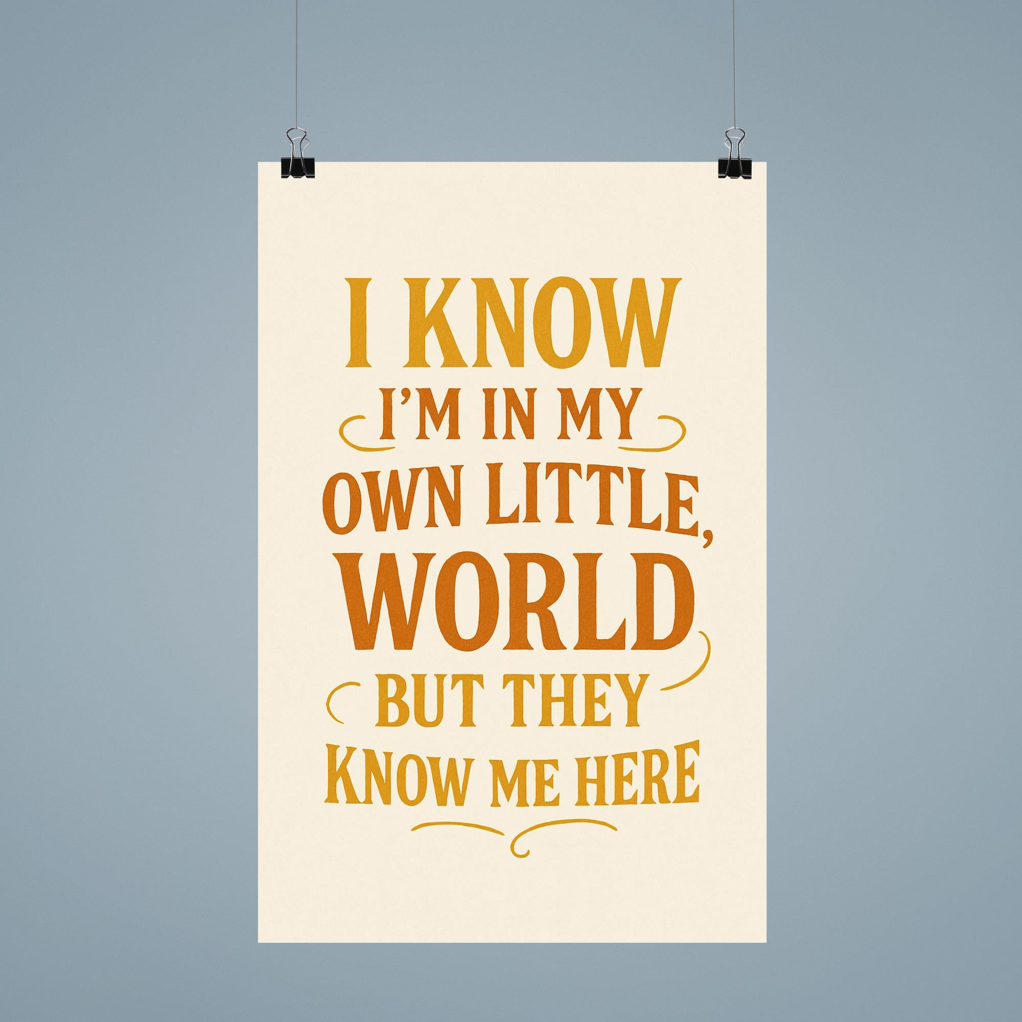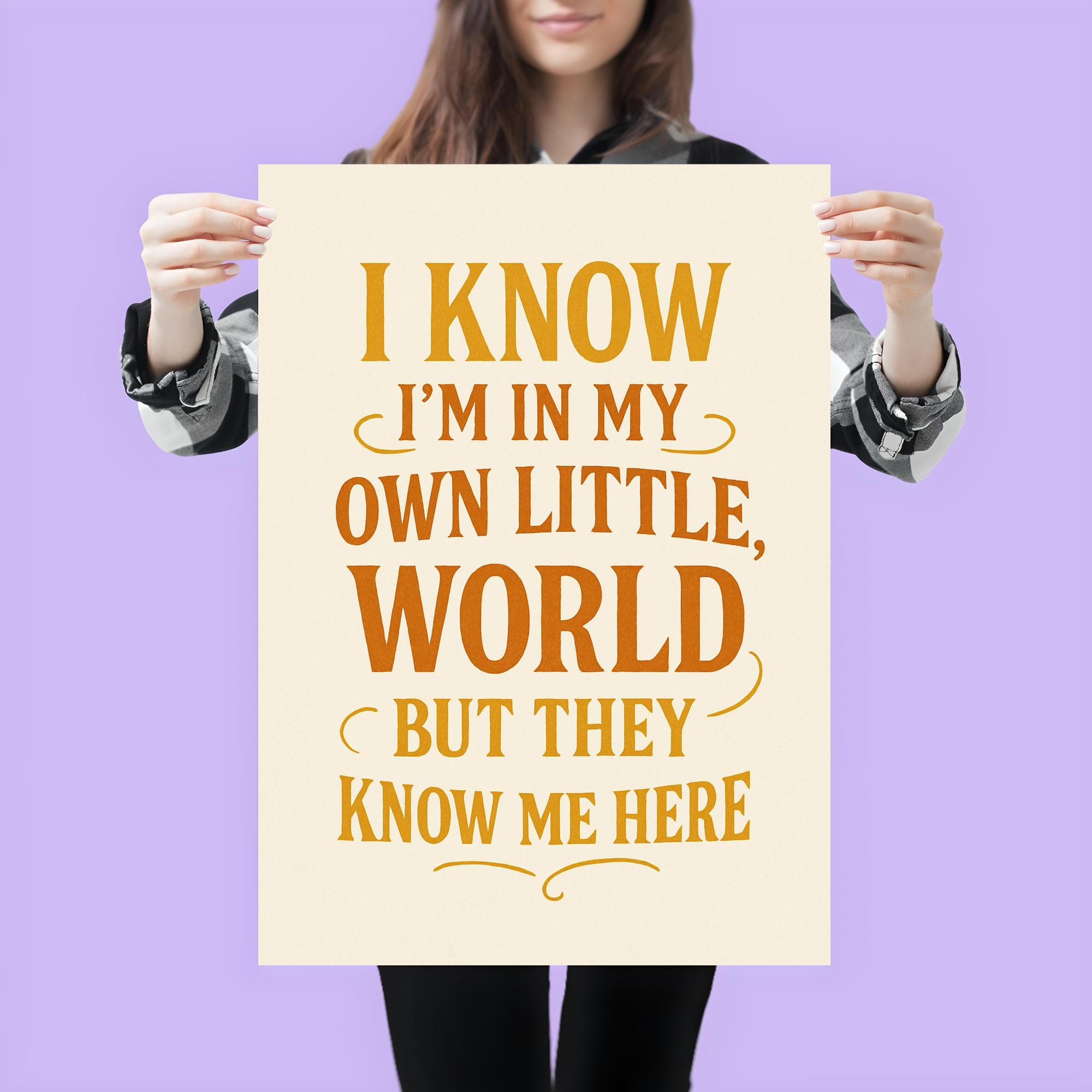 I Know I’m In My Own Little World Poster Print – Whimsical Motivational Wall Art for Bedroom, Office & Dorm Decor, Unique Inspiring Quote