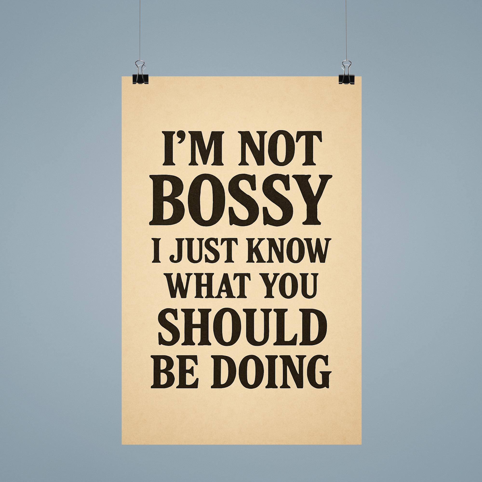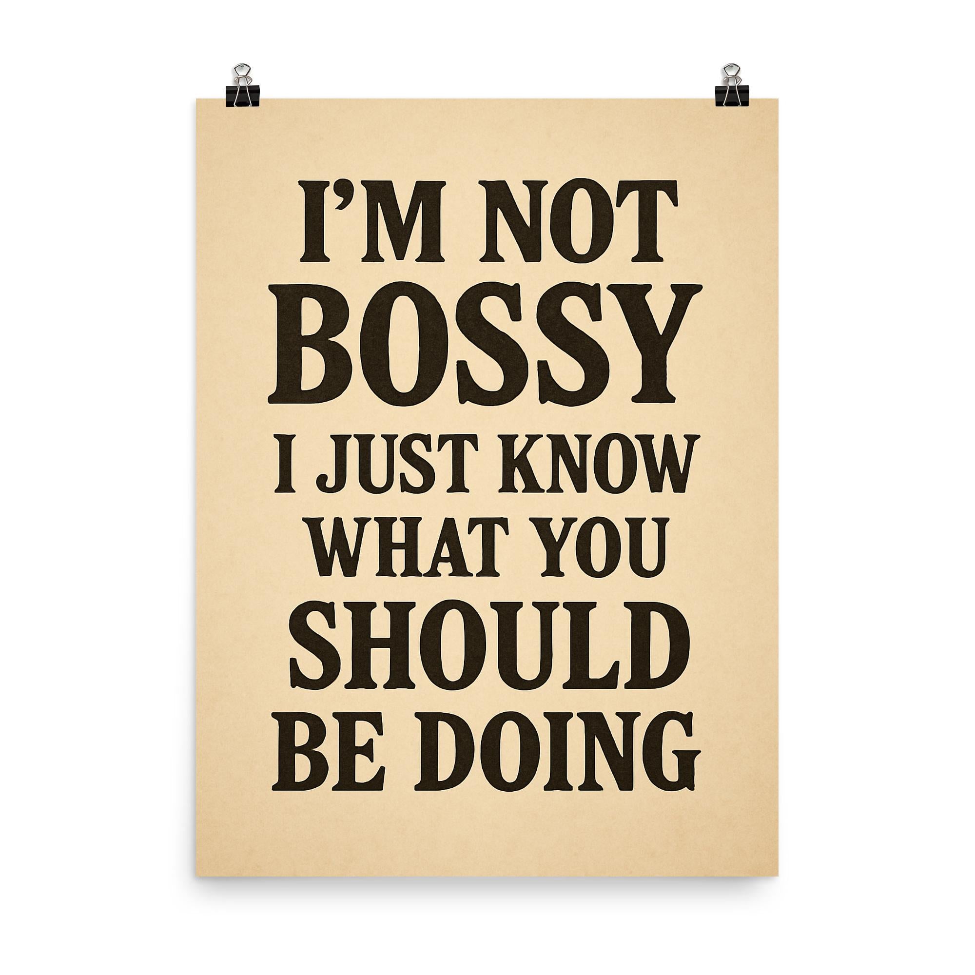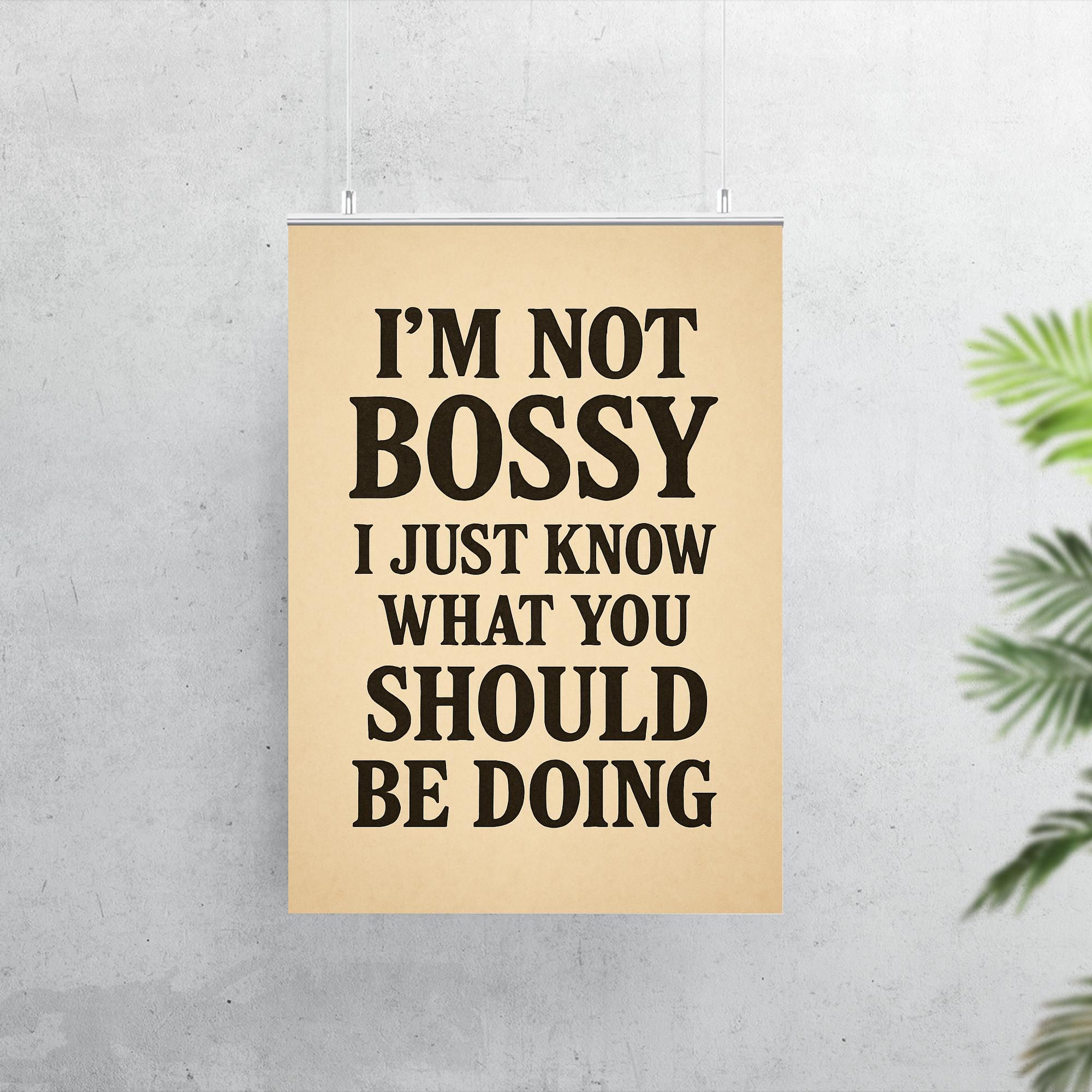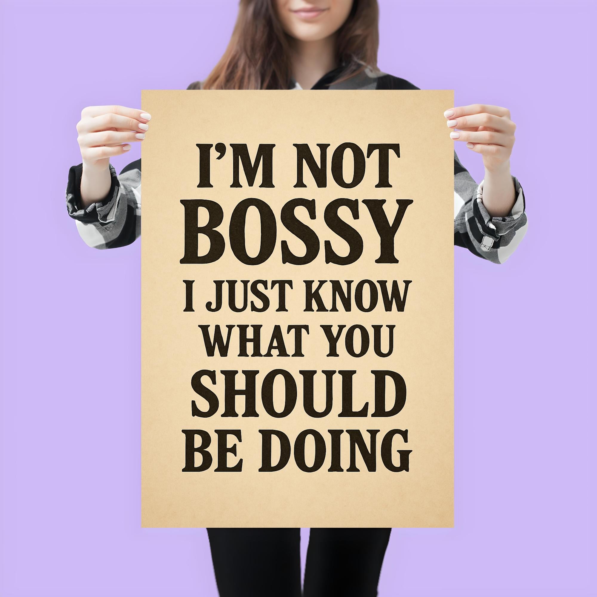 Own your confidence and command attention with the “I’m not bossy, I just know what you should be doing” poster. Perfect for anyone who leads with clarity, wit, and unapologetic style, this statement piece brings a smile while making your point—boldly and brilliantly. Hang it in your office, home, or favorite workspace for a daily dose of motivation and charm.