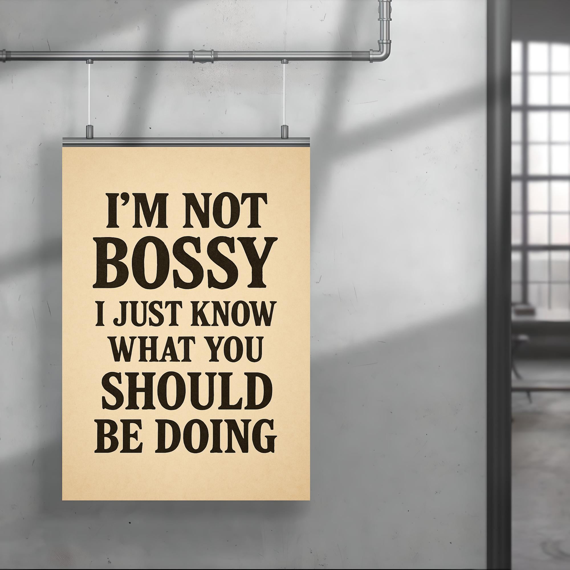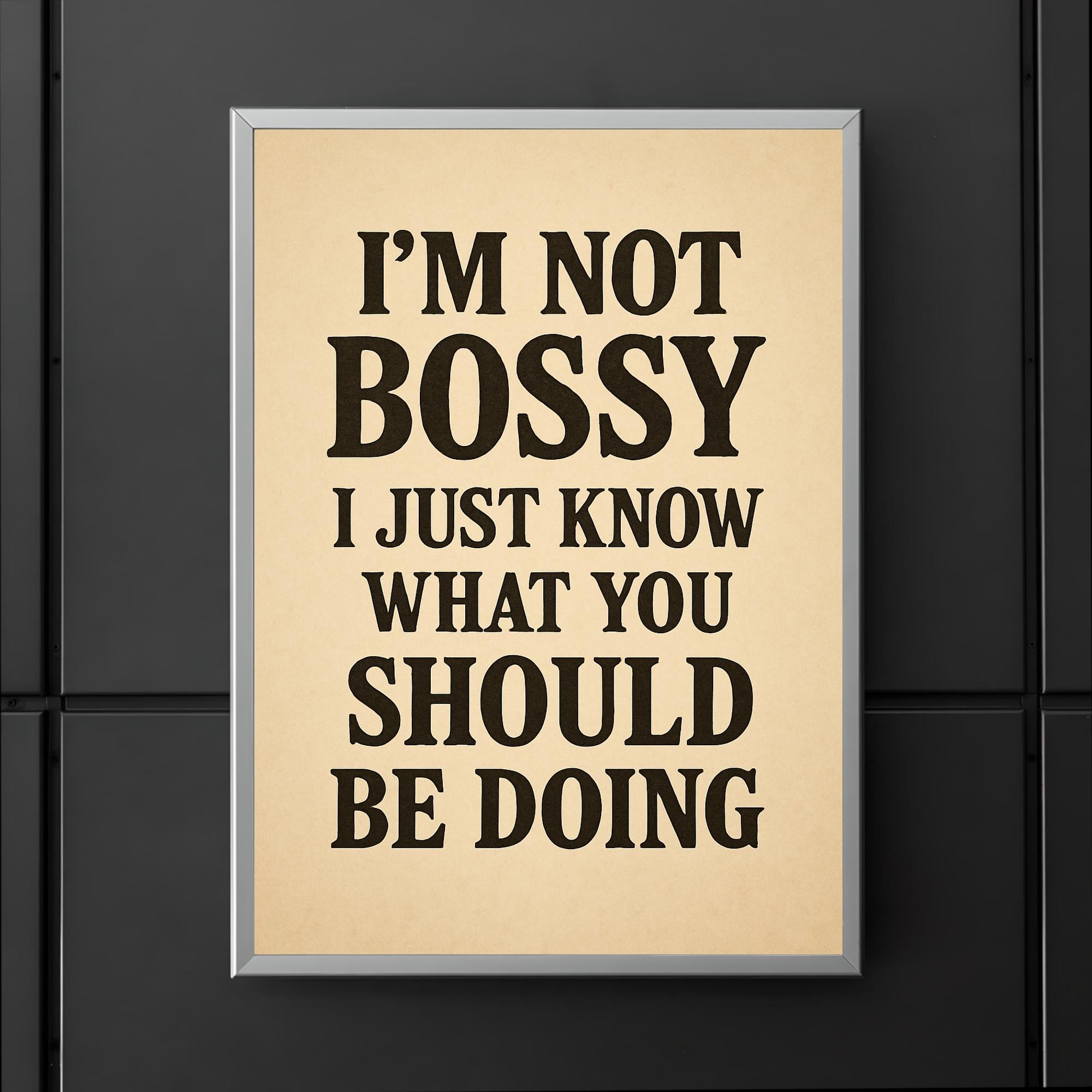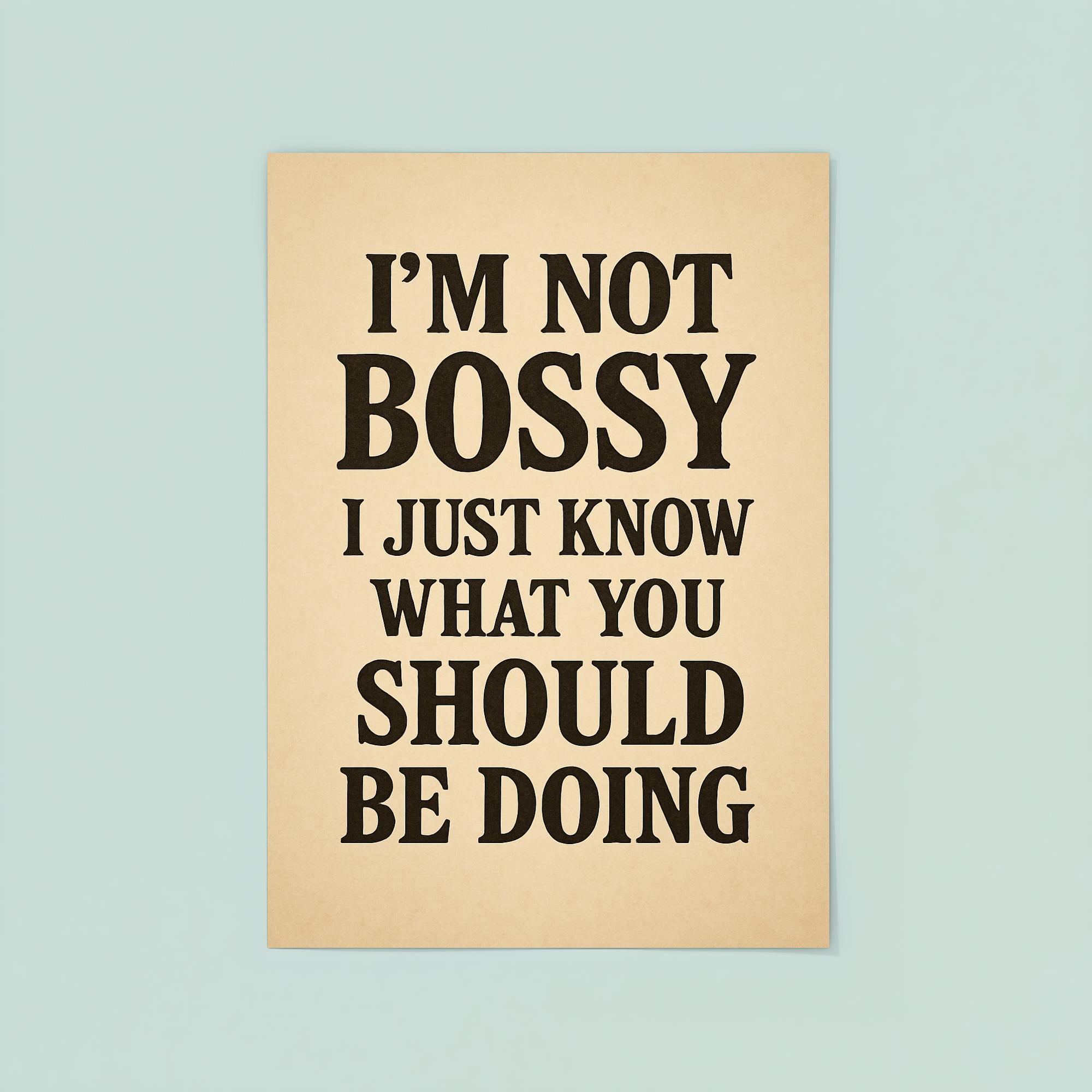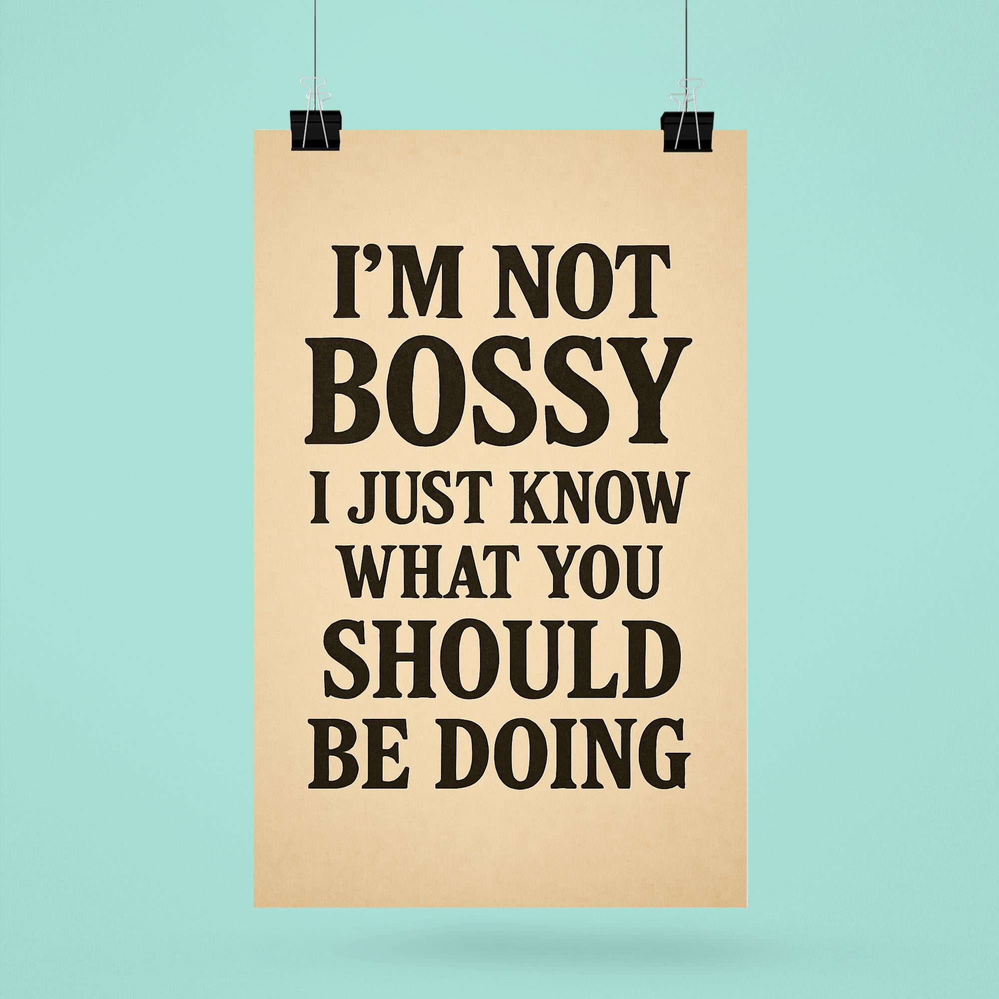 Own your confidence and command attention with the “I’m not bossy, I just know what you should be doing” poster. Perfect for anyone who leads with clarity, wit, and unapologetic style, this statement piece brings a smile while making your point—boldly and brilliantly. Hang it in your office, home, or favorite workspace for a daily dose of motivation and charm.