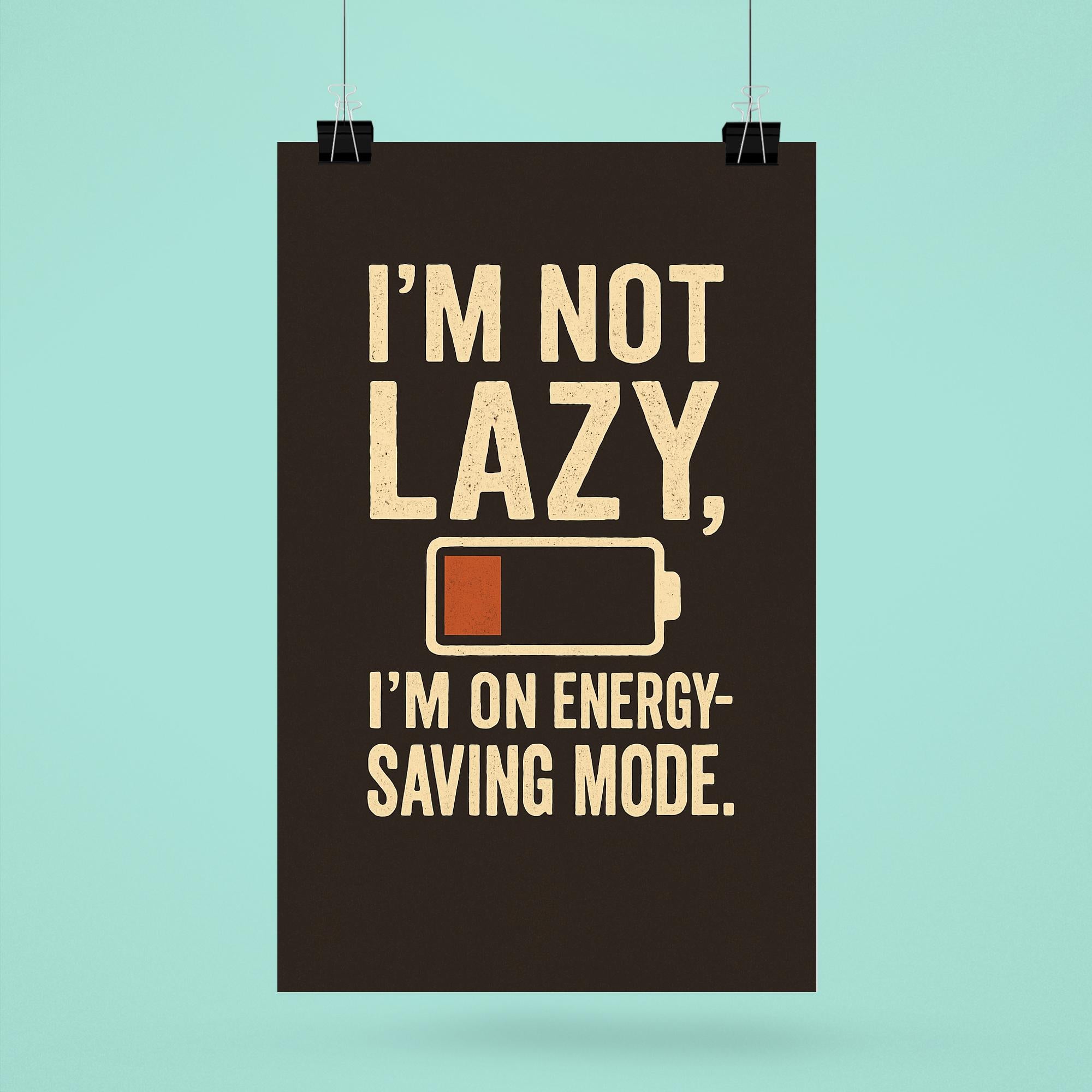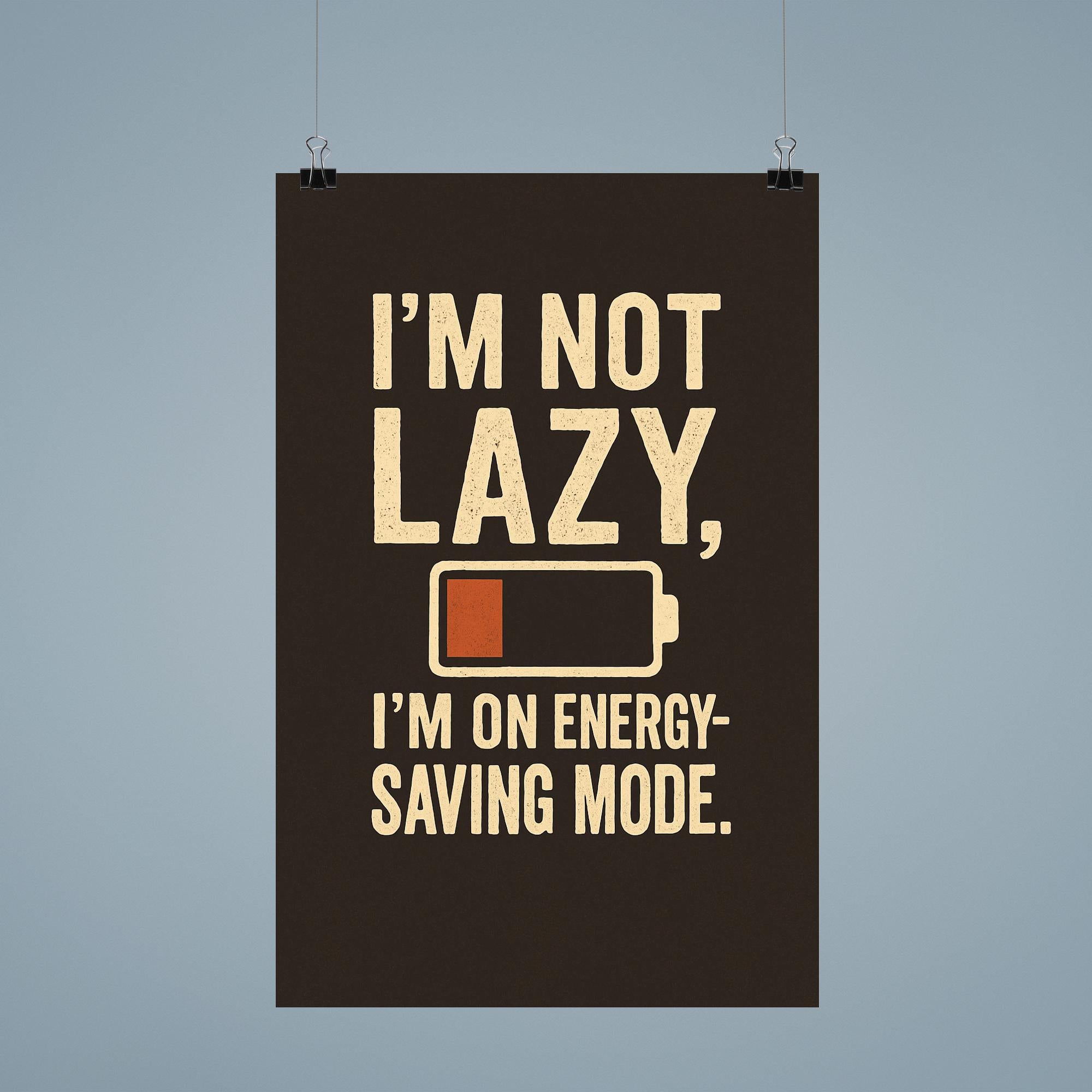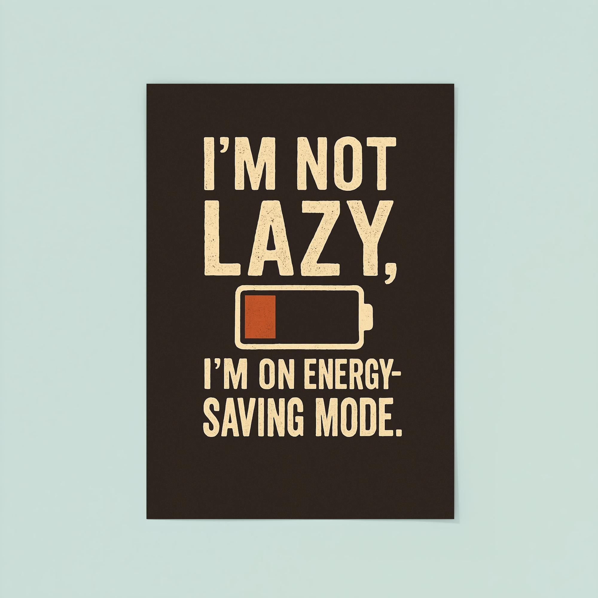Im Not Lazy Im On Energy Saving Mode Poster Print – Funny Motivational Wall Art for Home Office Decor, Unique Gift for Relaxation Lovers