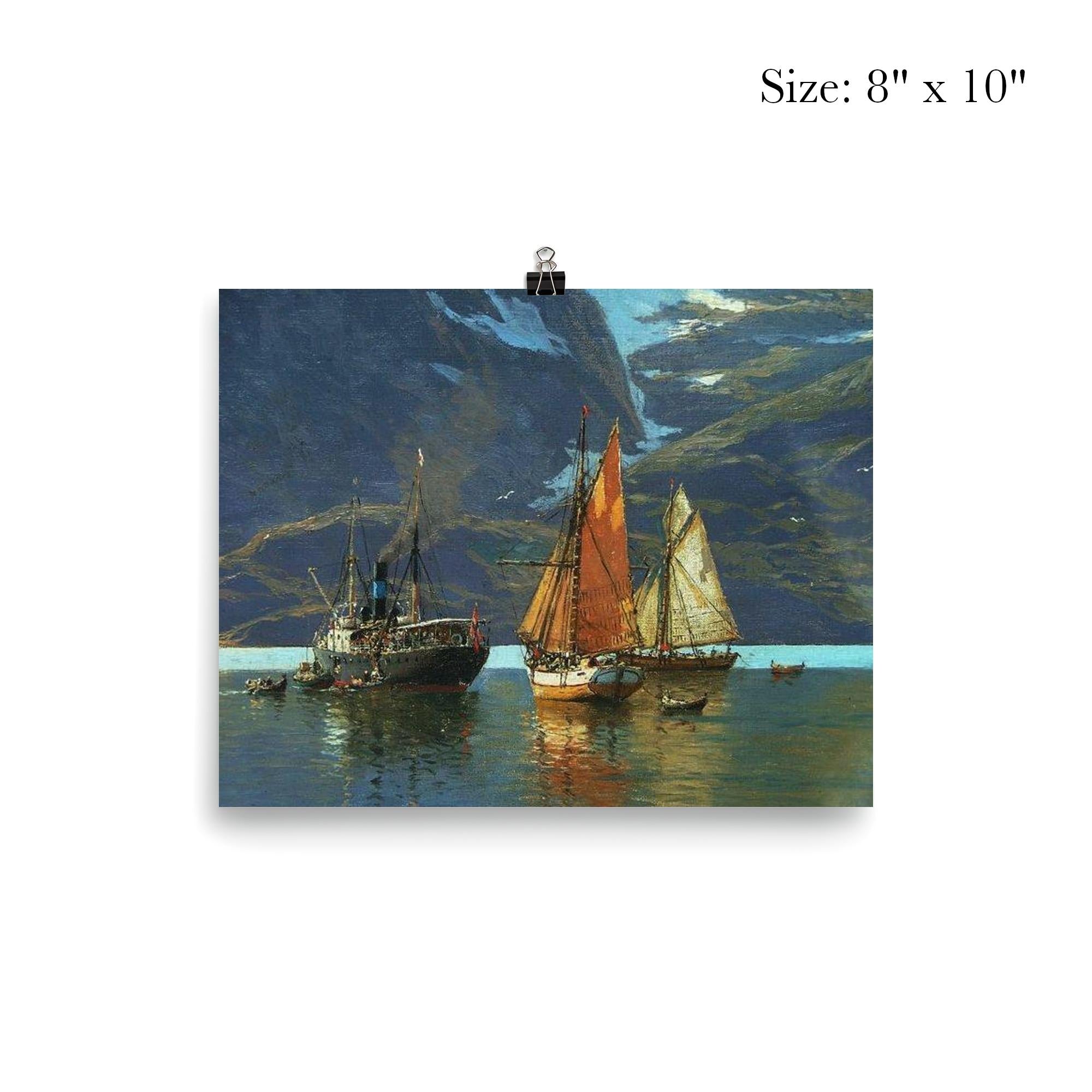 Experience a timeless journey into the dramatic beauty of Norway’s fjords with "In Neroyfjord" by Themistokles von Eckensbrecher, 1921. This exquisite poster captures the majestic spirit of one of the world’s most breathtaking landscapes, inviting you to bring a piece of serene adventure and classic elegance into your space. A perfect blend of historic charm and natural wonder, it’s a stunning tribute to early 20th-century travel artistry.