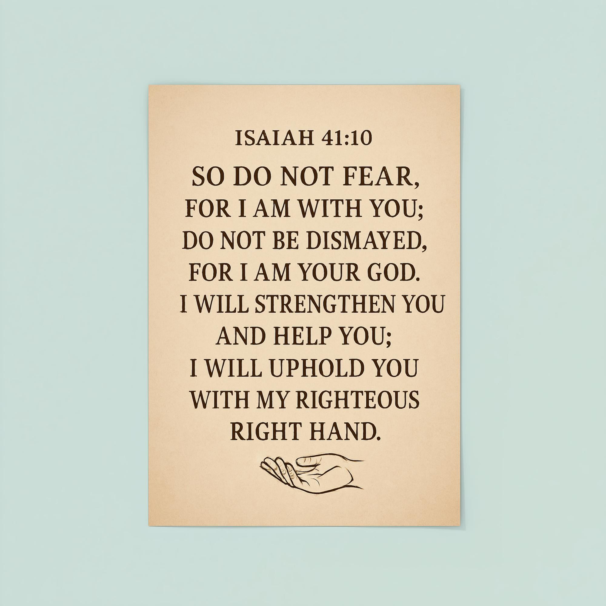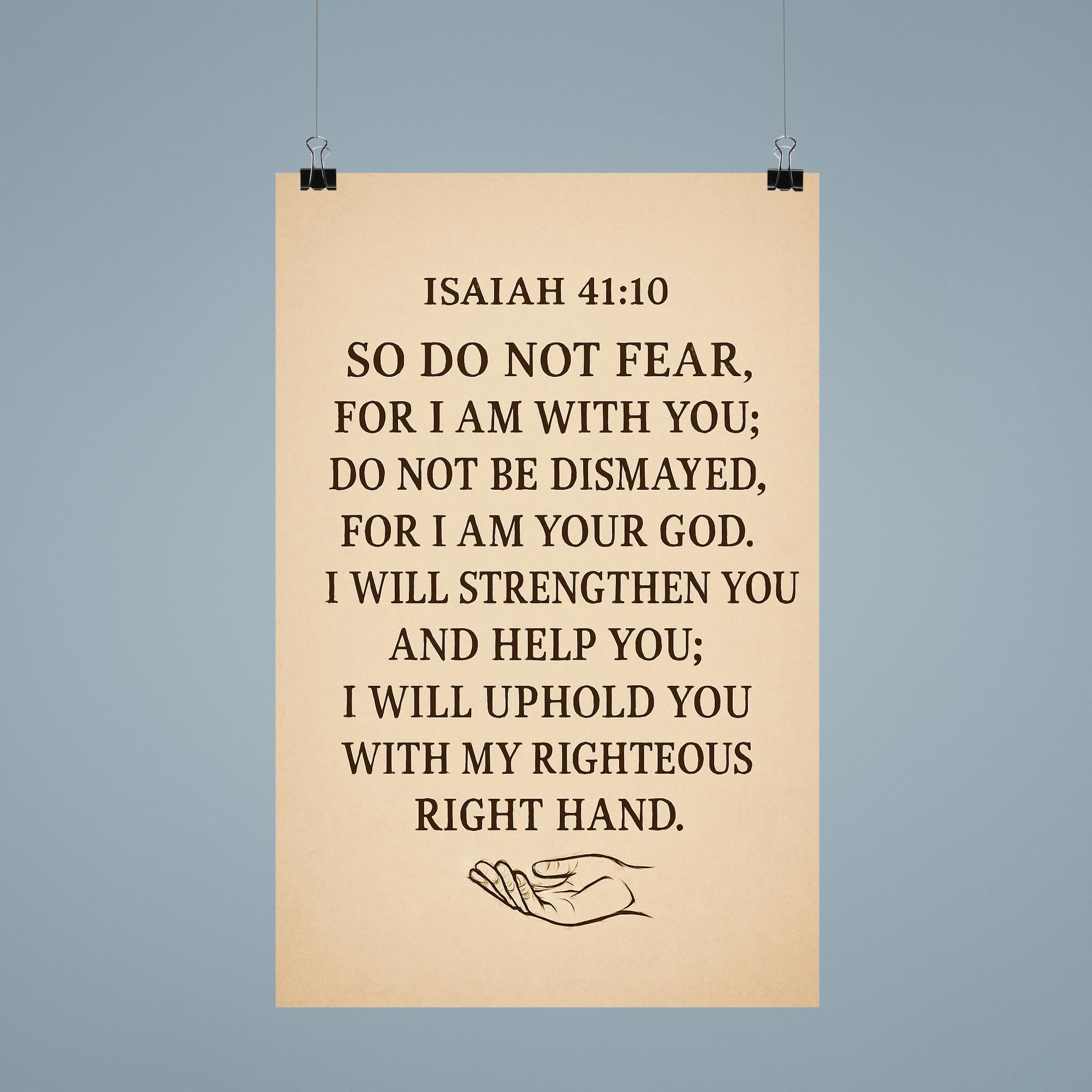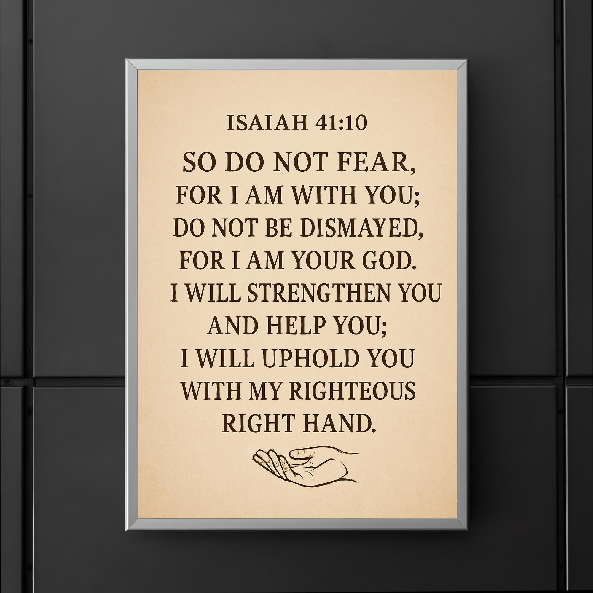 Find comfort and courage every day with this inspiring Isaiah 41:10 poster. A powerful reminder that you are never alone—strength, help, and unwavering support are promised to uphold you through life’s challenges. Let these words uplift your spirit and bring peace to your space.