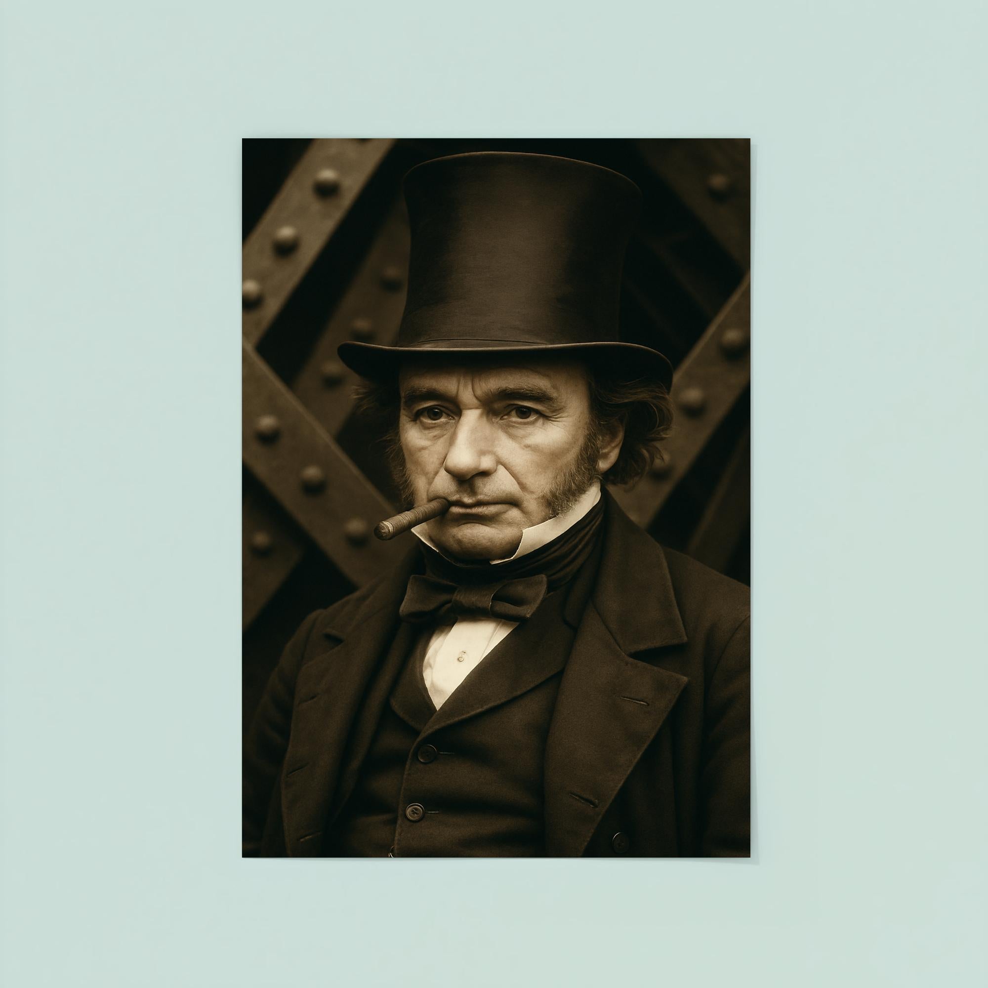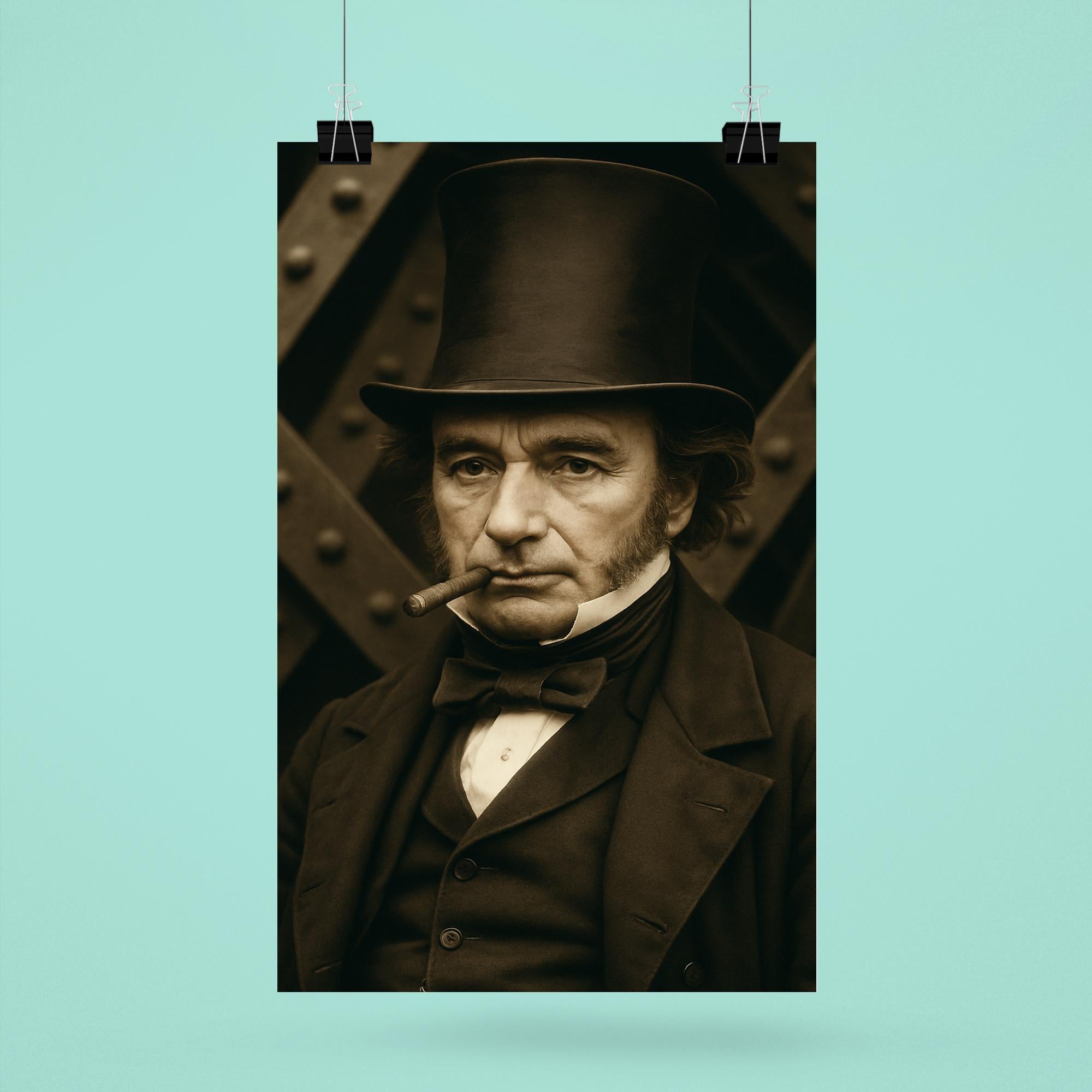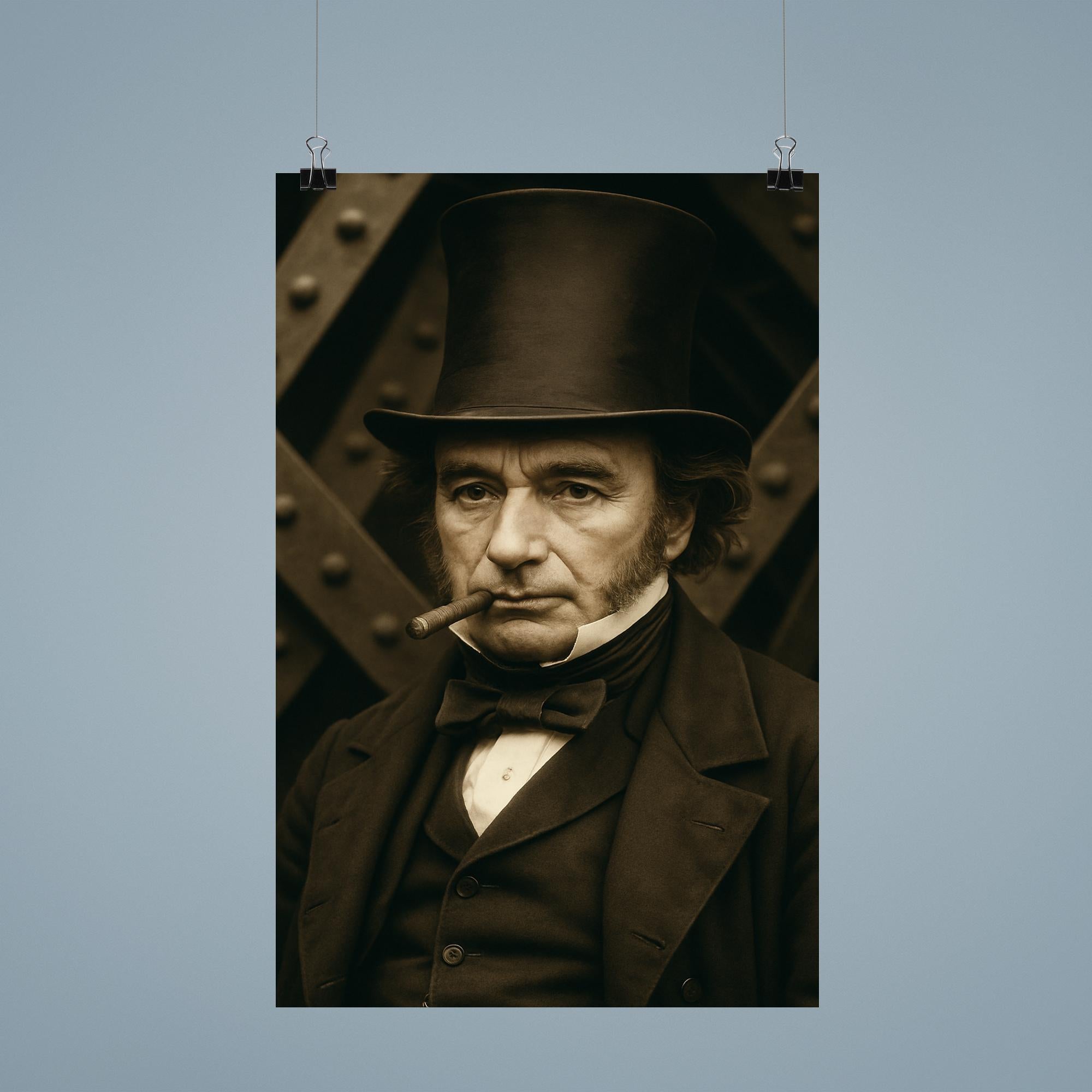 Celebrate one of history’s greatest engineering visionaries with this striking portrait of Isambard Kingdom Brunel. Perfect for inspiring creativity and innovation, this poster captures the spirit of a man whose bold ideas shaped the modern world. A timeless addition to any workspace, study, or gallery wall that honors brilliance and ambition.