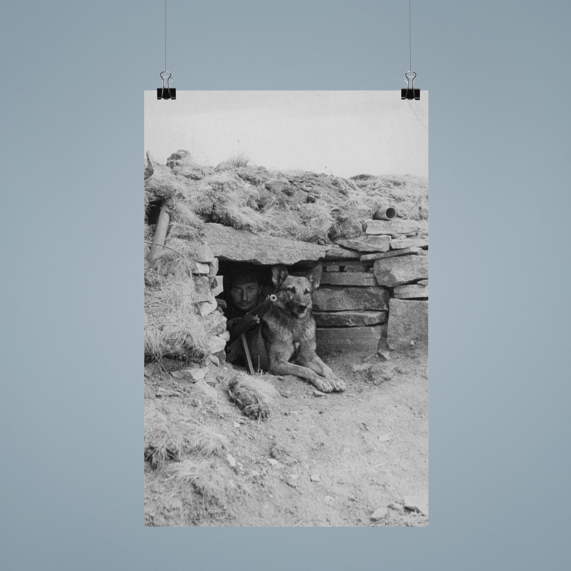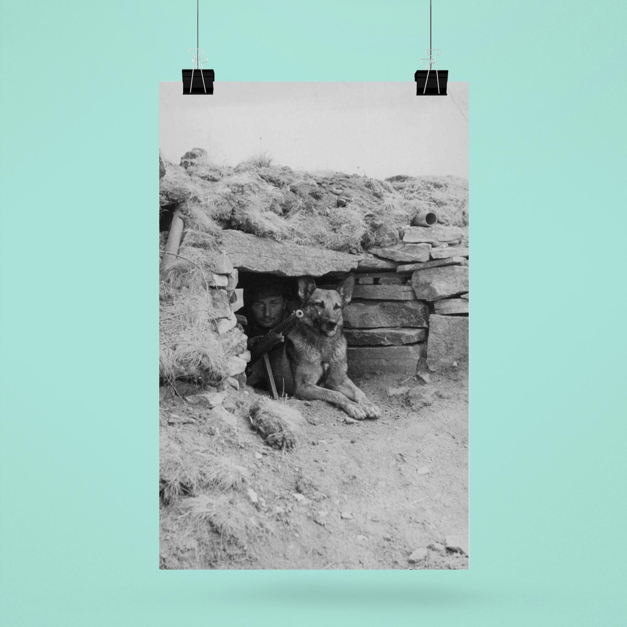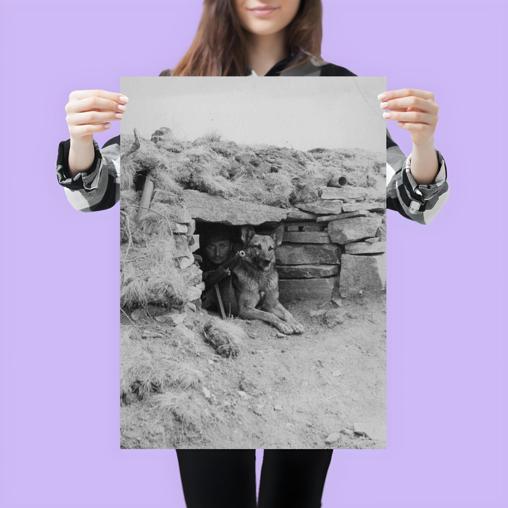 Step back in time with this evocative poster capturing an Italian soldier and his loyal dog at a Ukrainian outpost in 1942. A powerful glimpse into a moment of companionship amid the challenges of war, this striking image invites reflection and remembrance. Perfect for history enthusiasts and collectors alike, it brings a poignant story to your wall with authenticity and depth.
