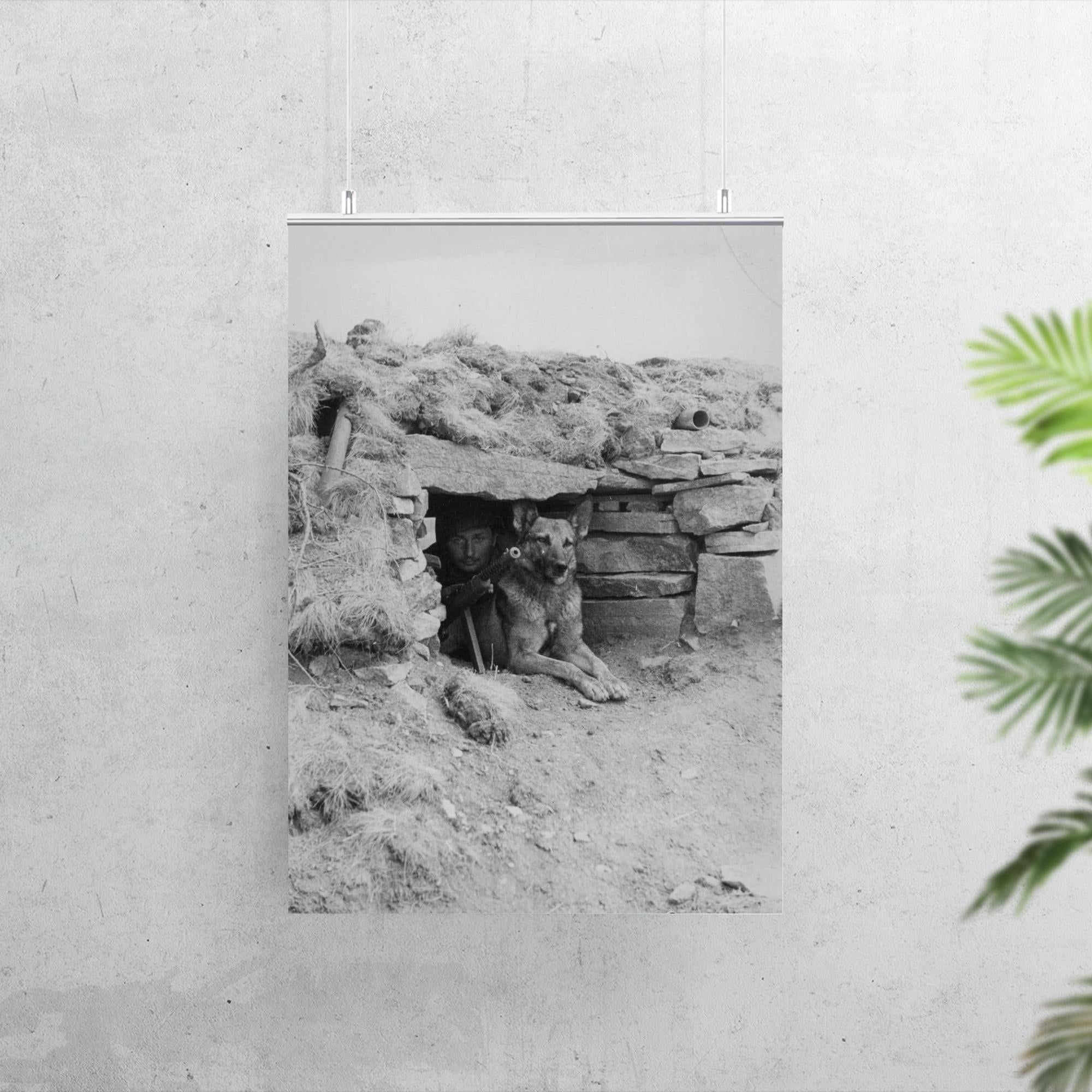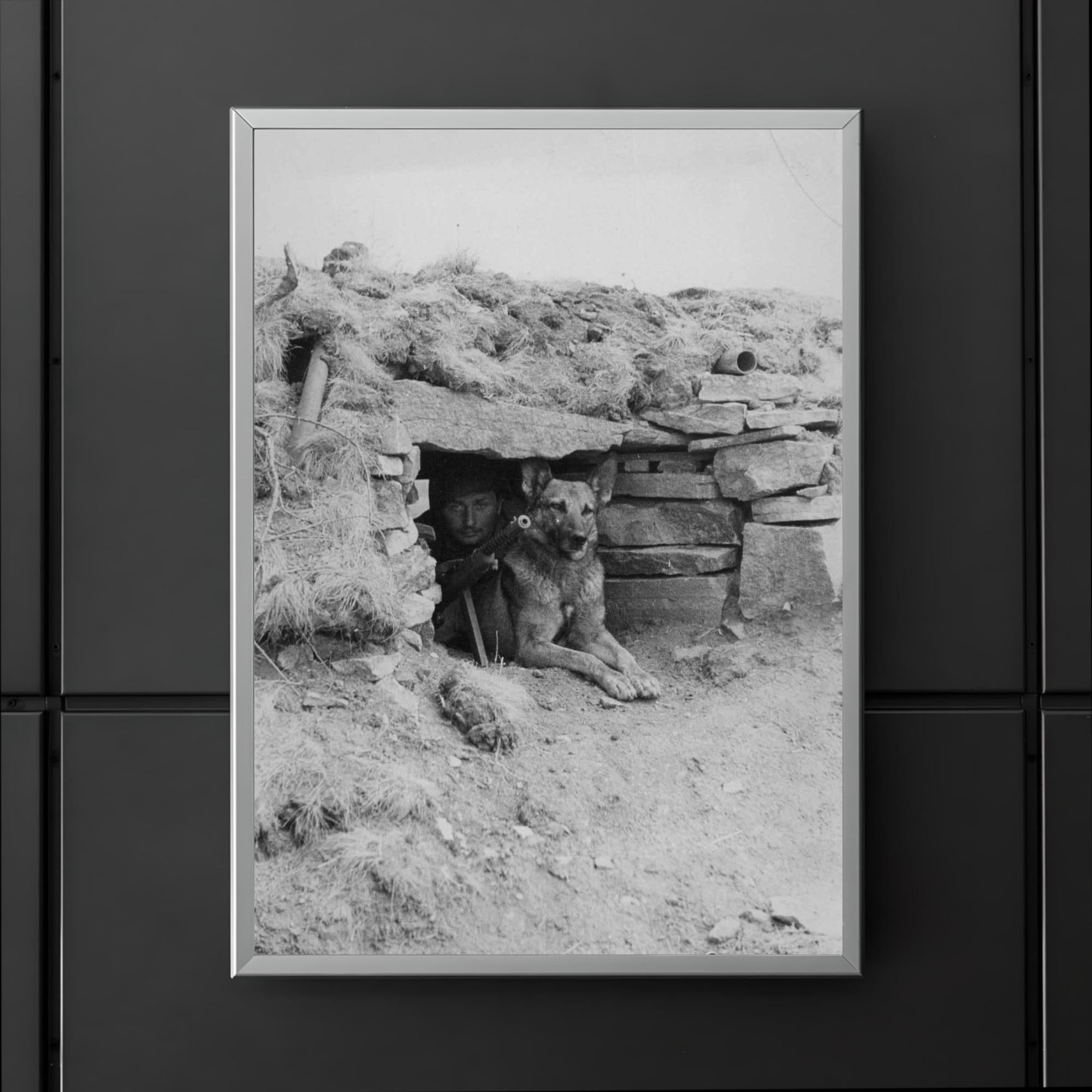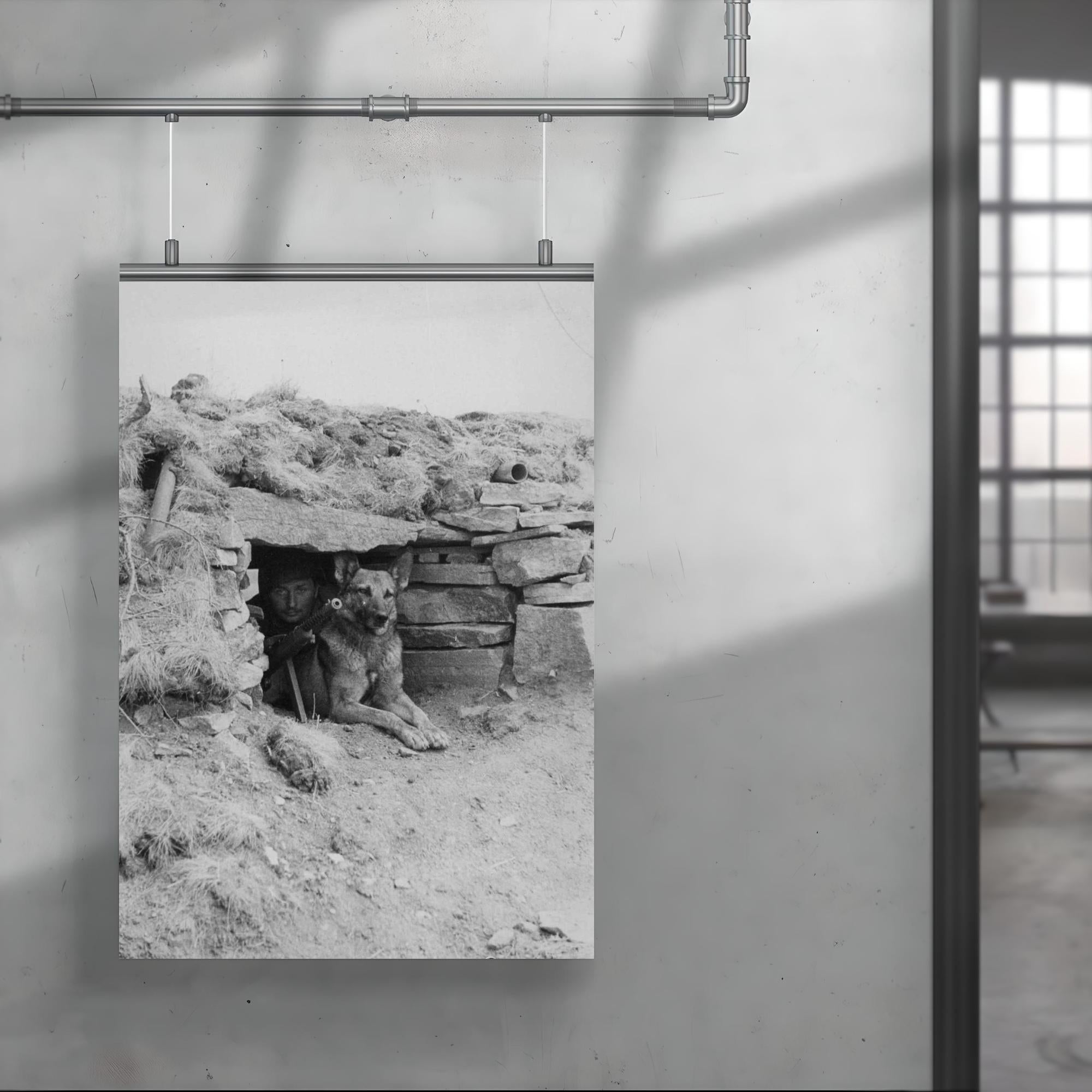 Step back in time with this evocative poster capturing an Italian soldier and his loyal dog at a Ukrainian outpost in 1942. A powerful glimpse into a moment of companionship amid the challenges of war, this striking image invites reflection and remembrance. Perfect for history enthusiasts and collectors alike, it brings a poignant story to your wall with authenticity and depth.