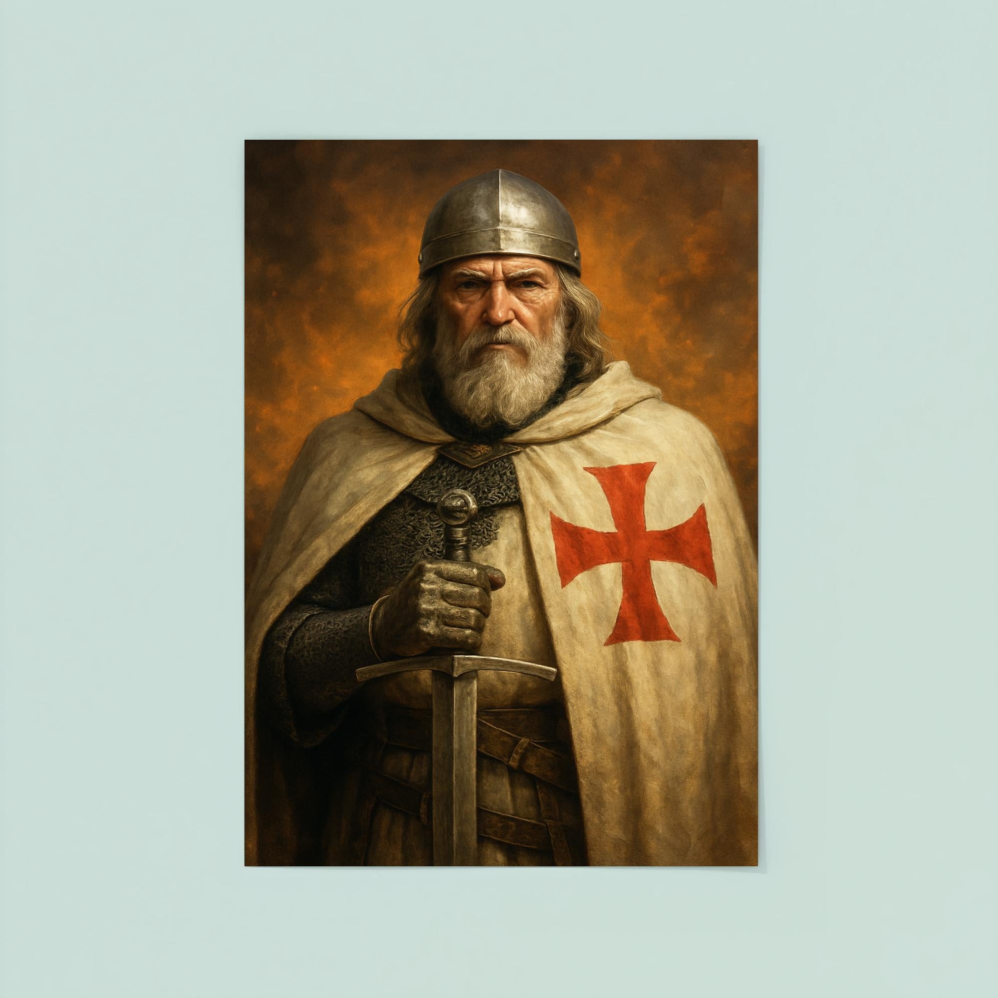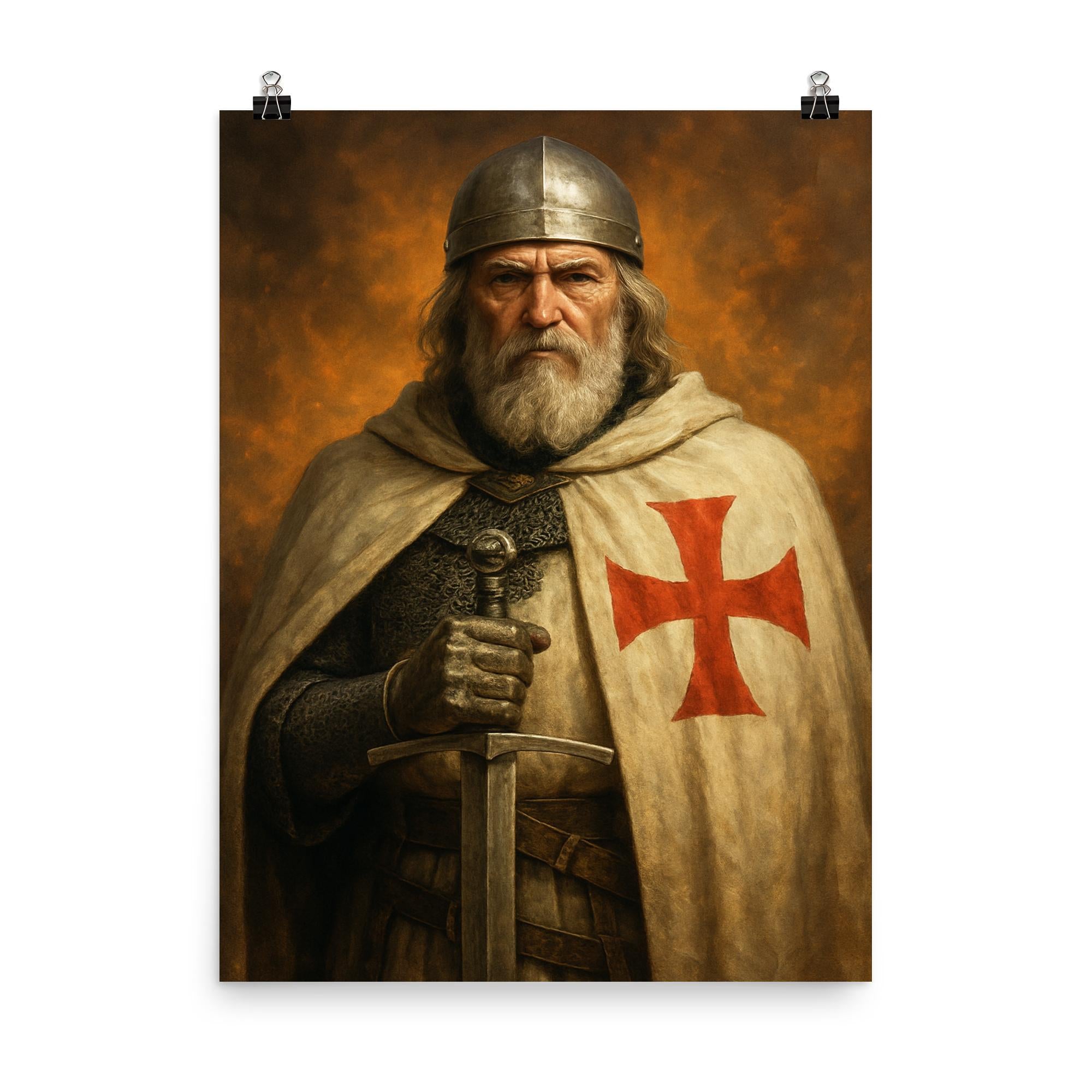 Elevate your space with this striking poster of Jacques de Molay, the last Grand Master of the Knights Templar. A powerful tribute to a legendary figure whose legacy of courage and mystery continues to captivate. Perfect for history enthusiasts and those drawn to timeless stories of honor and intrigue.