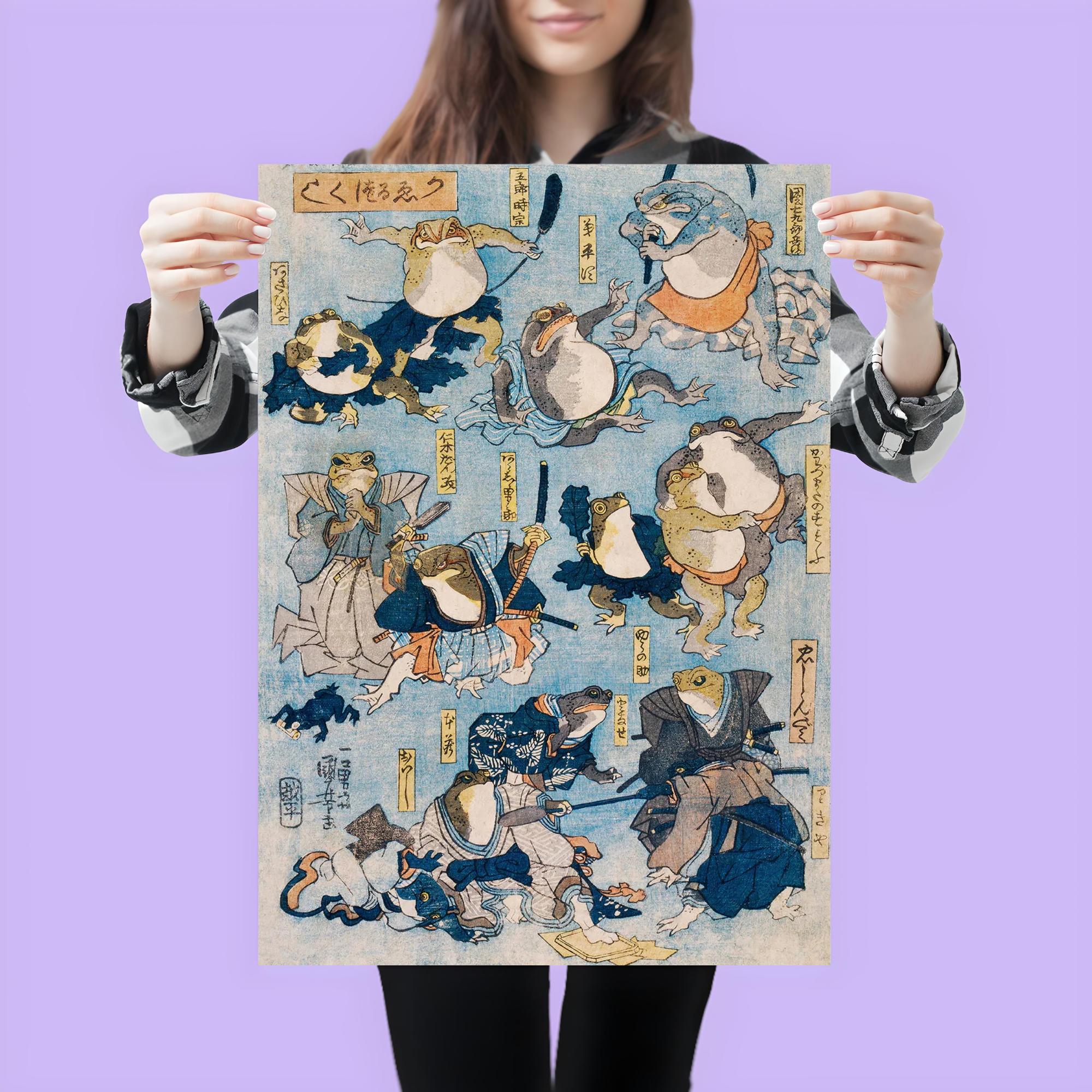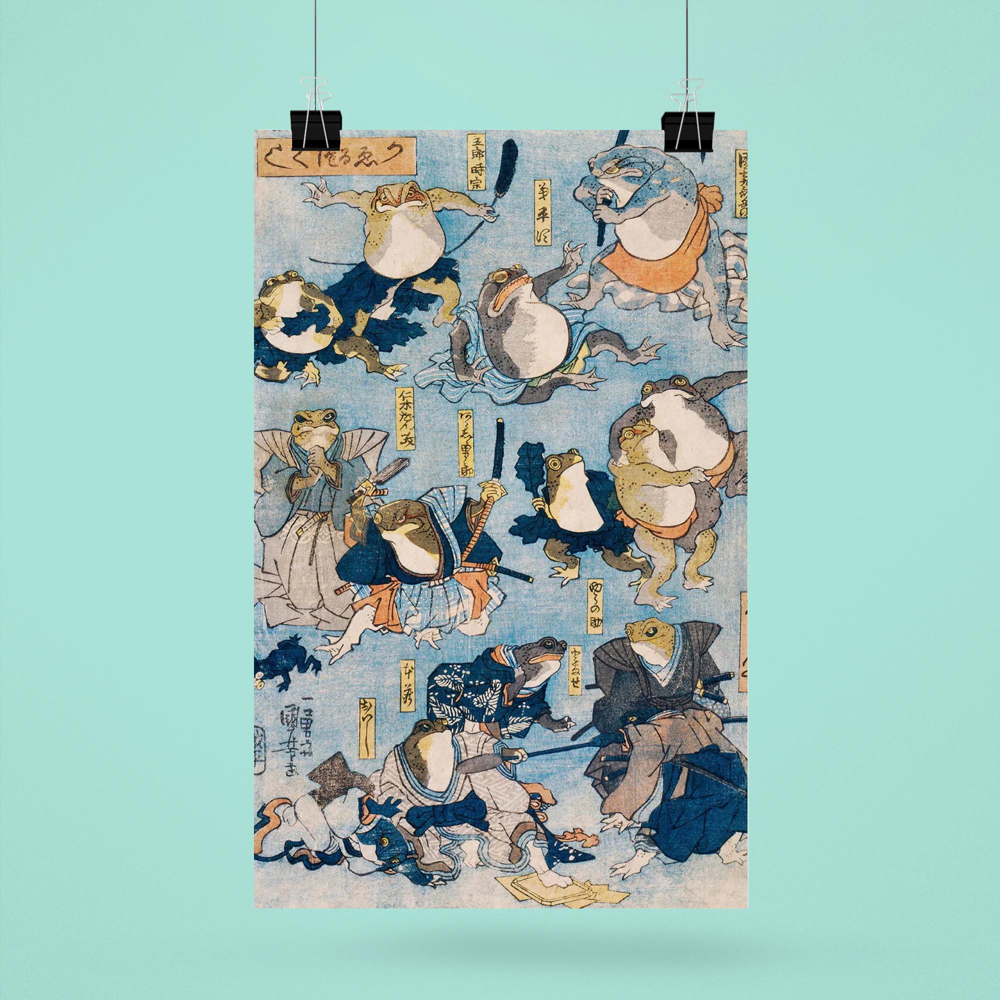 Japanese Frogs Poster Print – Funny Japanese Wall Art for Unique Home Decor, Quirky Frog Illustration, Vibrant Japan-inspired Design