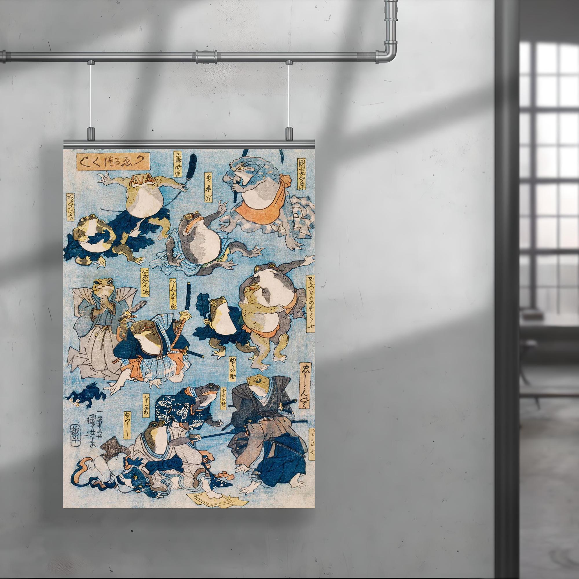 Bring a splash of whimsical charm to any room with this playful poster featuring quirky Japanese frogs. Perfectly blending humor and cultural flair, it’s a delightful conversation starter that brightens your walls with a touch of fun and personality. Ideal for adding a unique twist to your home or office decor!