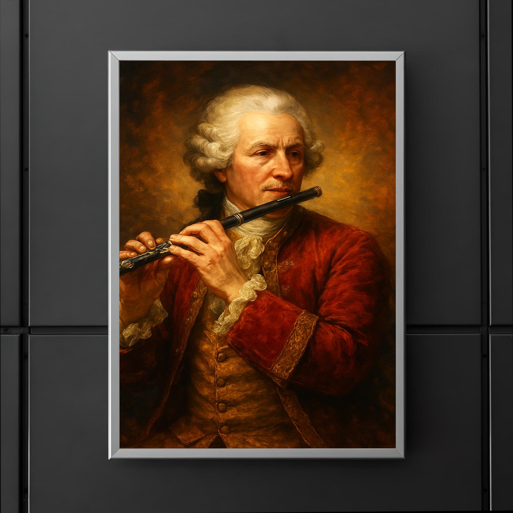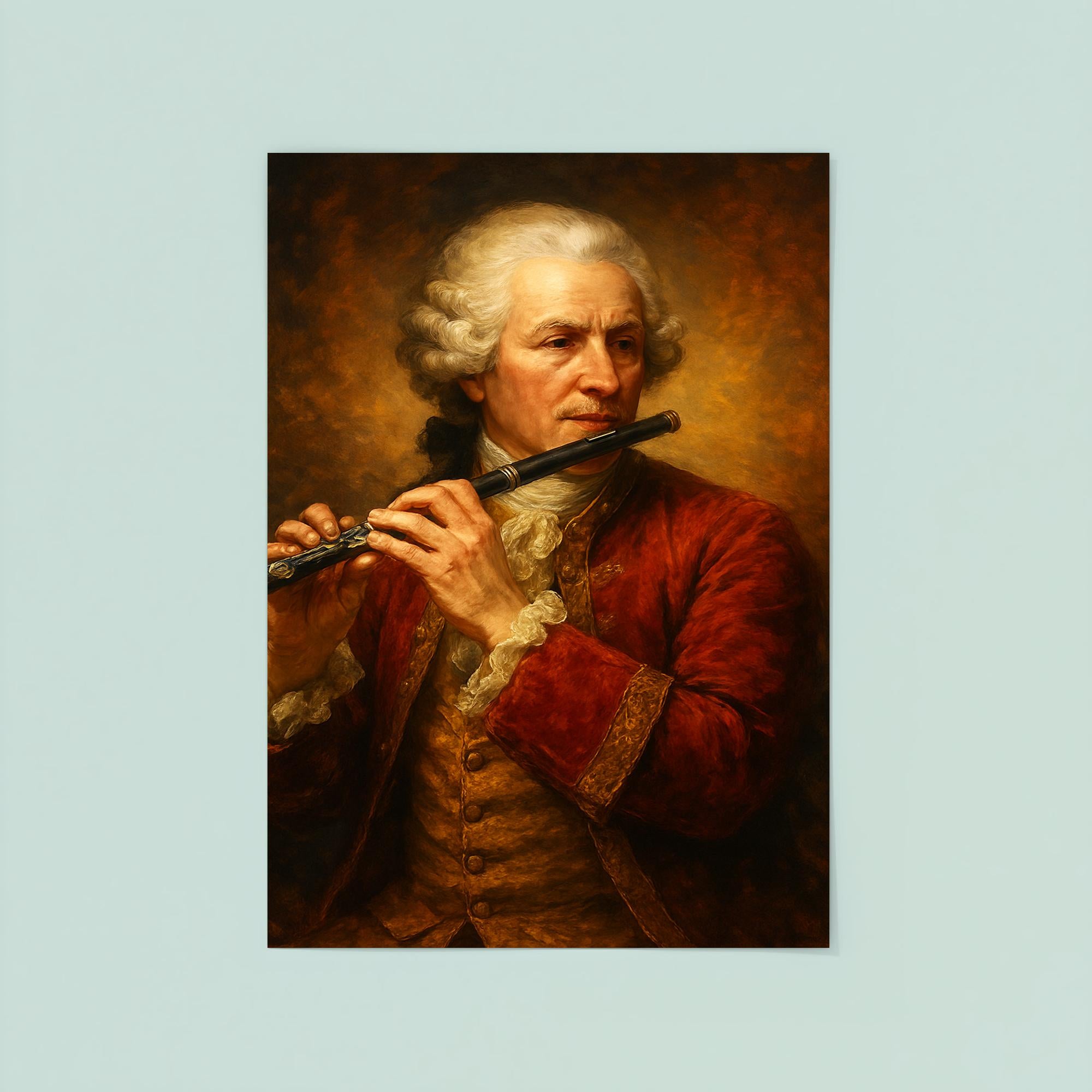 Celebrate the legacy of Johann Joachim Quantz with this striking poster that honors the renowned flutist and composer. A perfect addition to any music lover’s collection, it captures the spirit of an influential figure whose works shaped Baroque music. Whether displayed in a study, music room, or creative space, this poster inspires passion for classical artistry and timeless creativity.