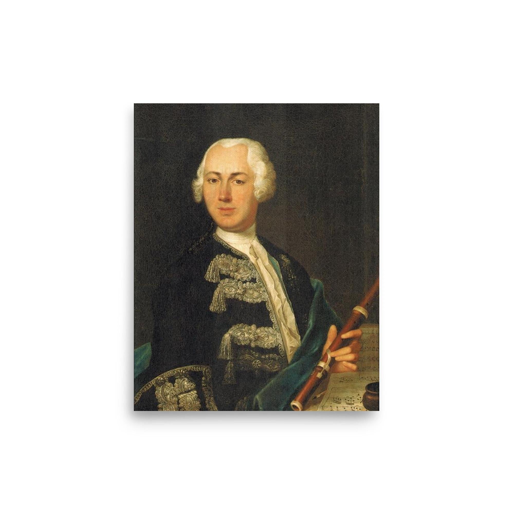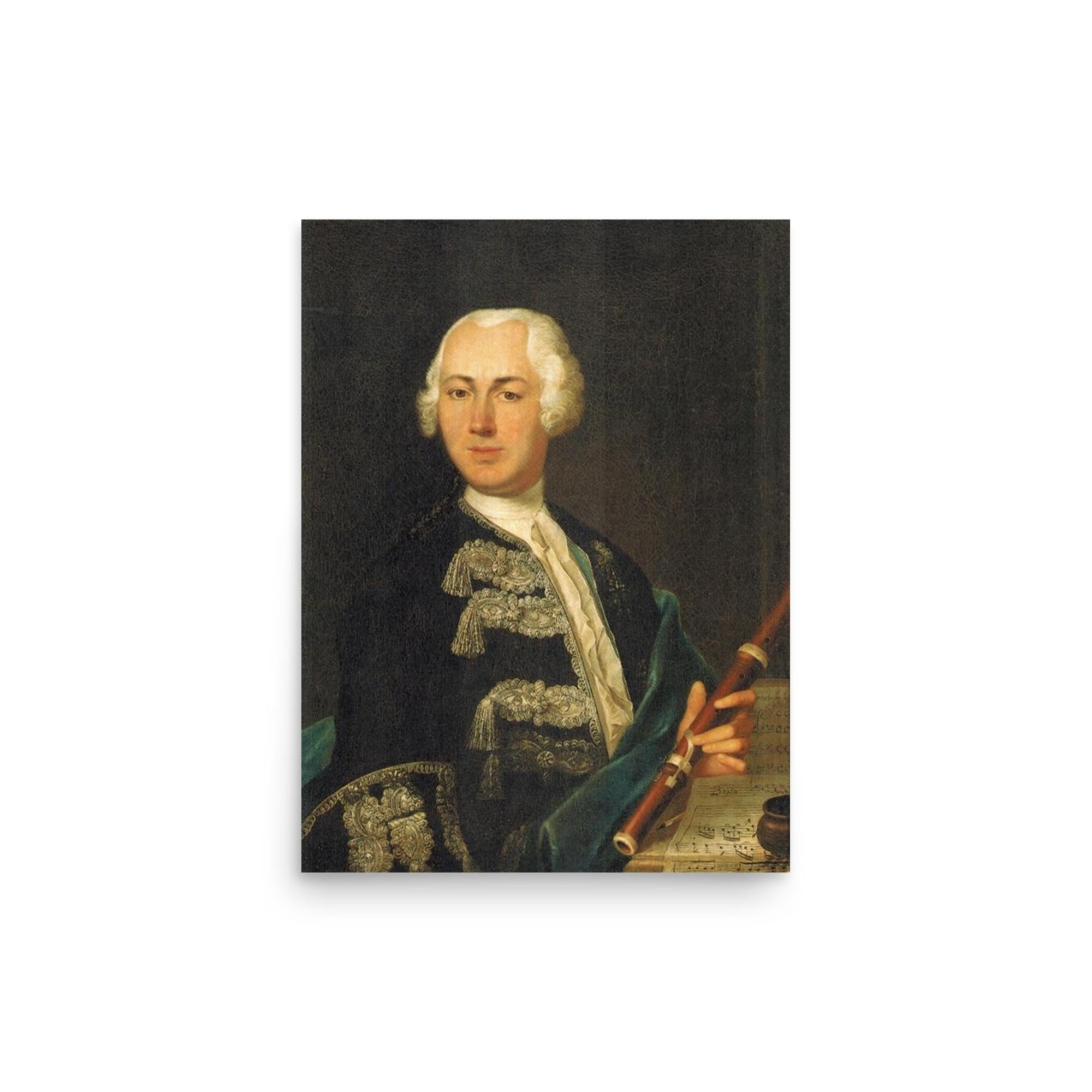 Elevate your music space with a tribute to one of history's great maestros, Johann Joachim Quantz. Celebrate the legacy of the renowned flutist and composer whose innovative spirit and compositions have inspired musicians for centuries. Perfect for music lovers and history enthusiasts alike, this poster serves as a timeless reminder of Quantz's influential contribution to the world of classical music.
