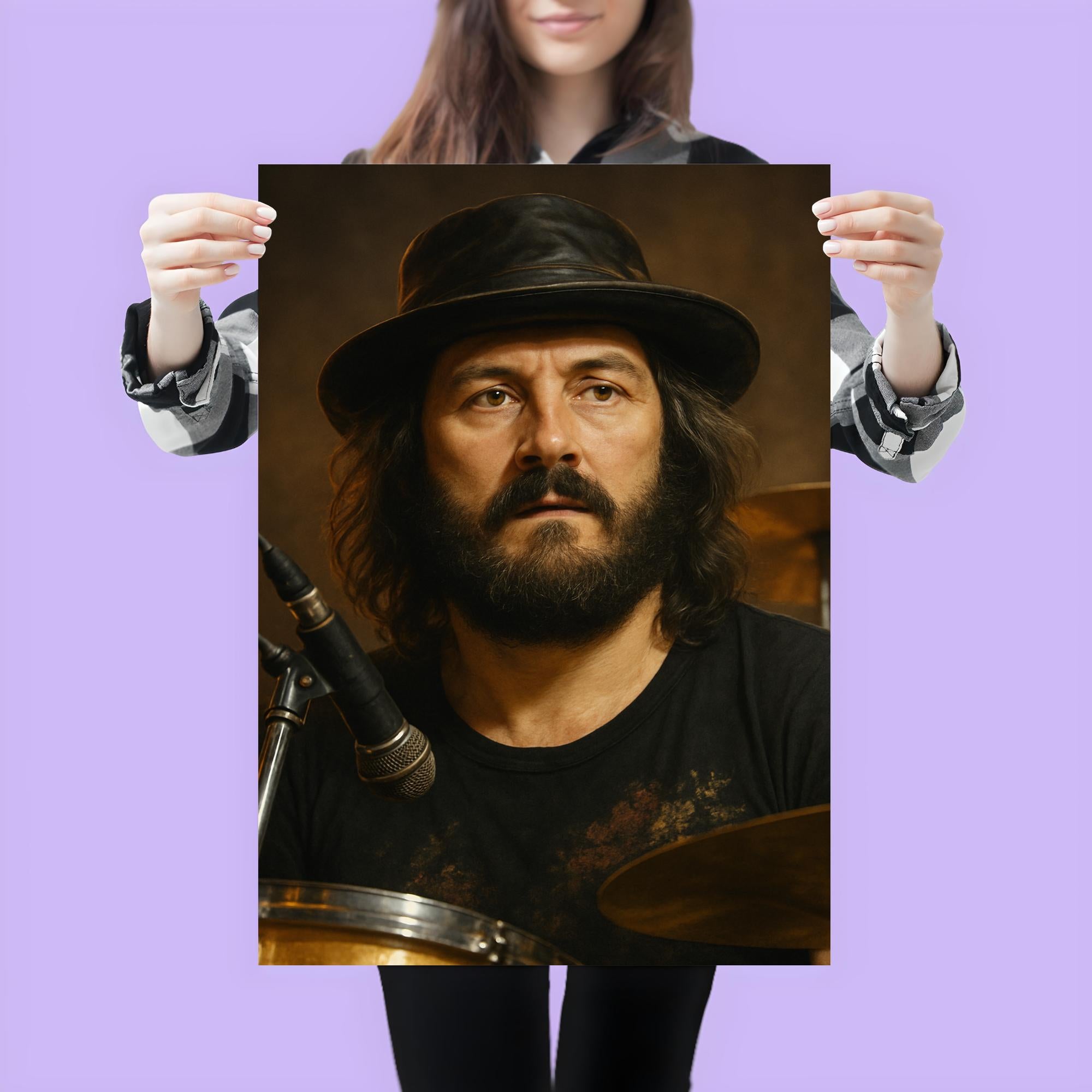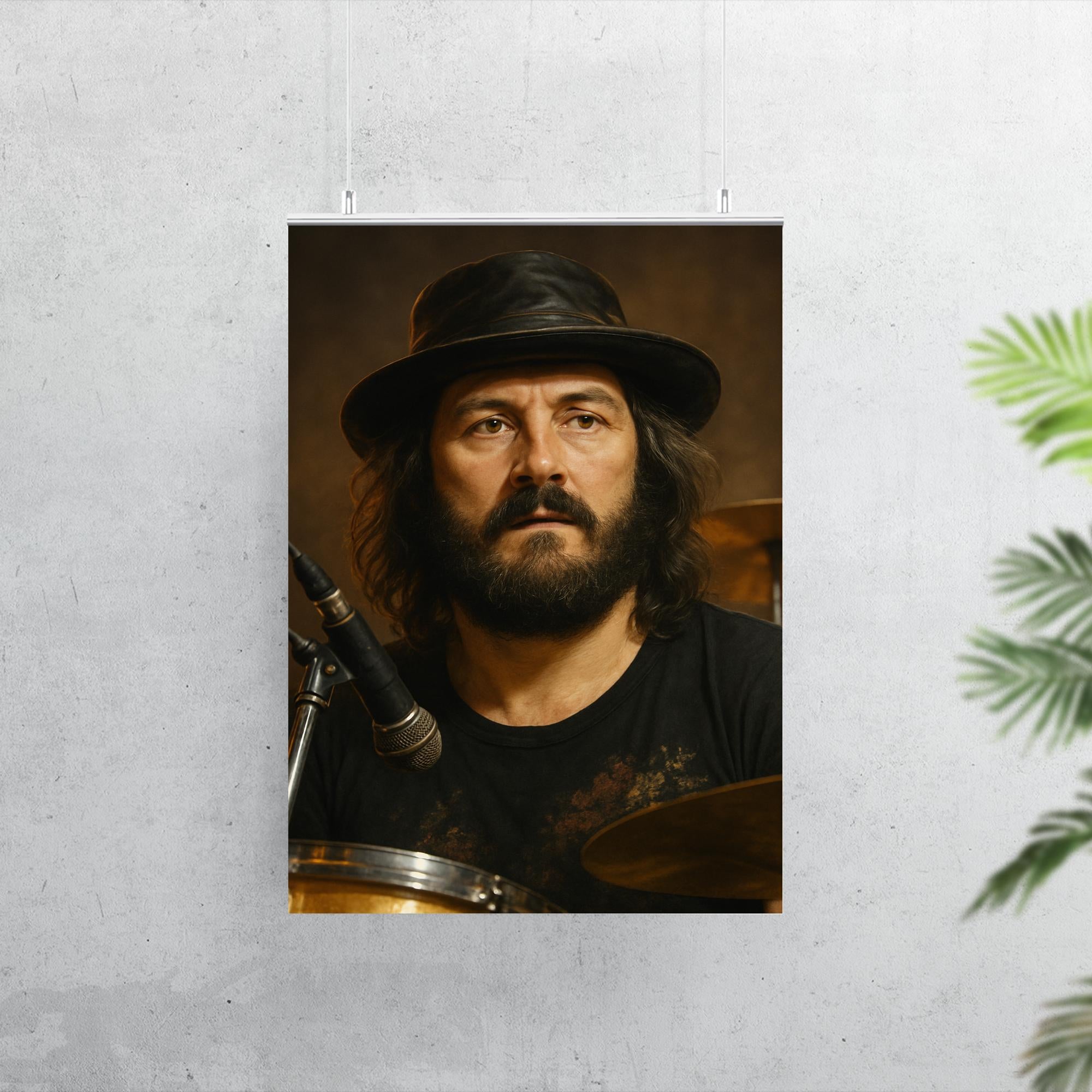 Celebrate the legendary power and presence of John Bonham with this striking portrait poster. Perfect for any rock enthusiast, it captures the essence of the iconic drummer whose rhythms defined a generation. Bring the spirit of classic rock into your space with this timeless tribute to a true musical titan.