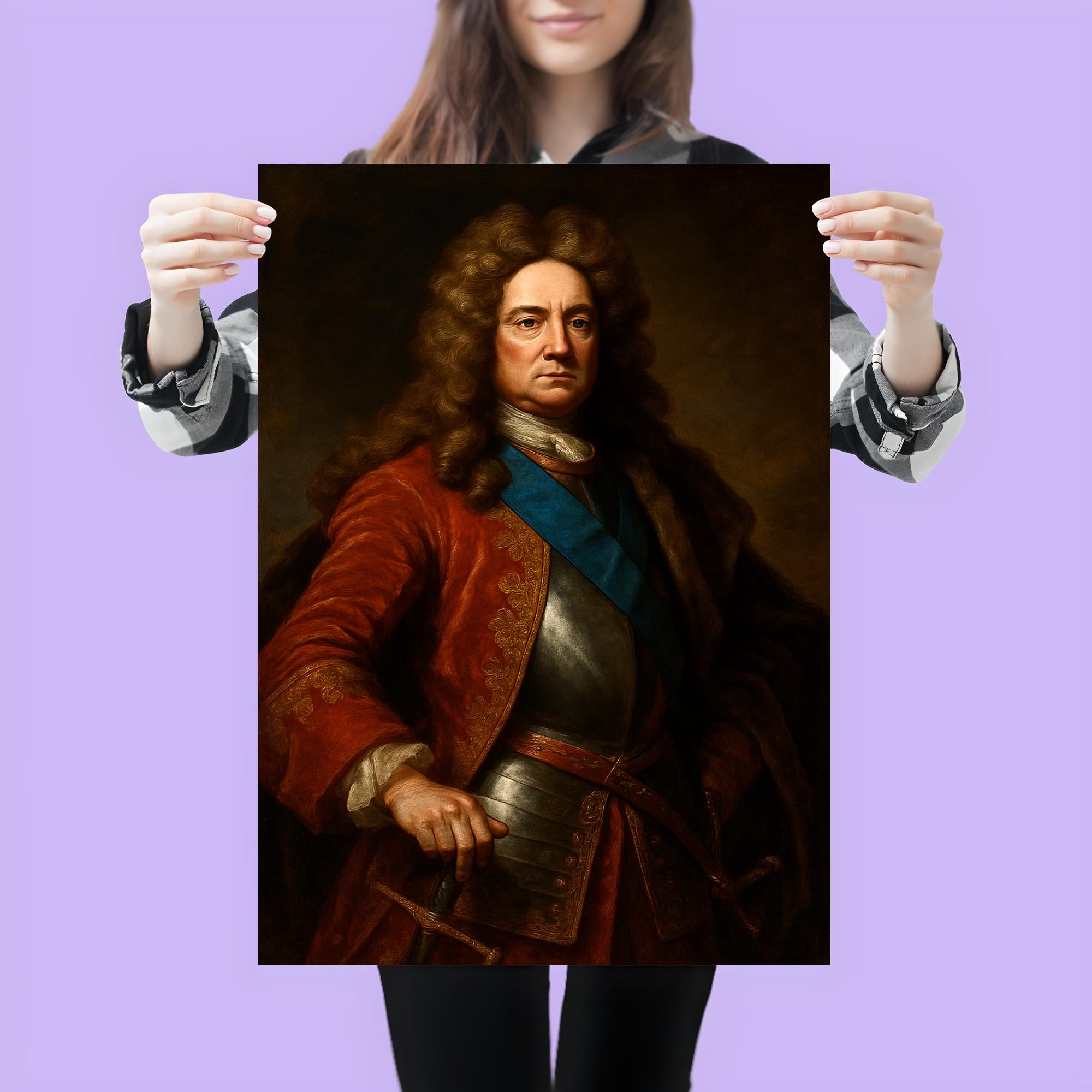 Celebrate the legacy of John Churchill, Duke of Marlborough, with this striking poster that honors one of history’s greatest military strategists. Perfect for history enthusiasts or those inspired by leadership and resilience, this poster adds a touch of timeless prestige to any space. Elevate your walls with a tribute to a true icon of courage and strategy.